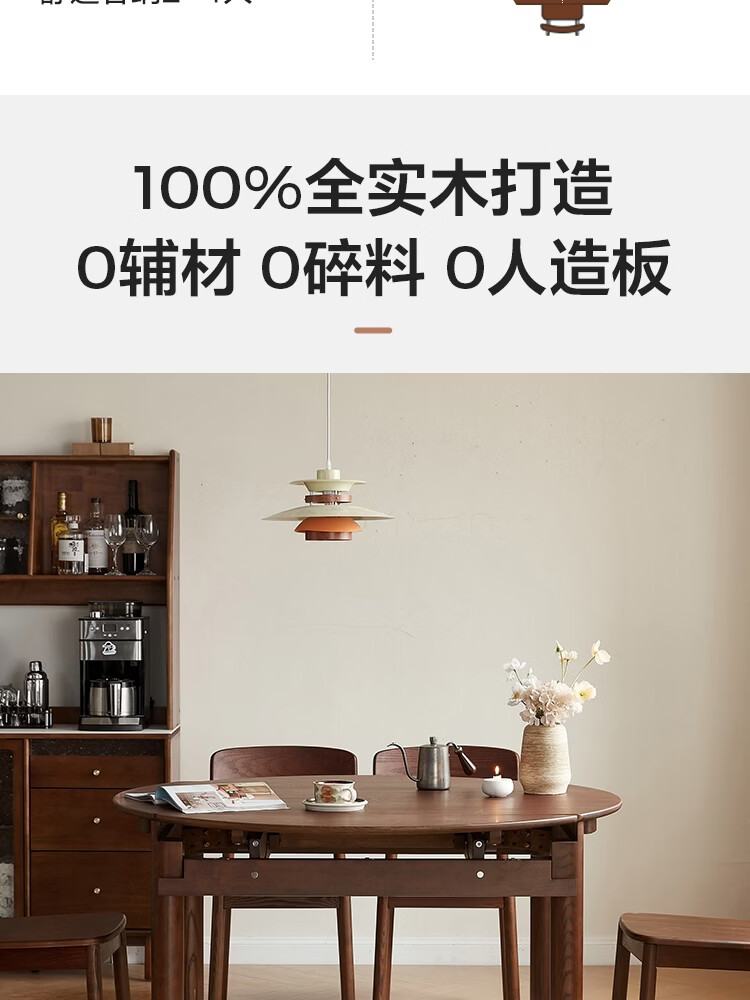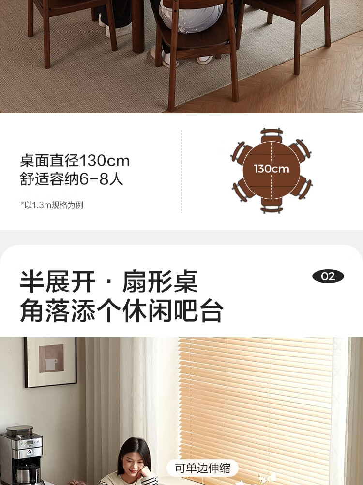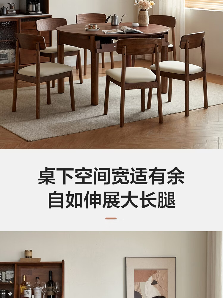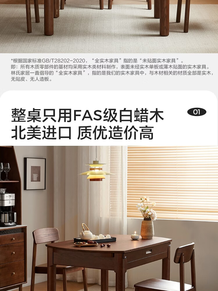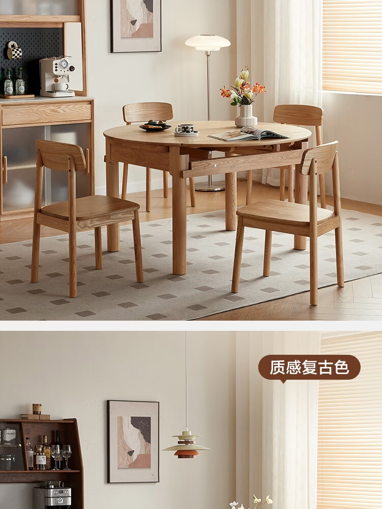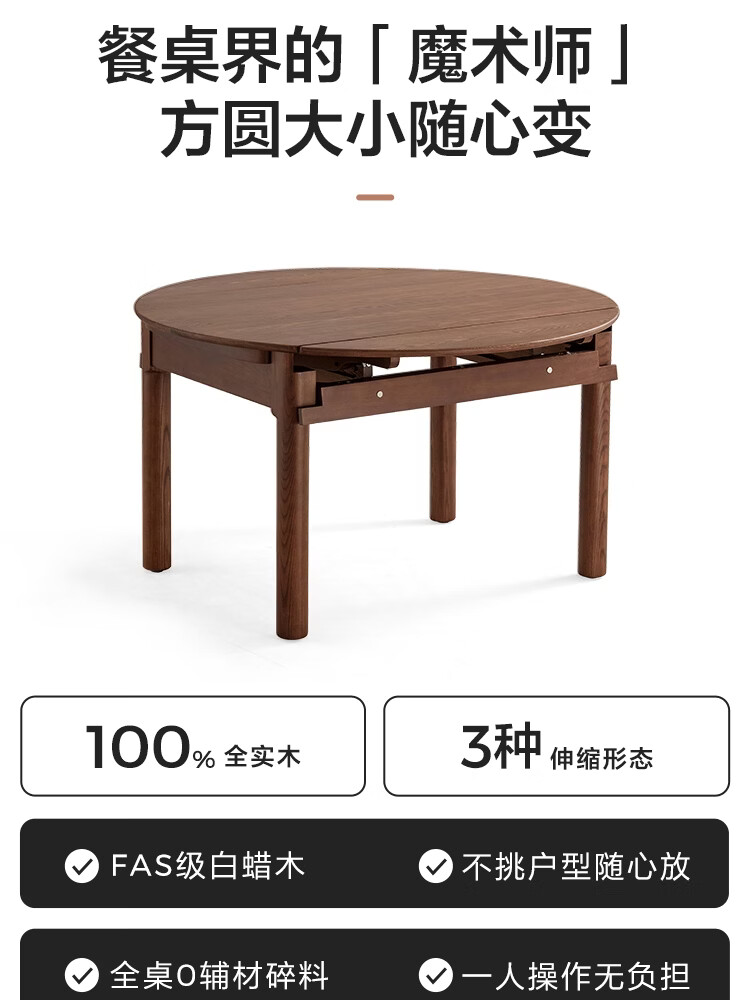 林氏家居全实木餐桌可伸缩圆桌白蜡木饭桌家用2025新款小户型木业LH254R6 【1.3m|小麦色】白蜡木伸缩餐桌