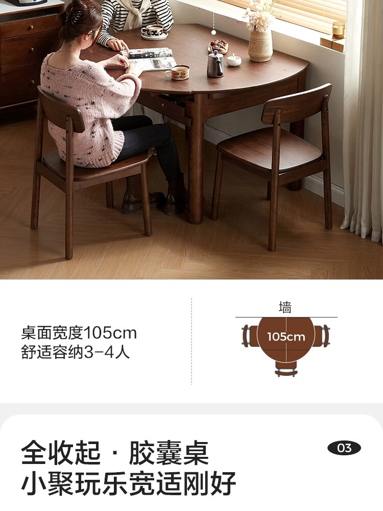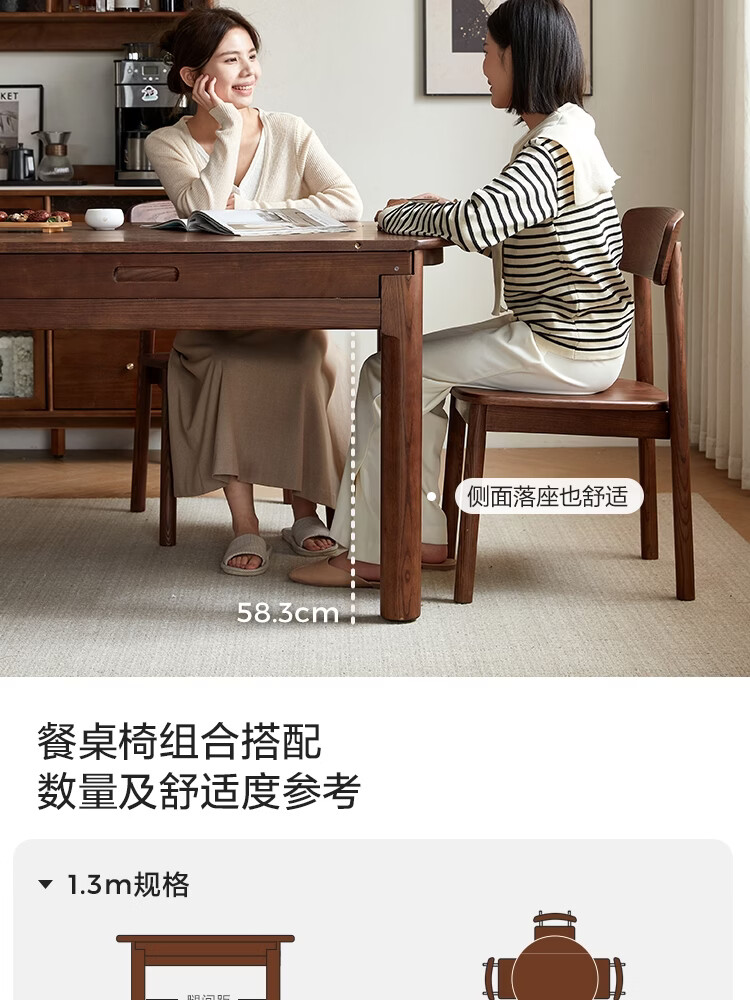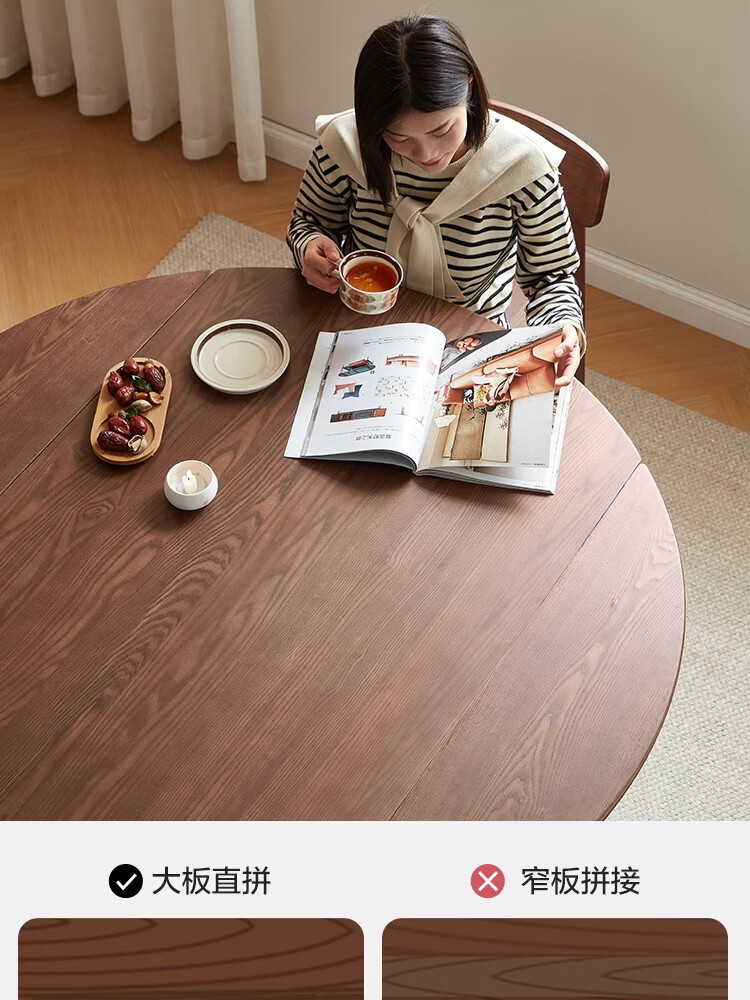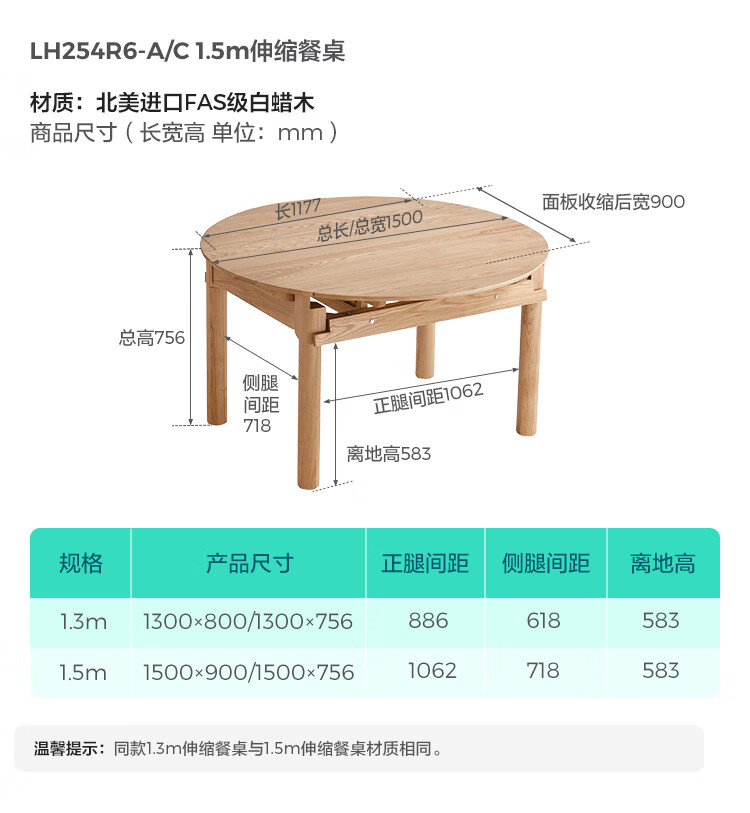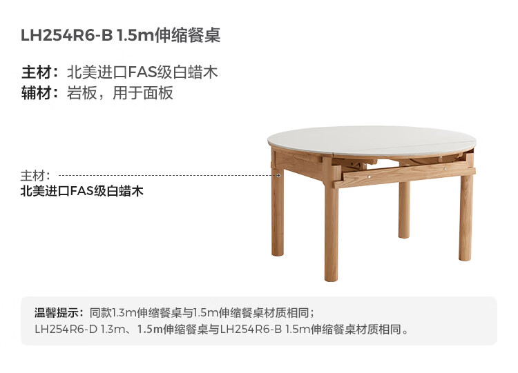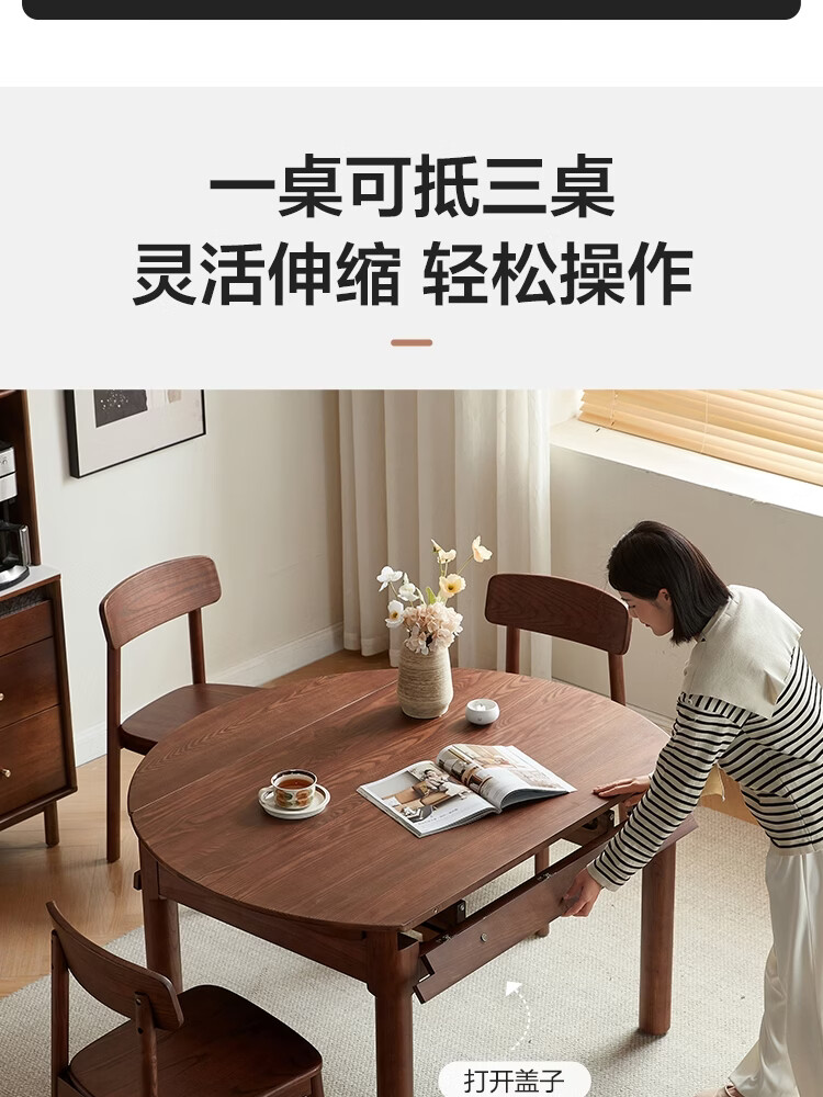 林氏家居全实木餐桌可伸缩圆桌白蜡木饭桌家用2025新款小户型木业LH254R6 【1.3m|小麦色】白蜡木伸缩餐桌