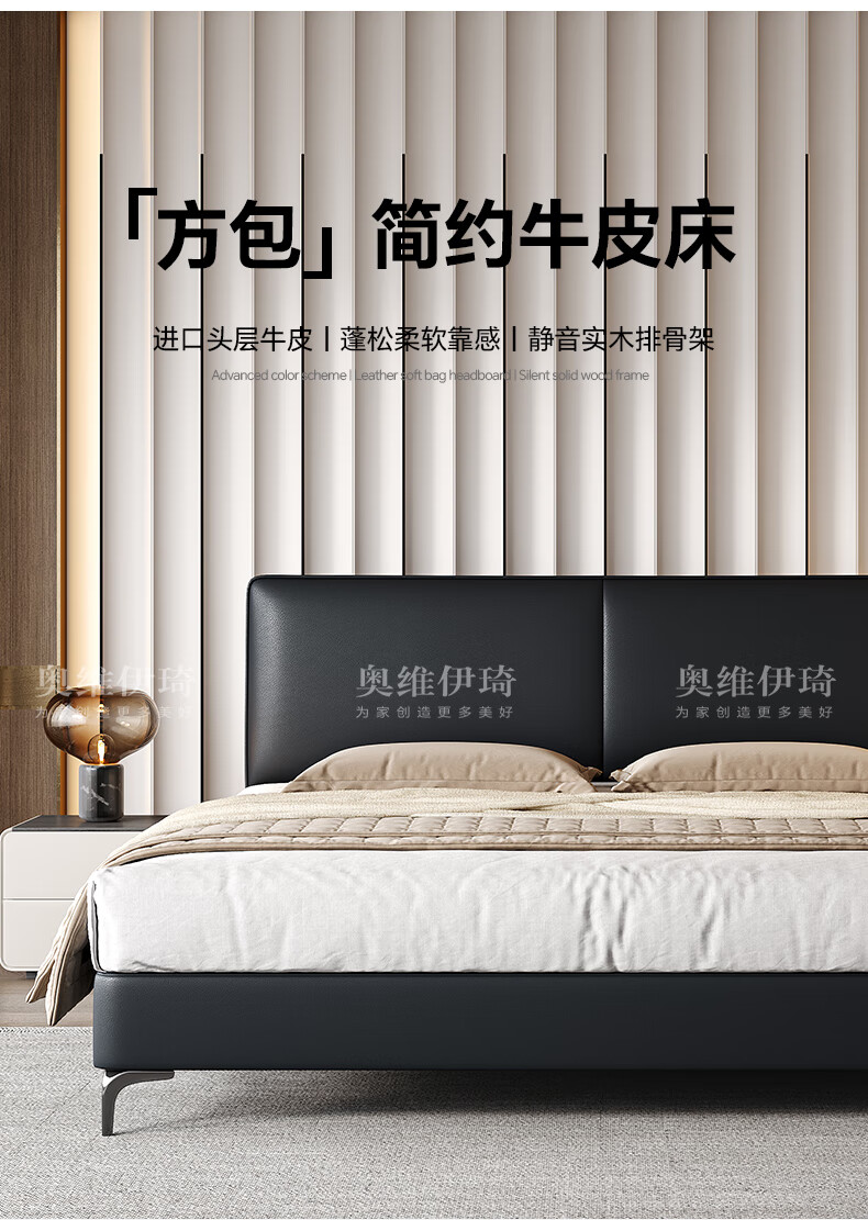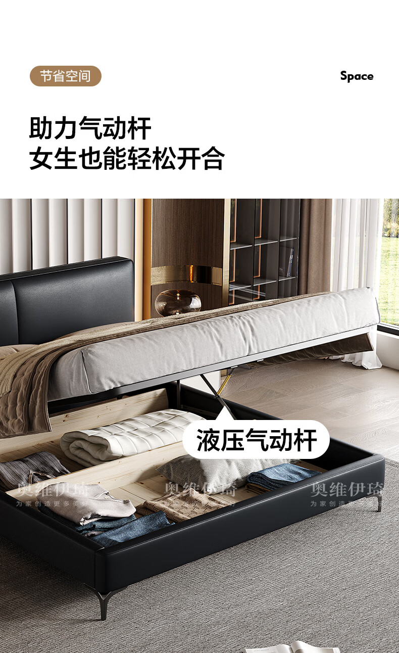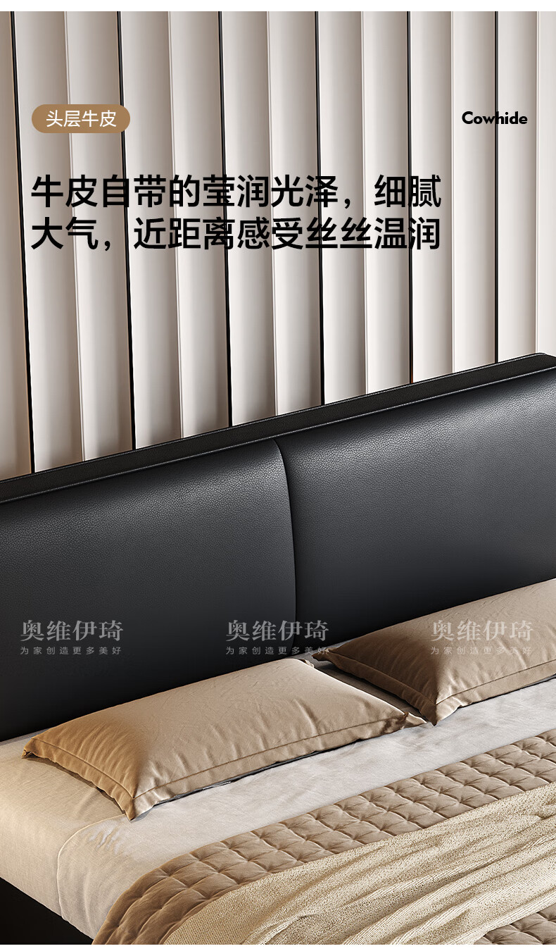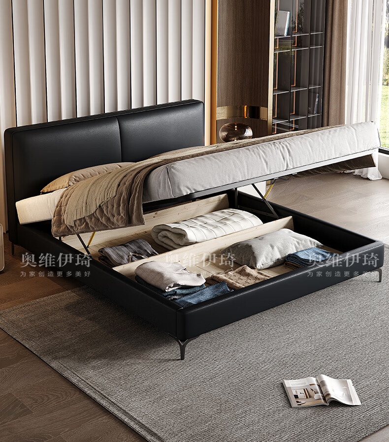 奥维伊琦2025年新款全实木储物皮艺床真皮床主卧大床双人床婚床1.8米x2米 (豪华版)头层牛皮单床 1.5米*2.0米【框架款】