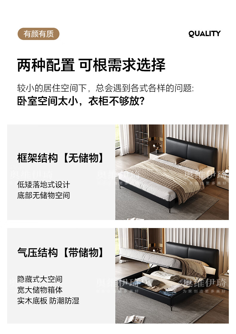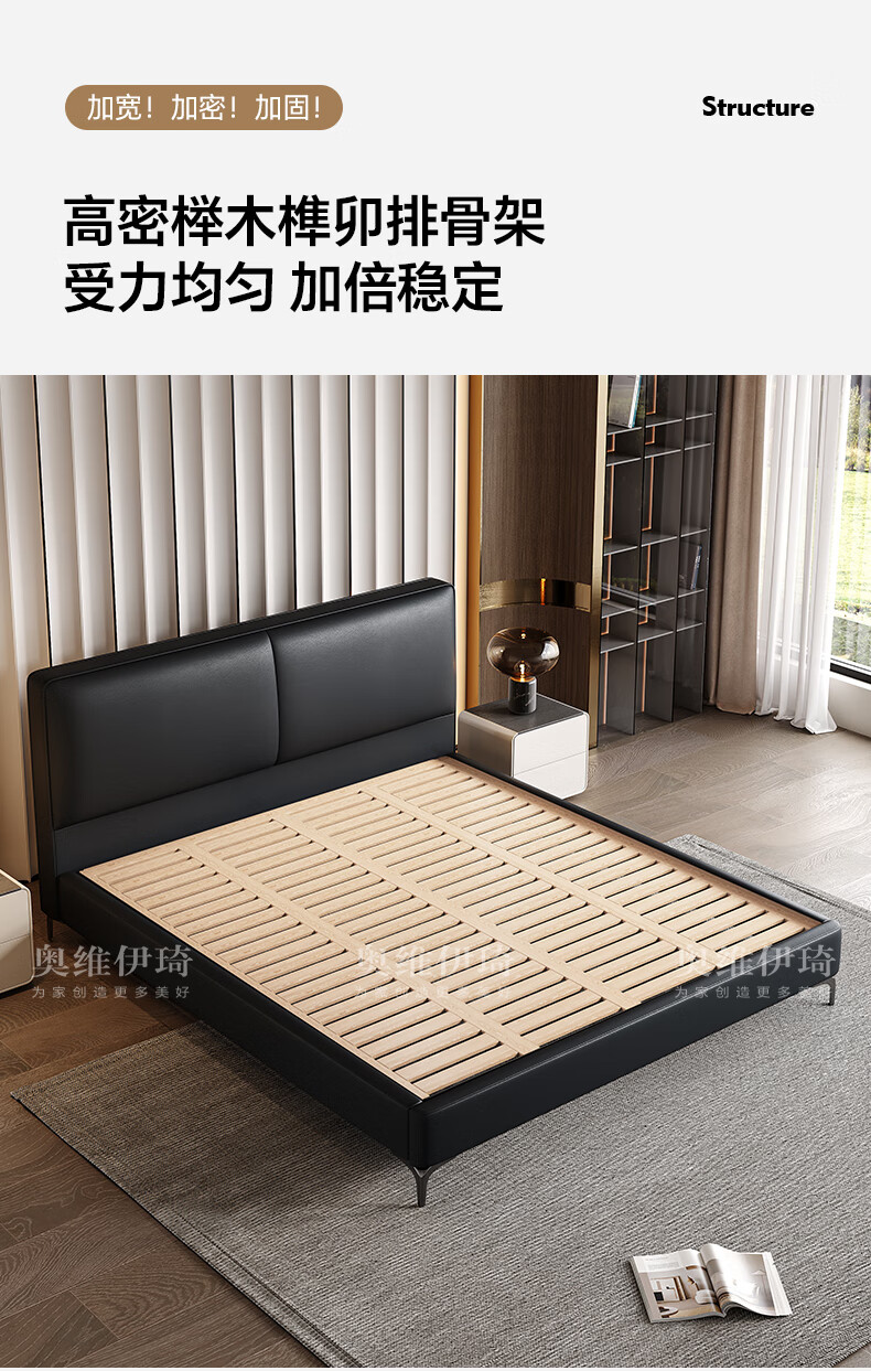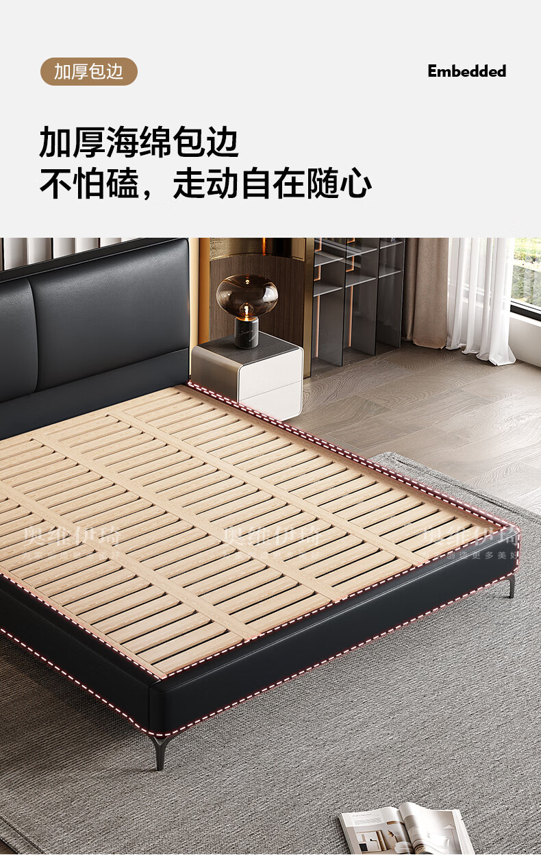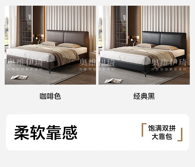 奥维伊琦2025年新款全实木储物皮艺床真皮床主卧大床双人床婚床1.8米x2米 (豪华版)头层牛皮单床 1.5米*2.0米【框架款】