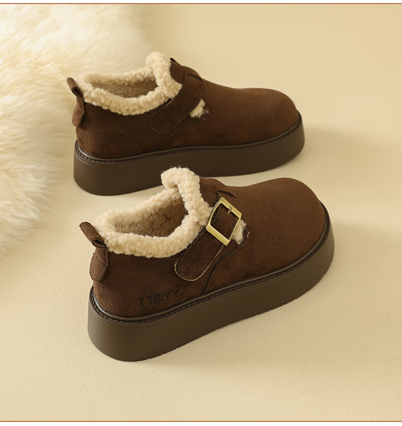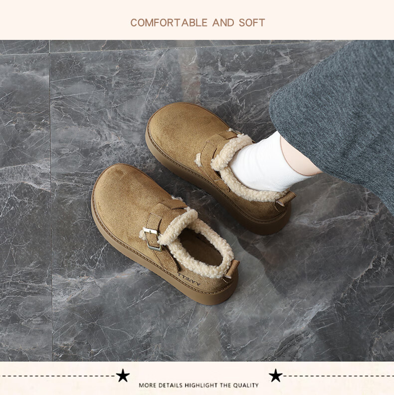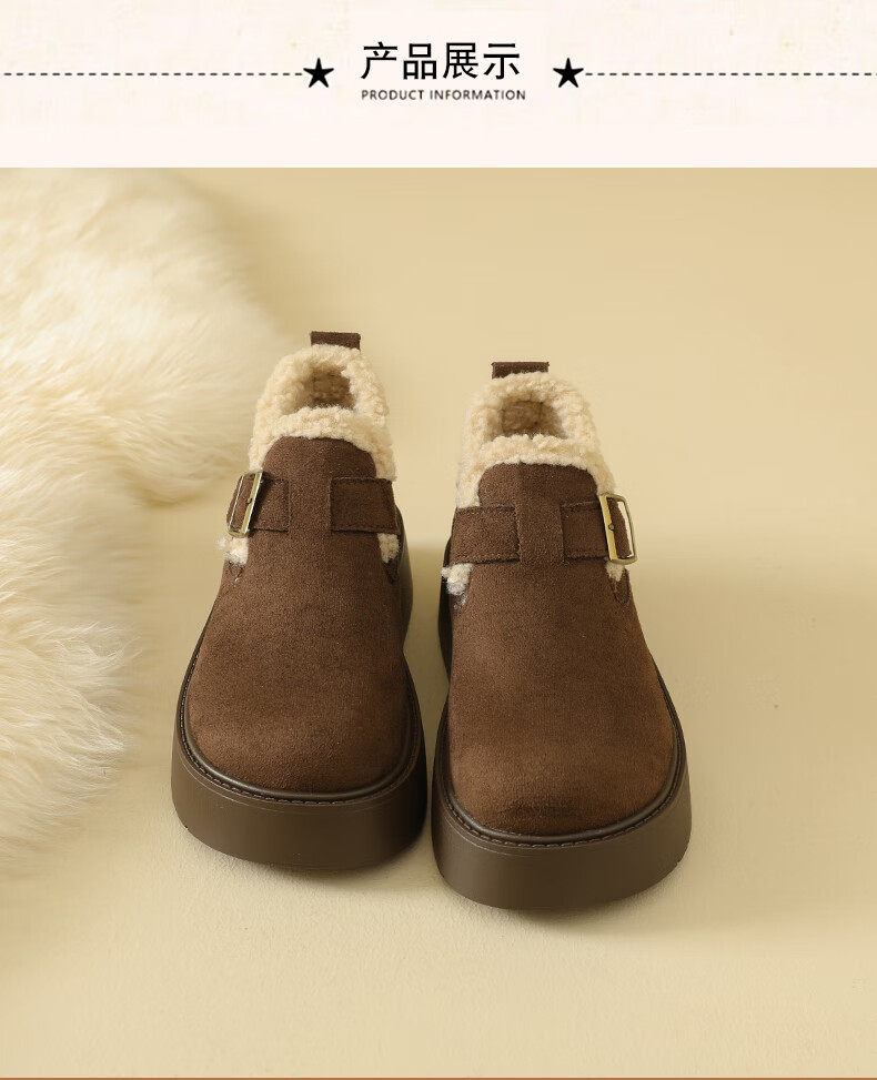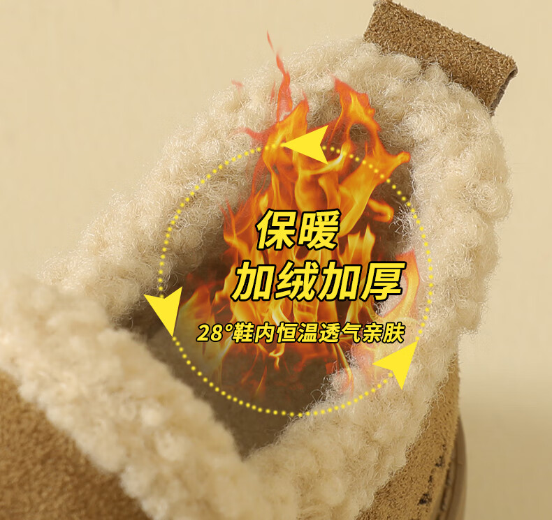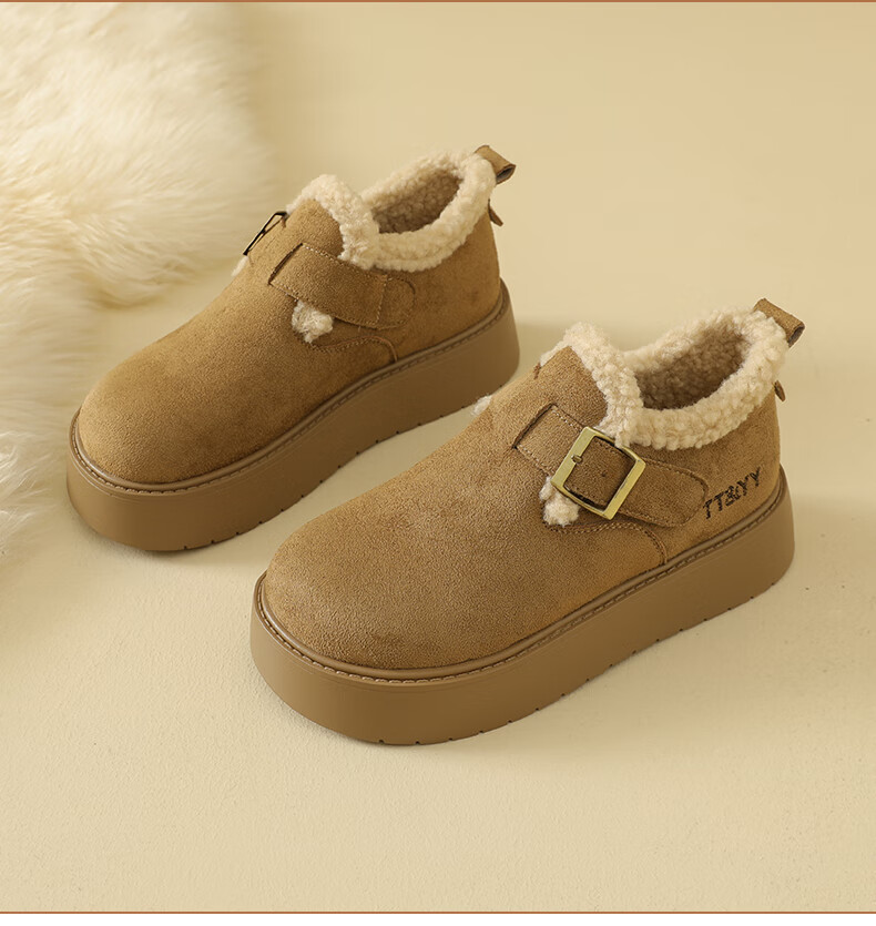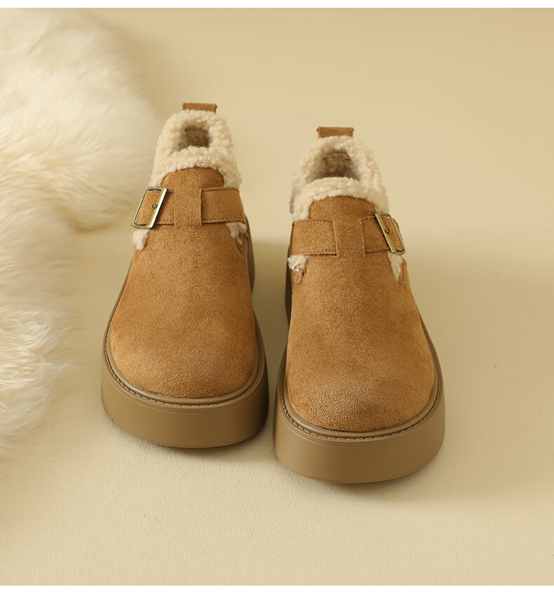 稻草人(MEXICAN)厚底勃肯鞋女款2026新款冬季加绒加厚保暖棉鞋防滑软底孕妇乐福鞋 卡其色+【升级版脚感更舒适】 35