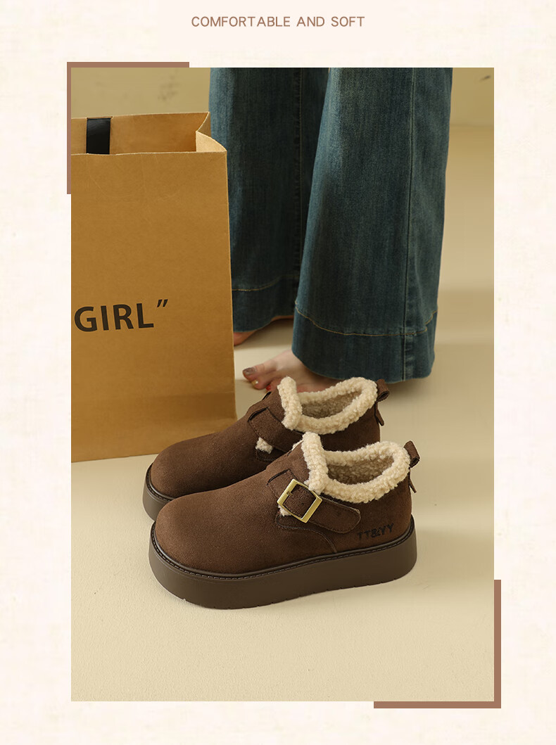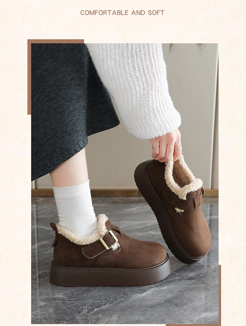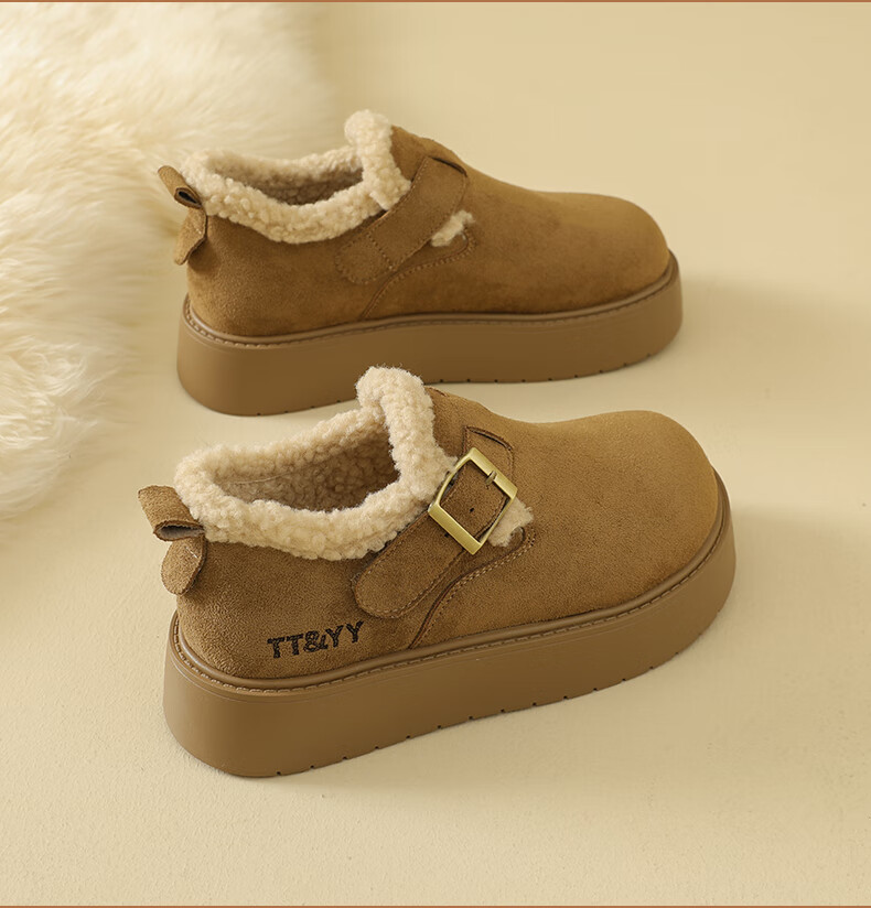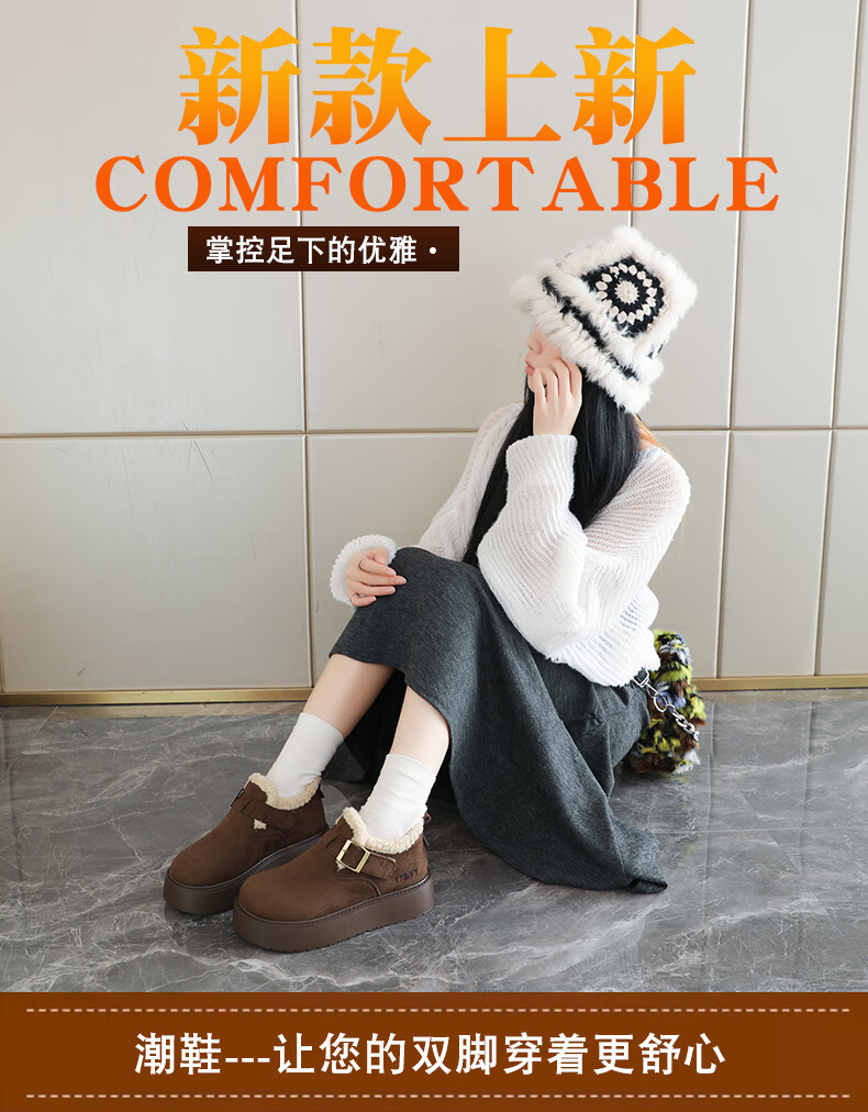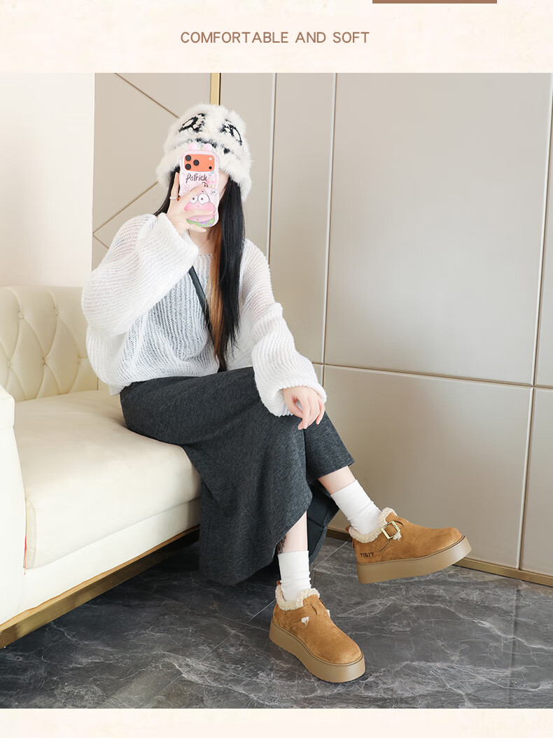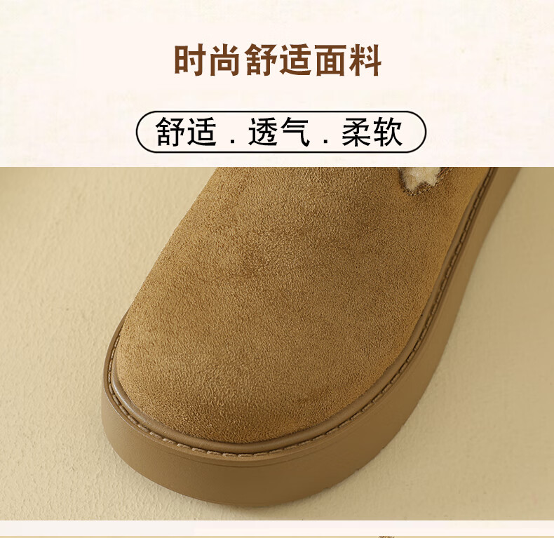 稻草人(MEXICAN)厚底勃肯鞋女款2026新款冬季加绒加厚保暖棉鞋防滑软底孕妇乐福鞋 卡其色+【升级版脚感更舒适】 35