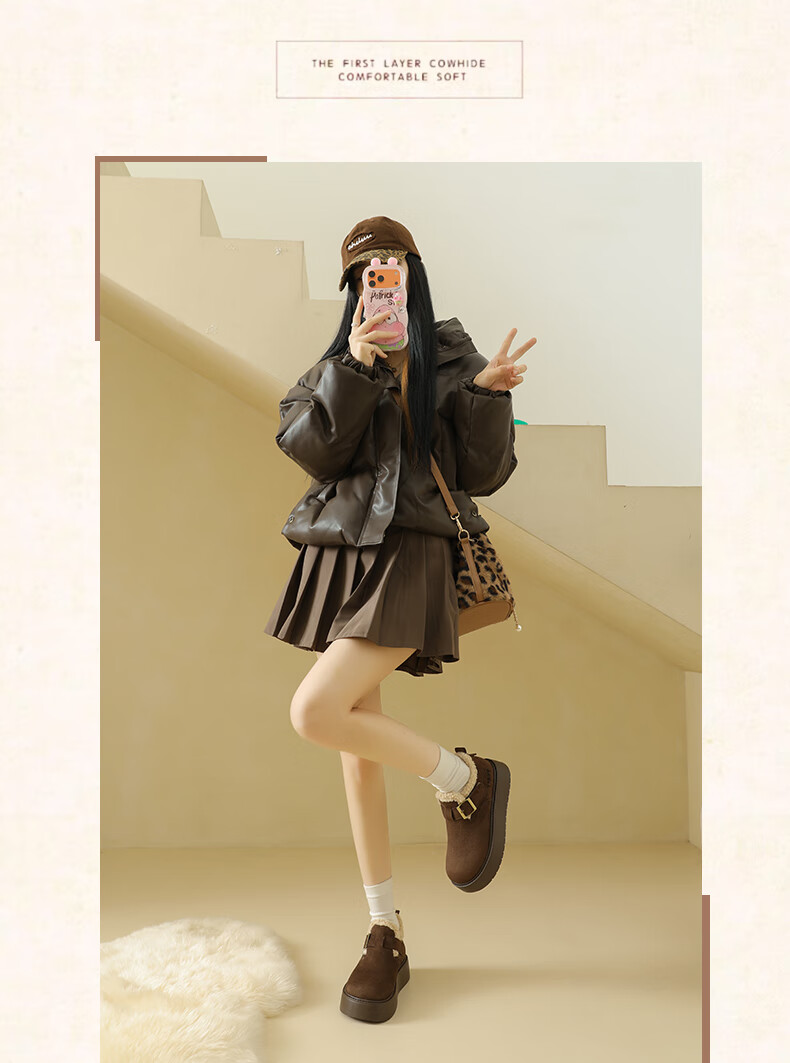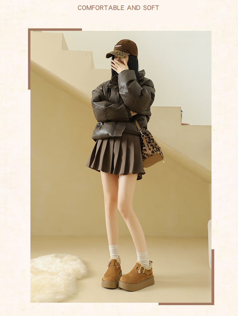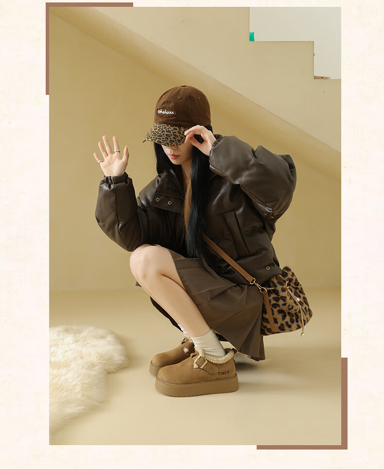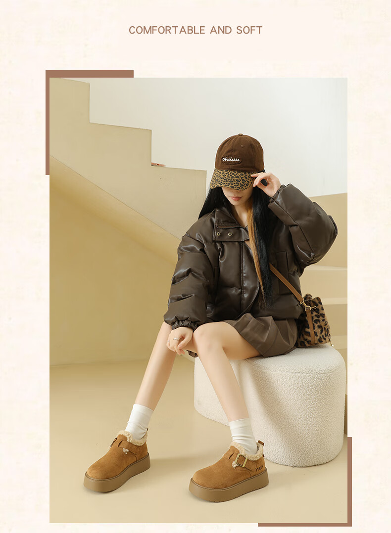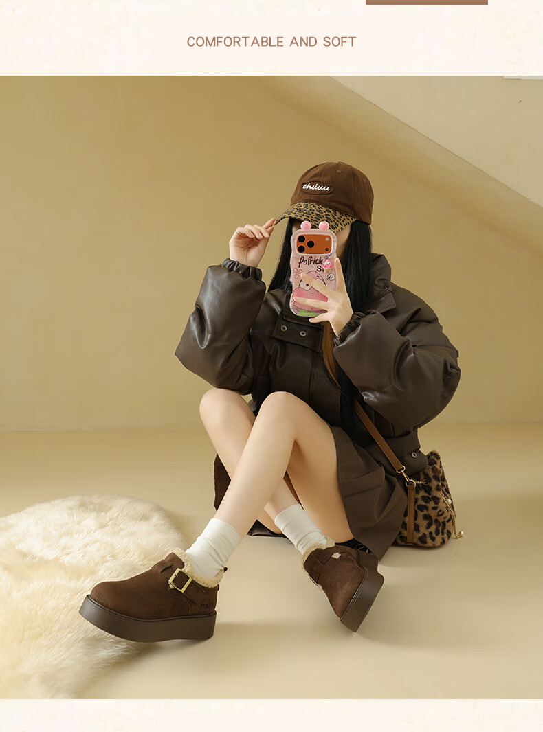 稻草人(MEXICAN)厚底勃肯鞋女款2026新款冬季加绒加厚保暖棉鞋防滑软底孕妇乐福鞋 卡其色+【升级版脚感更舒适】 35