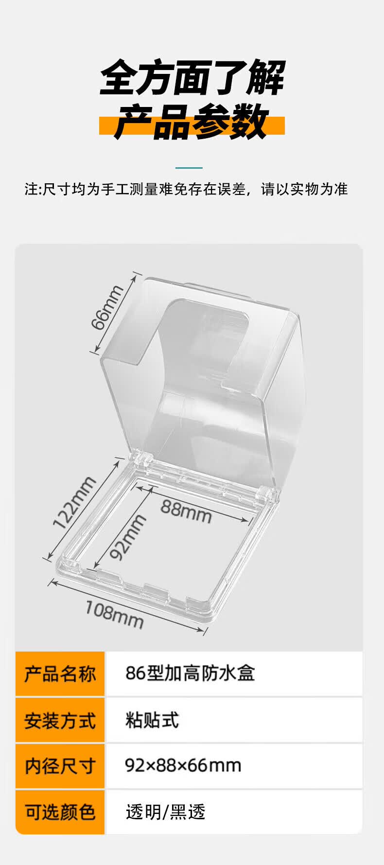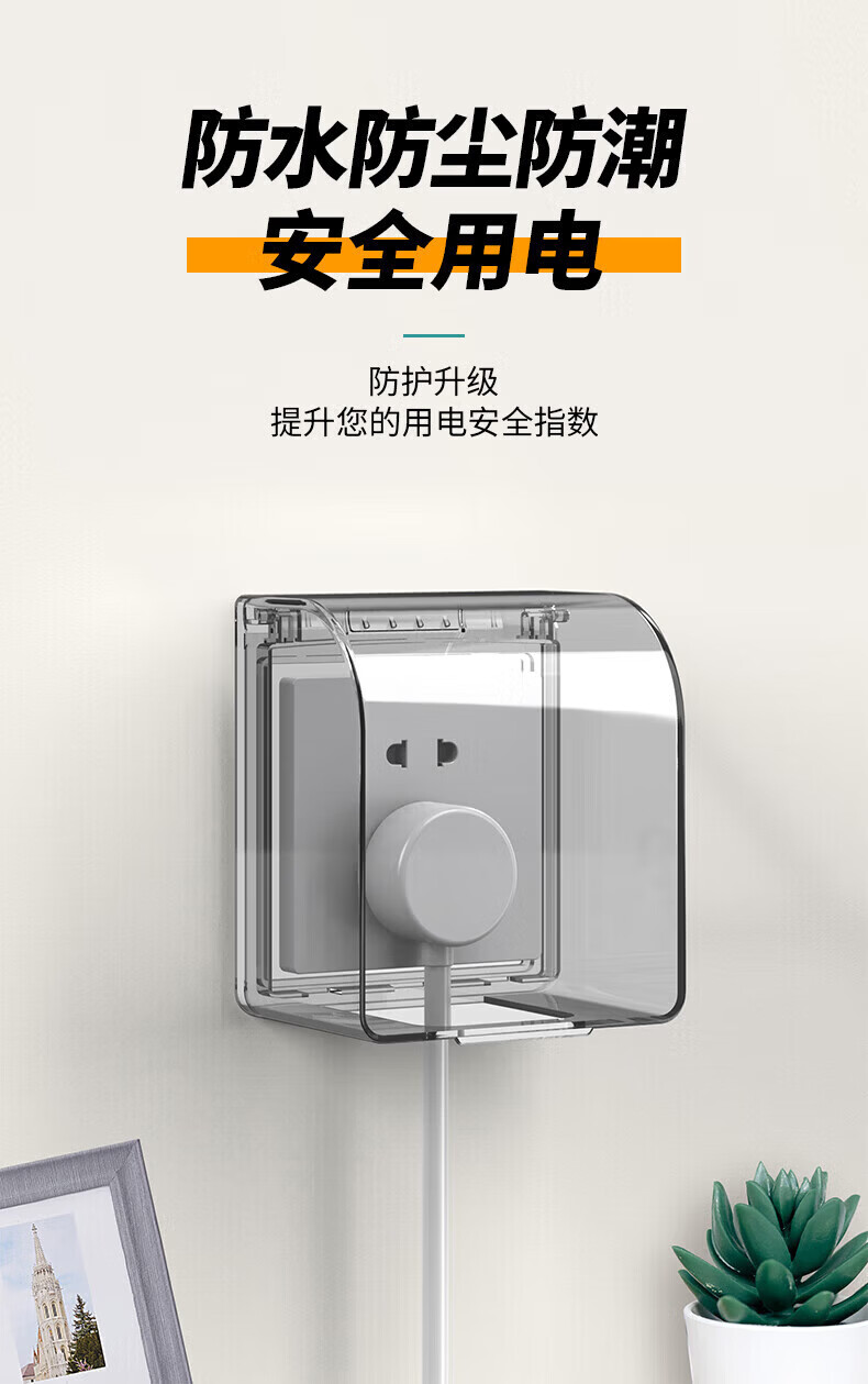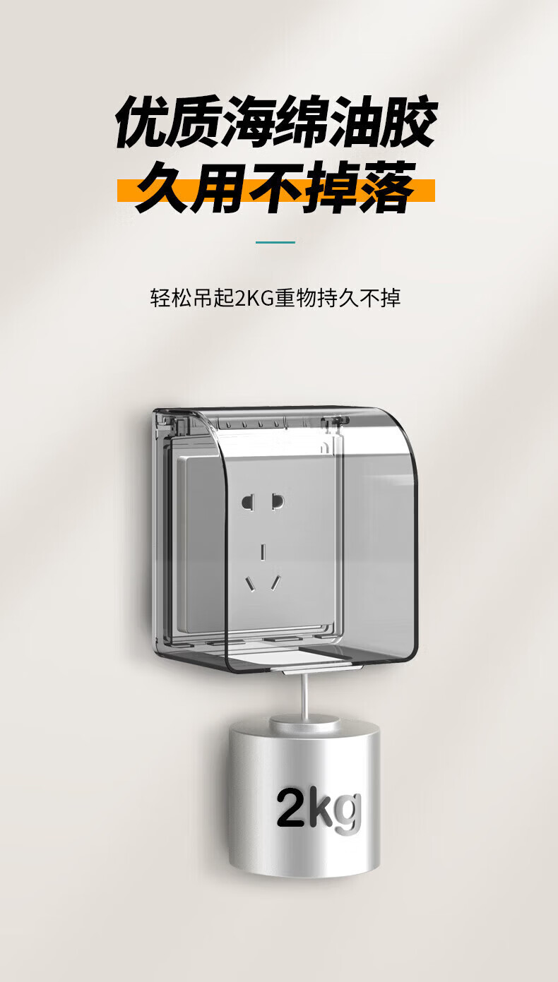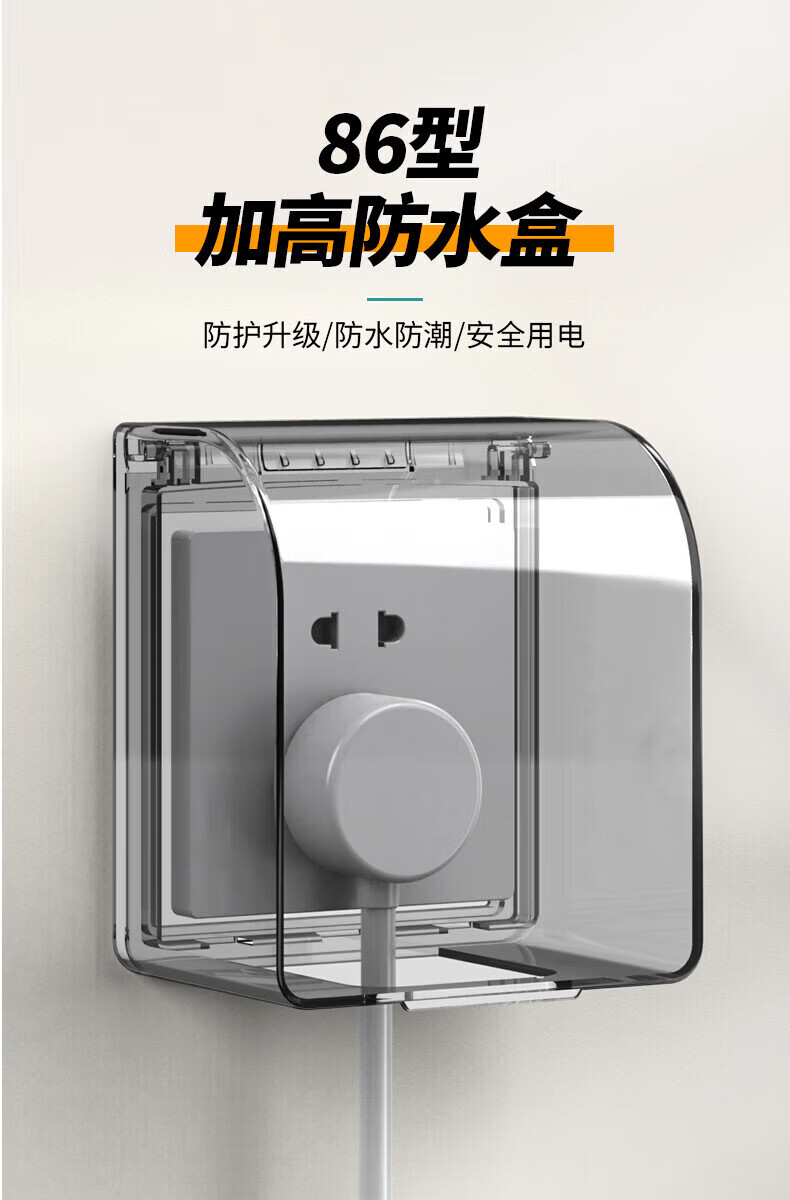 国际电工 86型加高加大粘贴插座防水盒浴室马桶插头防溅盒漏保插头保护盒 加高防水盒【黑透】