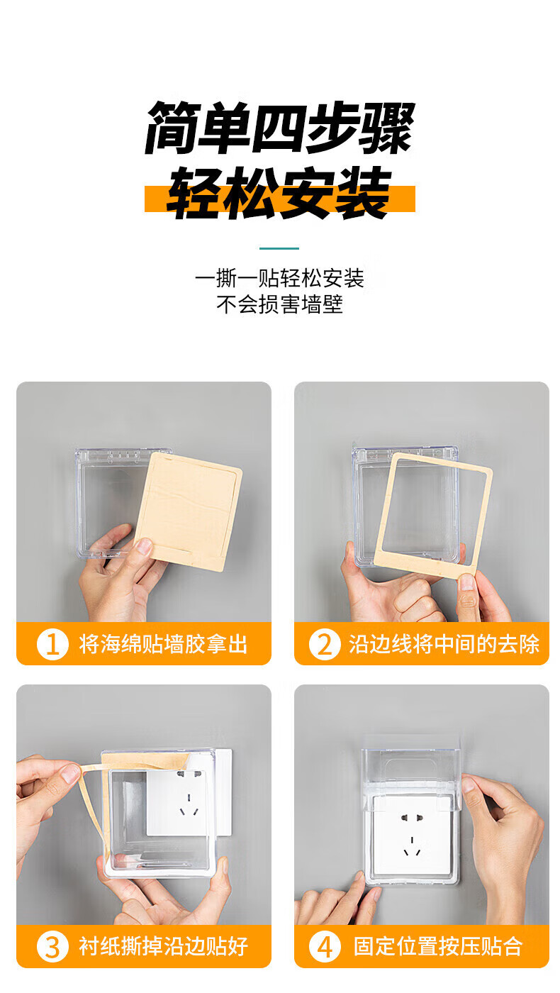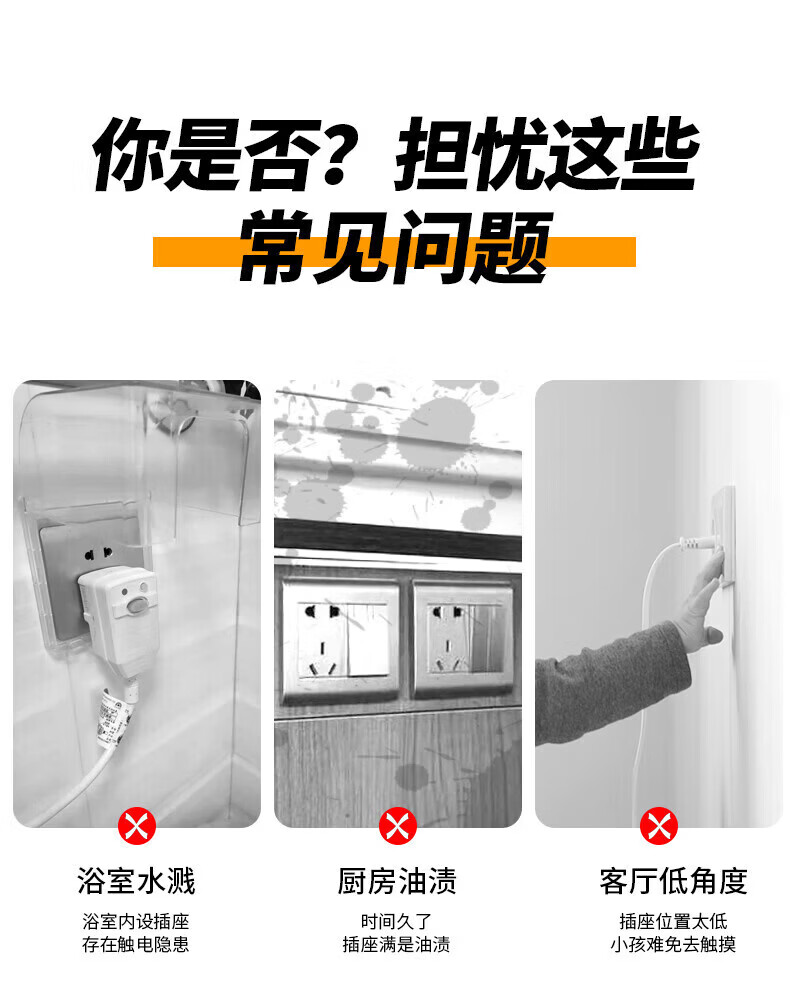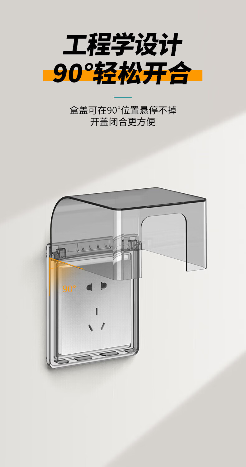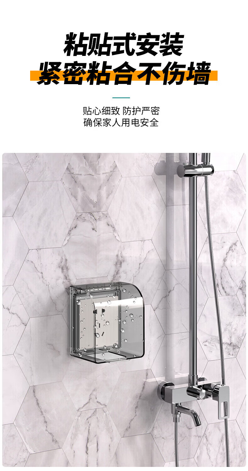 国际电工 86型加高加大粘贴插座防水盒浴室马桶插头防溅盒漏保插头保护盒 加高防水盒【黑透】