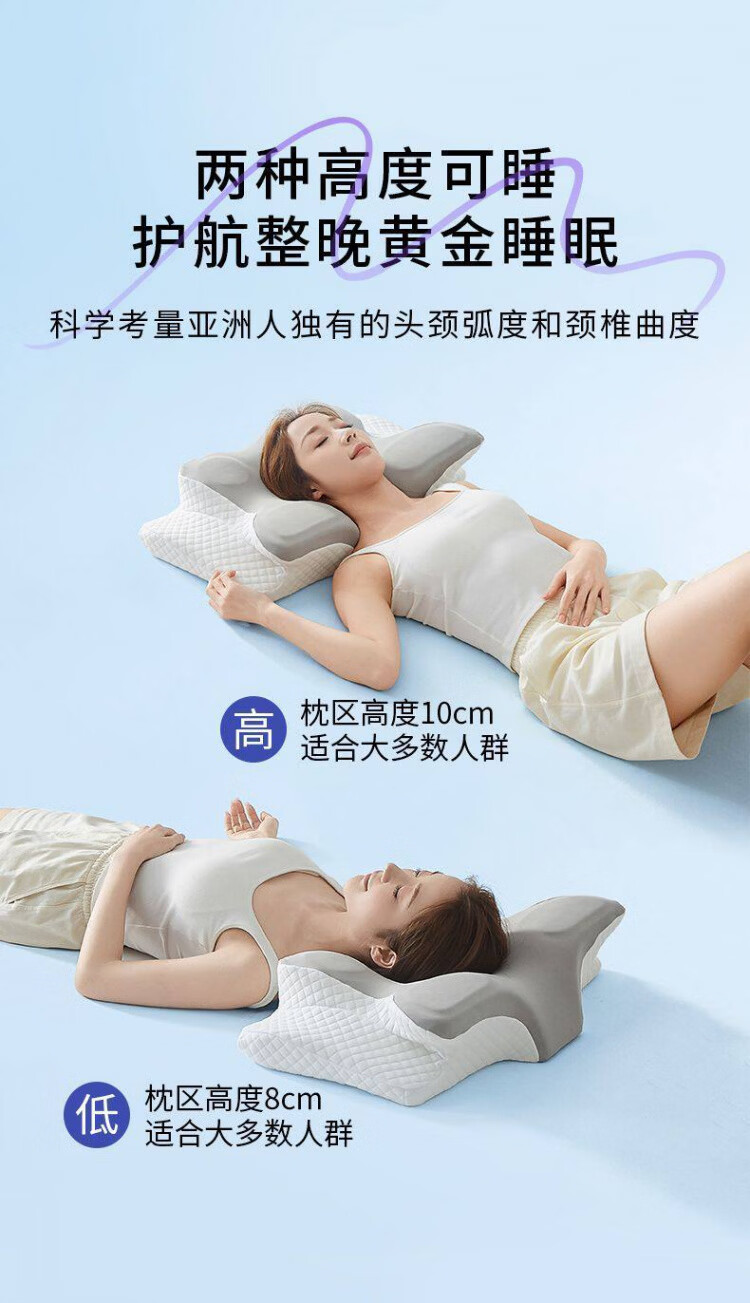 泰嗨(TAIHI) 天然乳胶枕头护颈枕泰国原产进口颈椎枕芯橡胶枕头助睡眠专用 高低按摩枕一对装8/10 乳胶枕头