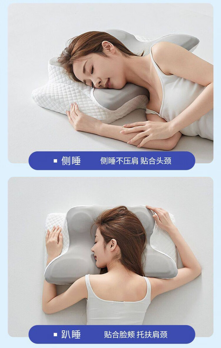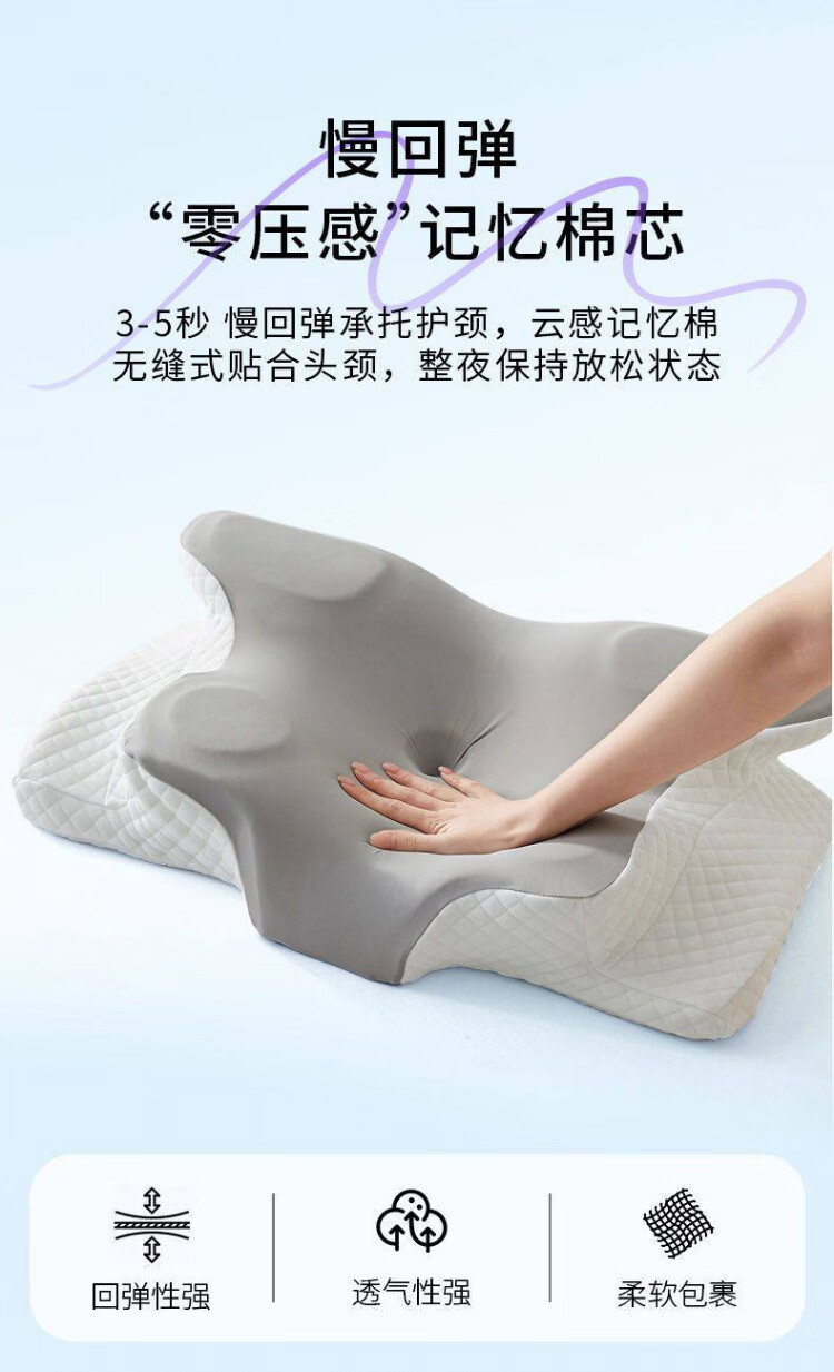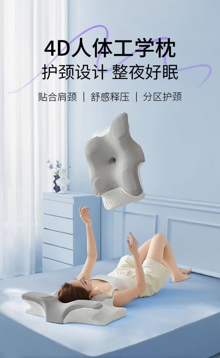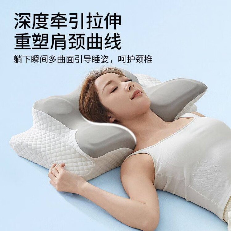 MGXEK德国枕头护颈枕颈椎病深度睡眠专用反弓侧睡助眠专用人体工学男女 灰色【专利4D人体工学护颈枕】 A类 单只 蝶形护颈 12cm 颈椎病专用矫正牵引枕