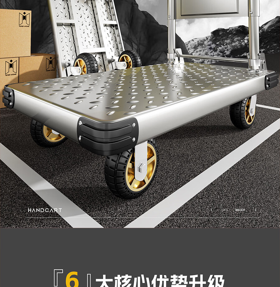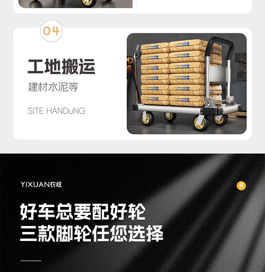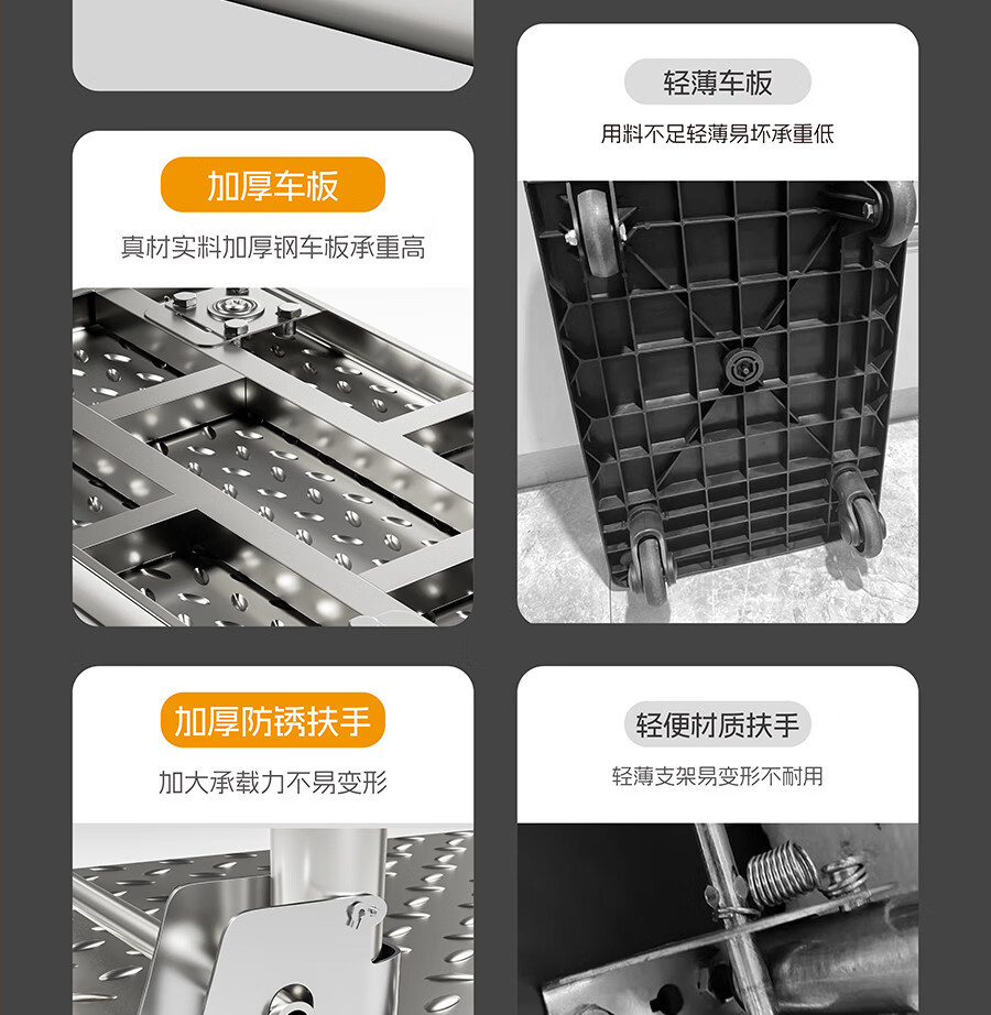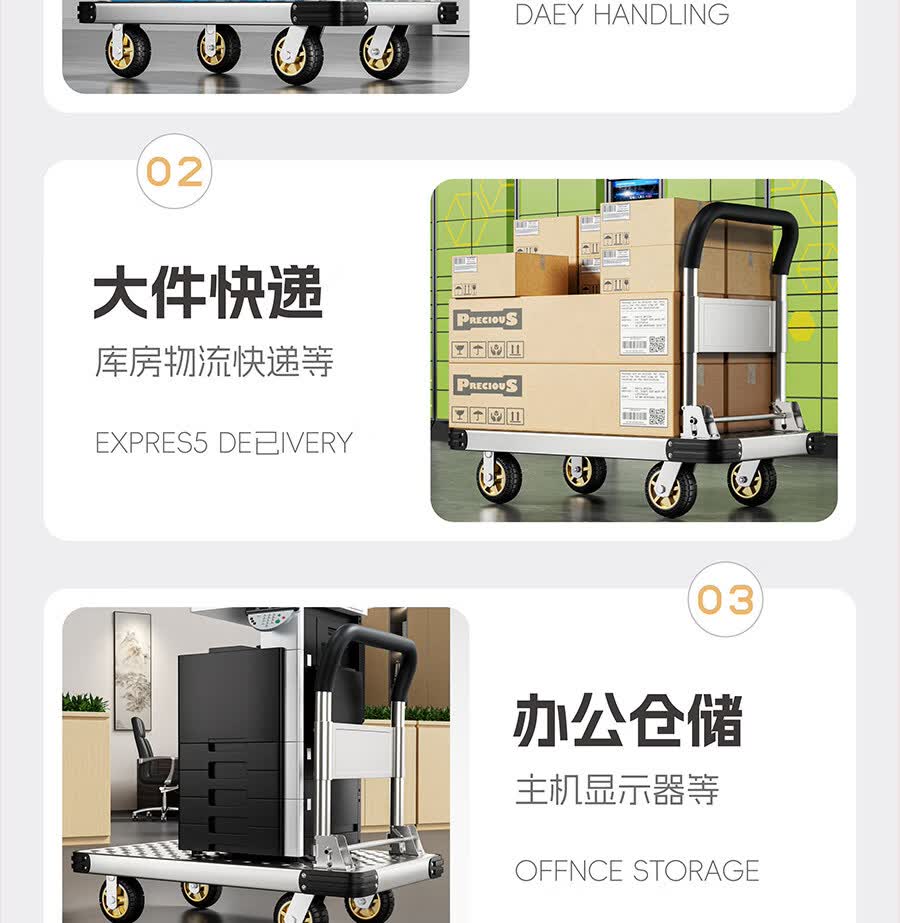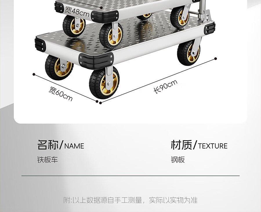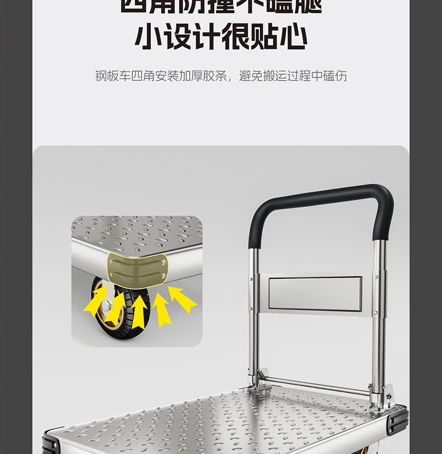 亚伦大力士小推车拉货钢板平板手推车搬运车家用拖车折叠手拉车快递小拉车 特厚钢板【110*65】6寸超静音烽火轮+承重2600斤 【耐磨轻音+底部承重加固】