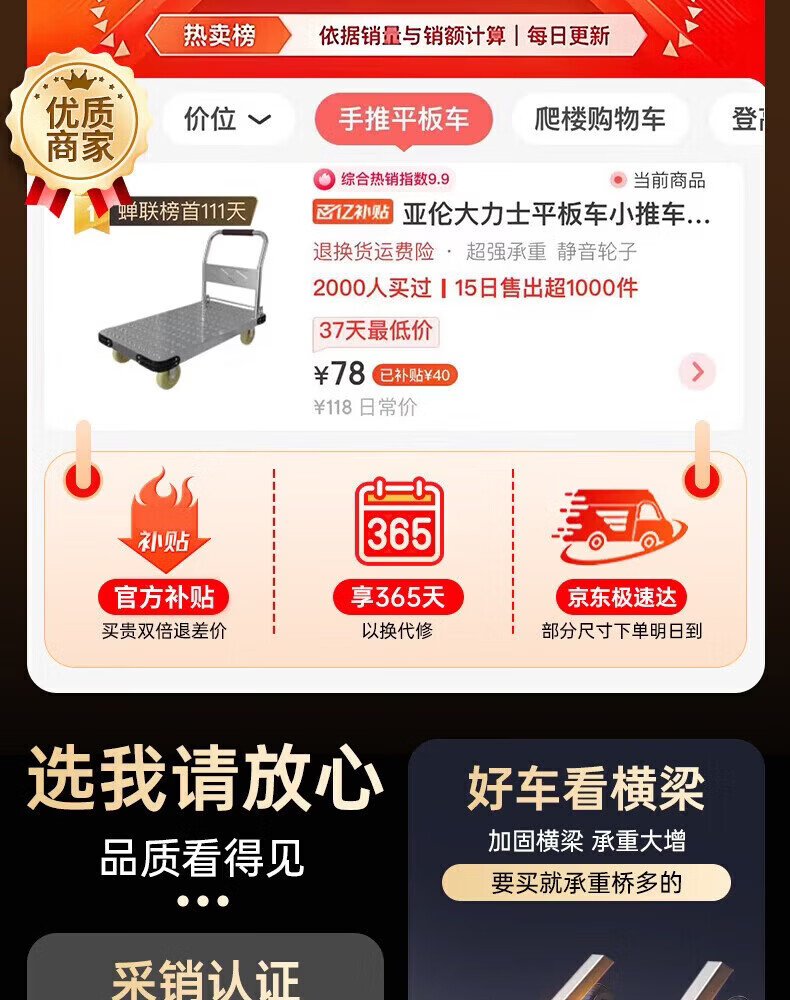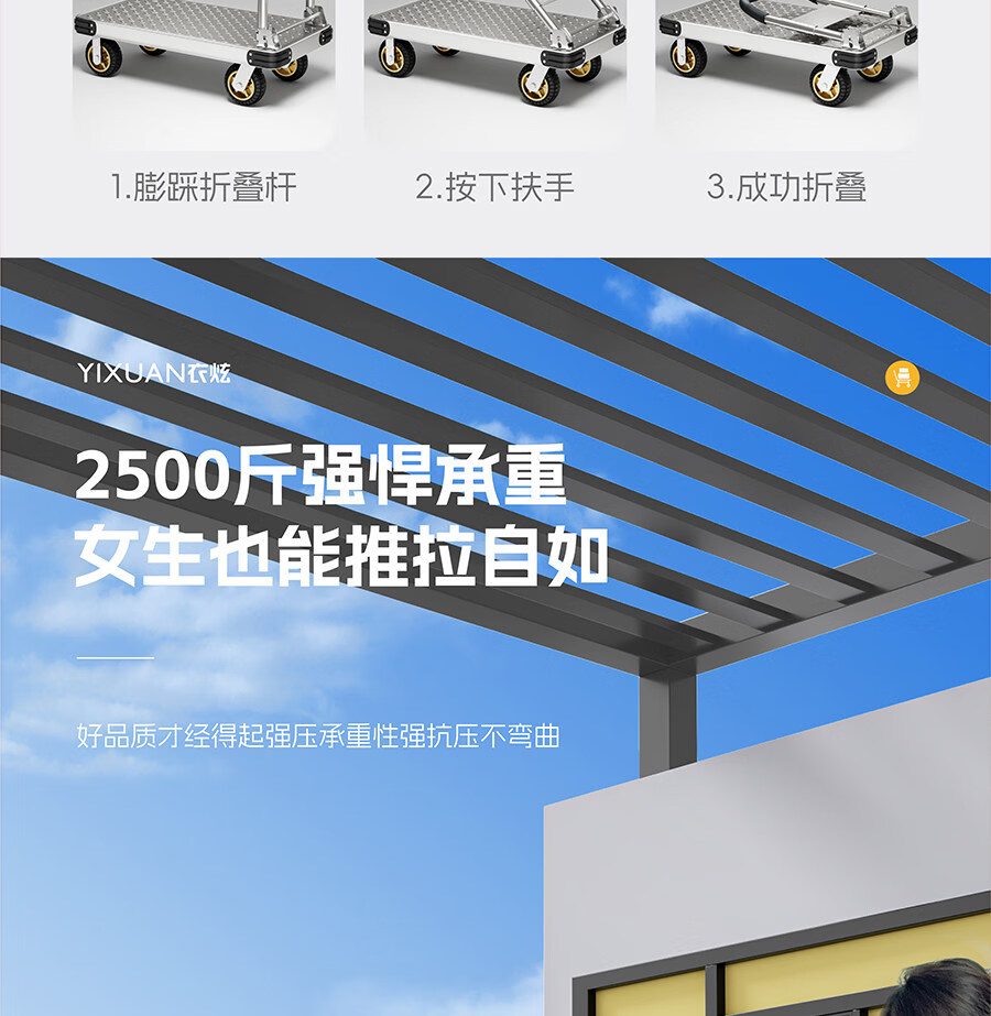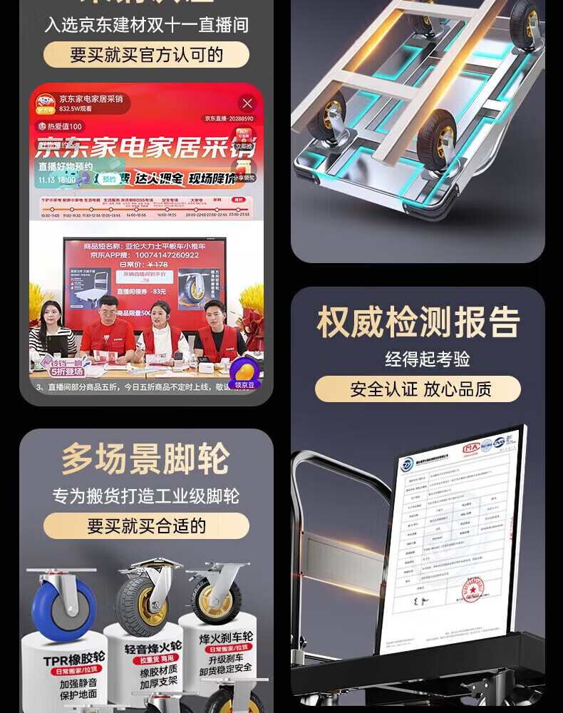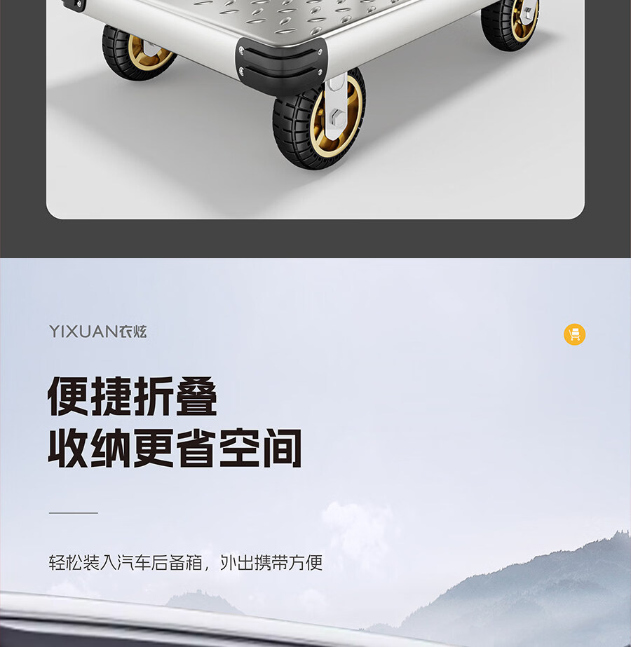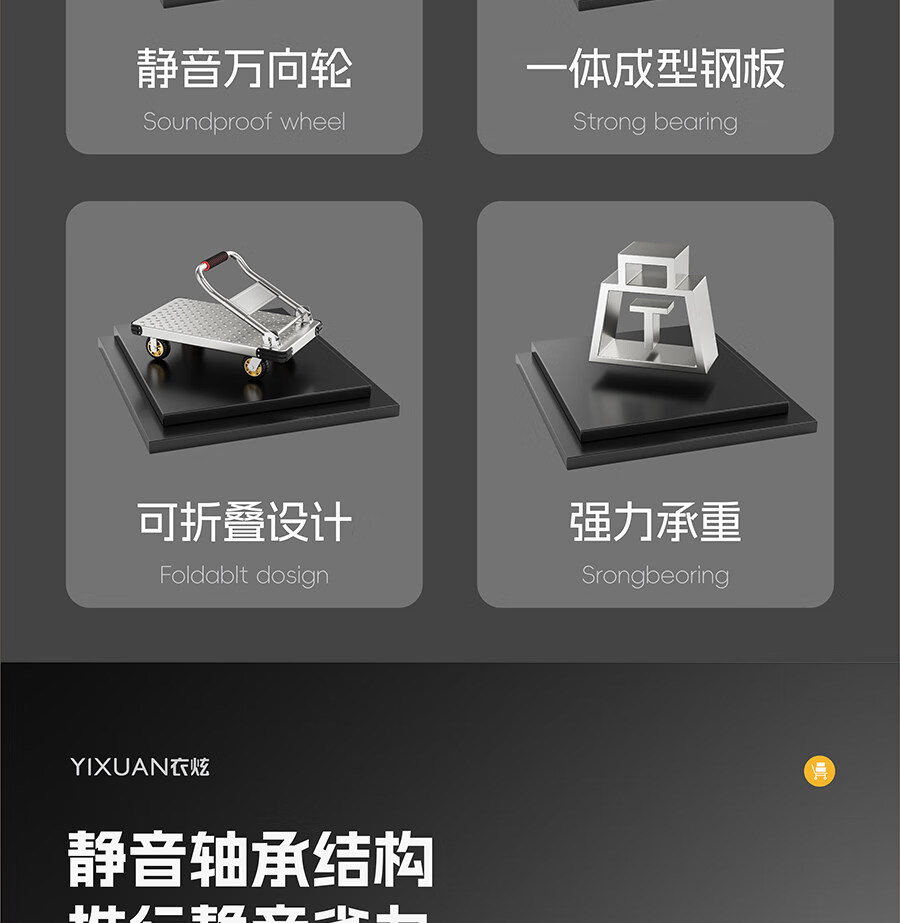 亚伦大力士小推车拉货钢板平板手推车搬运车家用拖车折叠手拉车快递小拉车 特厚钢板【110*65】6寸超静音烽火轮+承重2600斤 【耐磨轻音+底部承重加固】