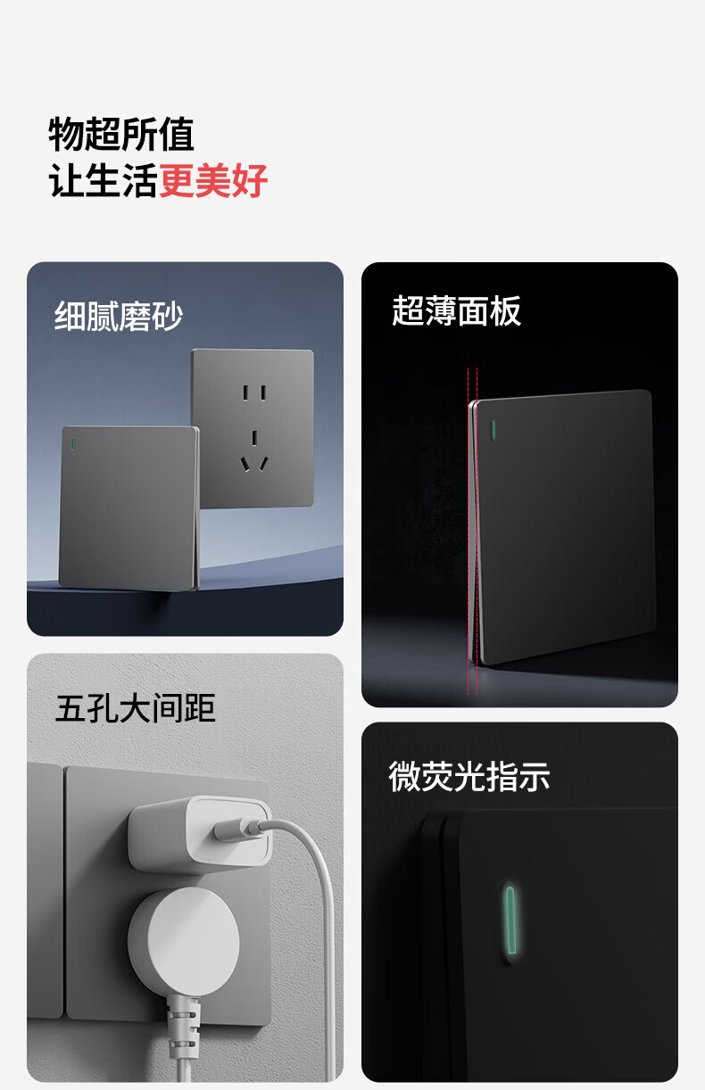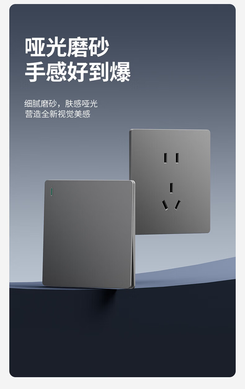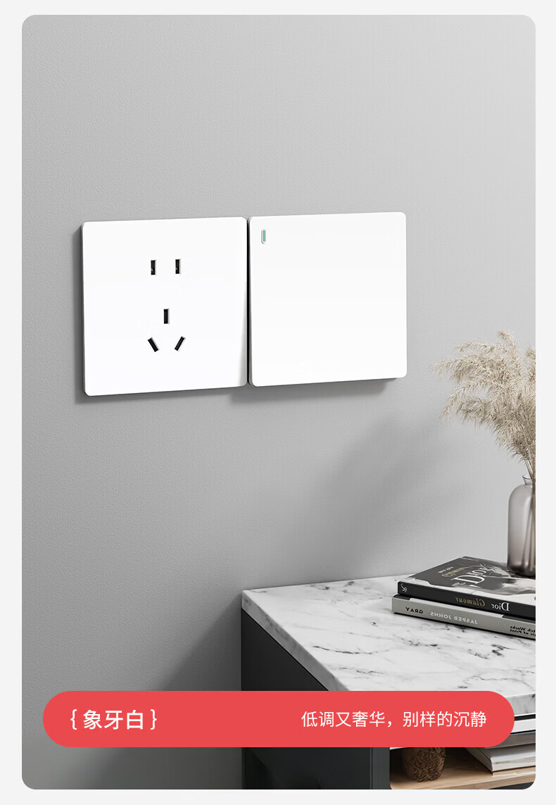 国际电工超薄哑光开关插座奶油白全屋墙壁电源插座面板一开五孔双控磨砂 空白面板