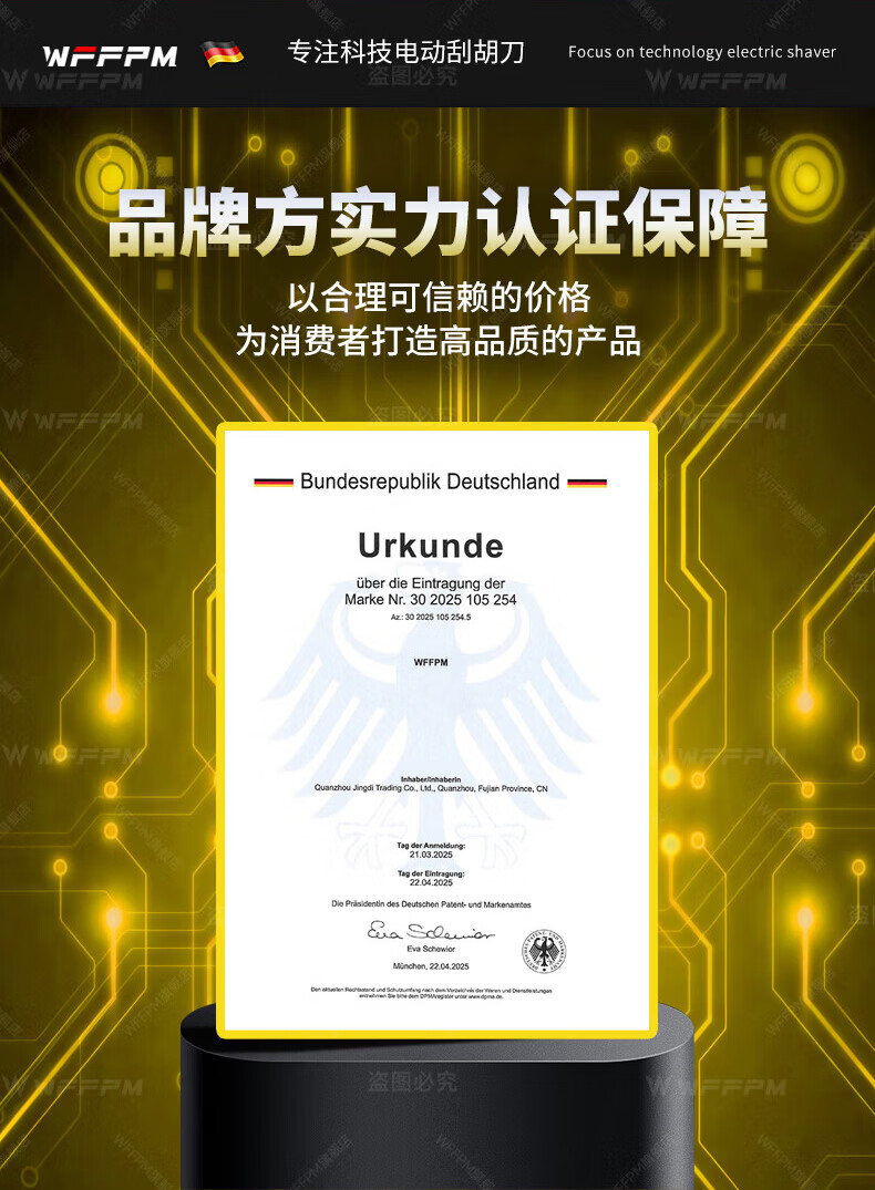 WFFPM德国品牌三刀头往复式电动剃须刀2026新款男士刮胡刀全身水洗胡须刀送老公男朋友纪念日生日礼物 绅士黑 【精美礼盒装】 剃须刀品牌第一 高端情人节父亲节礼物男士生日礼物