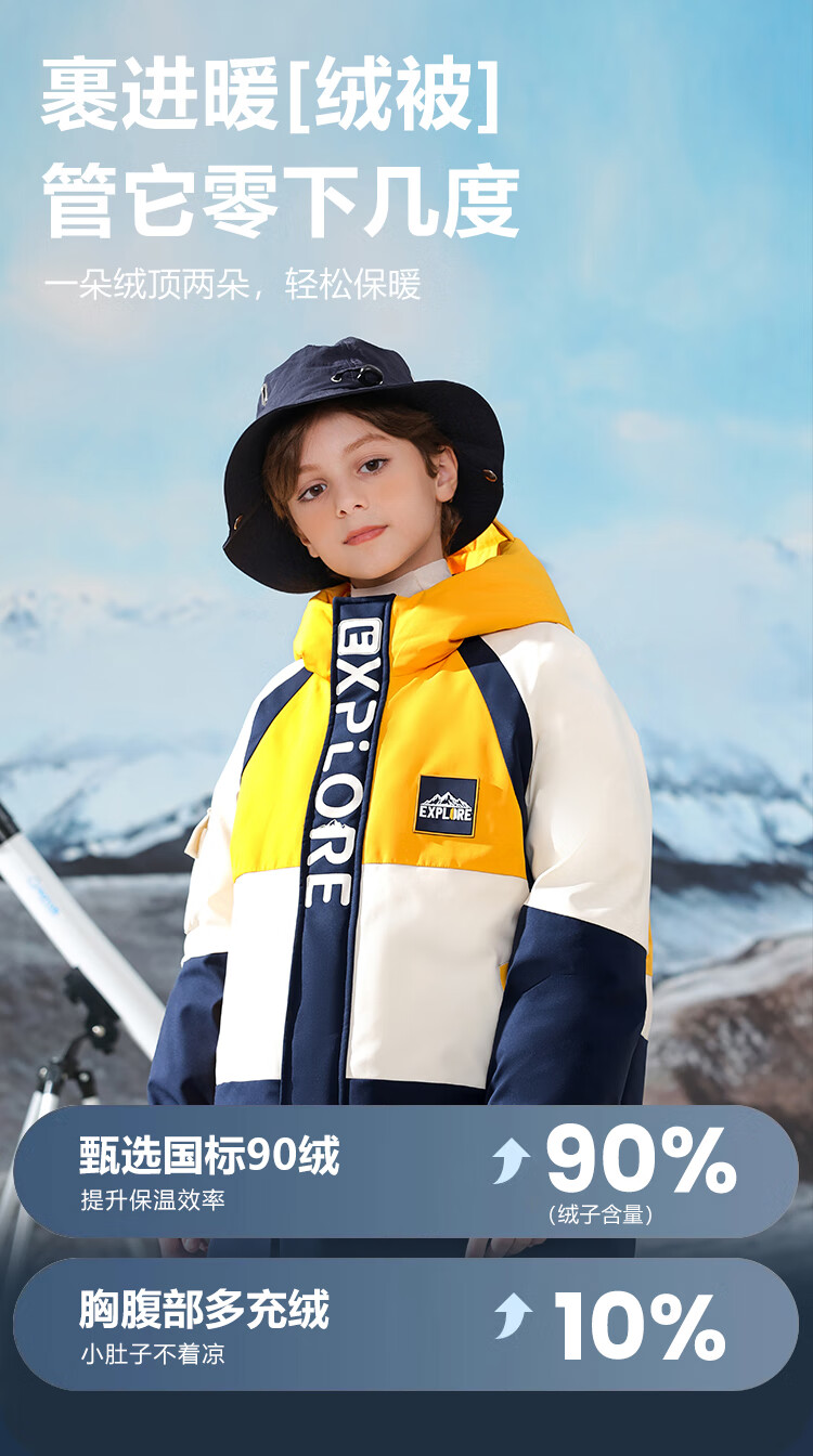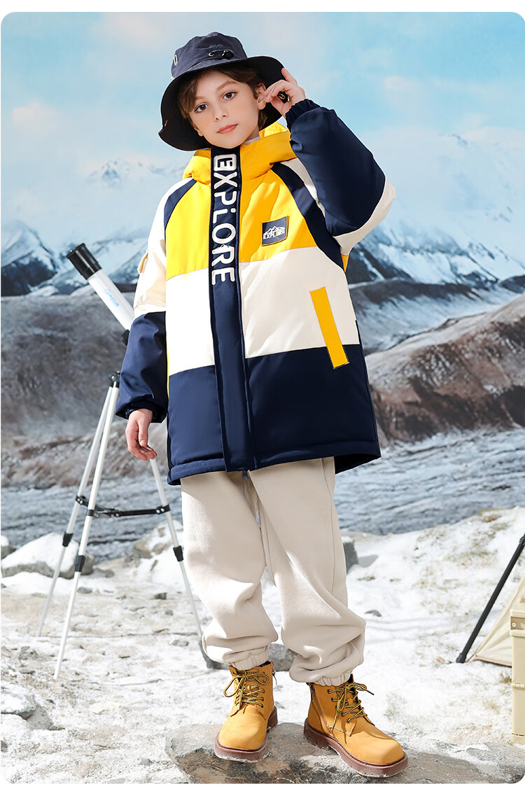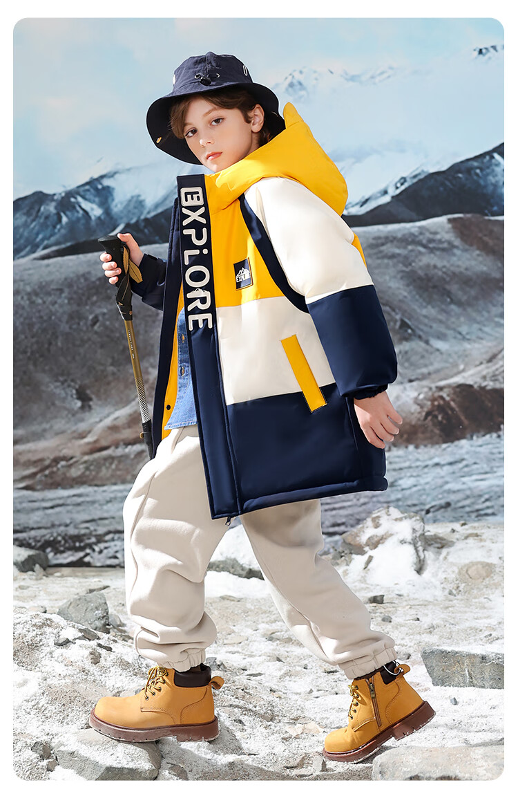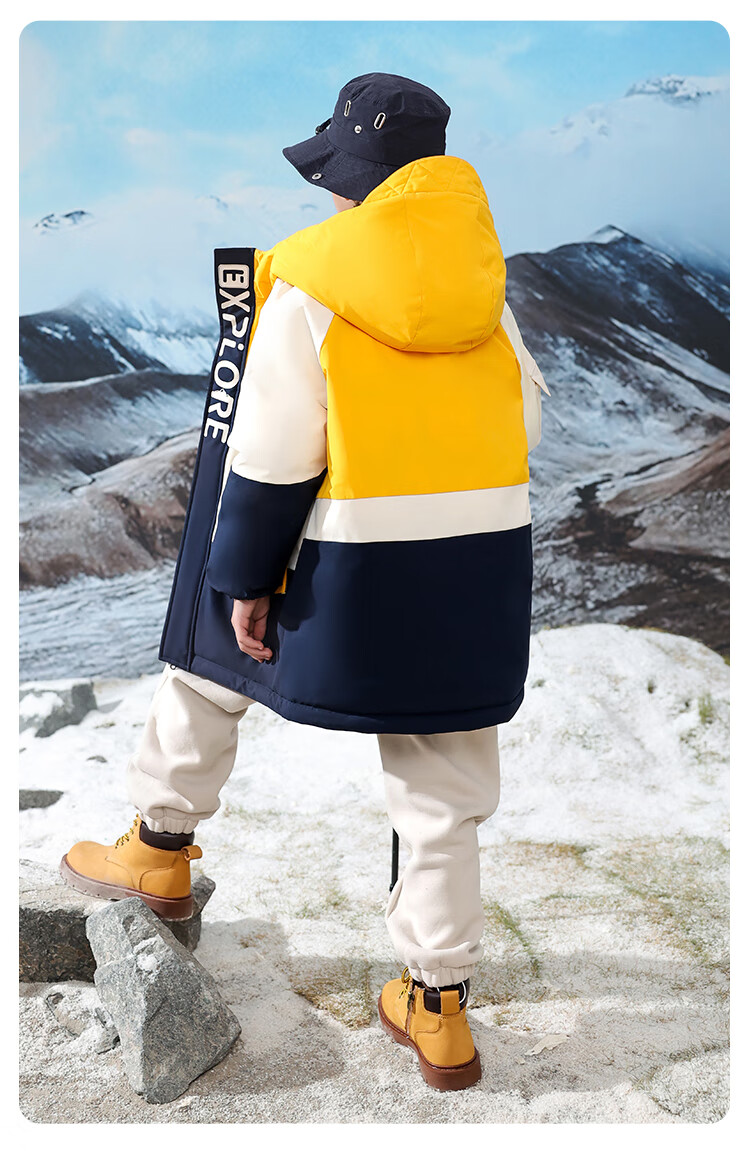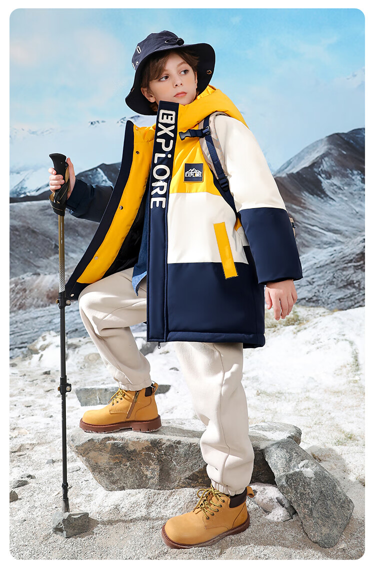 康博儿童羽绒服男童中长款冬季新款中大童青少年工装户外加厚童装外套 黄色 160
