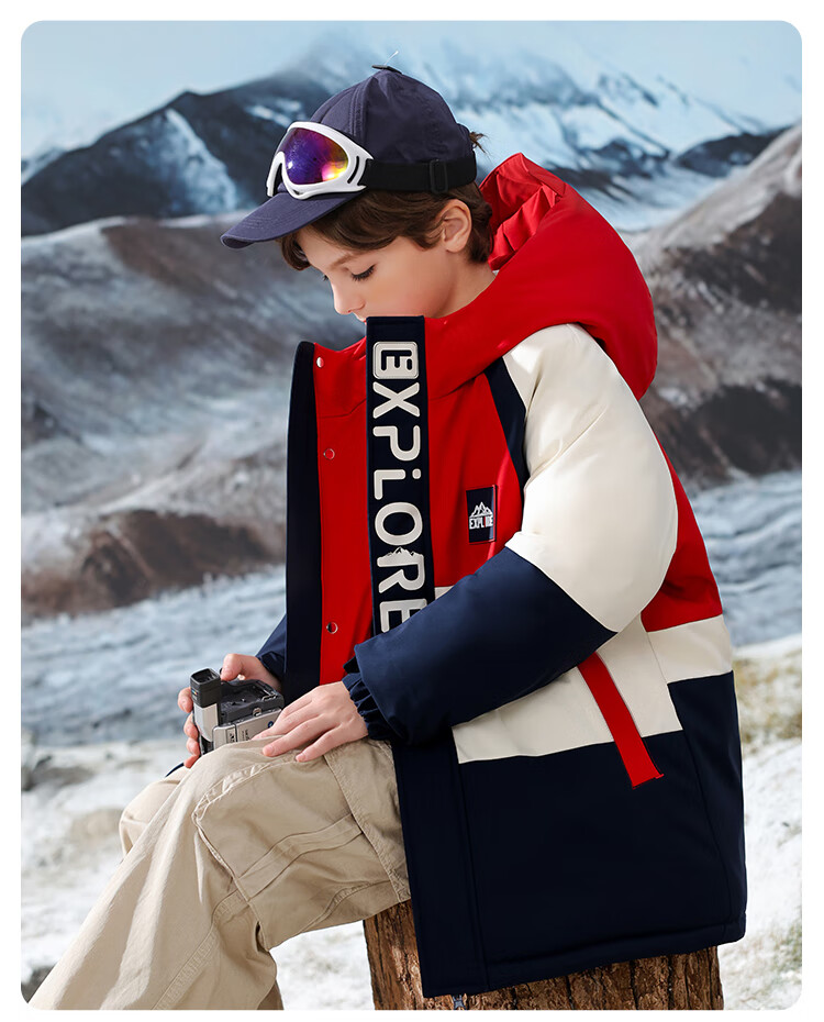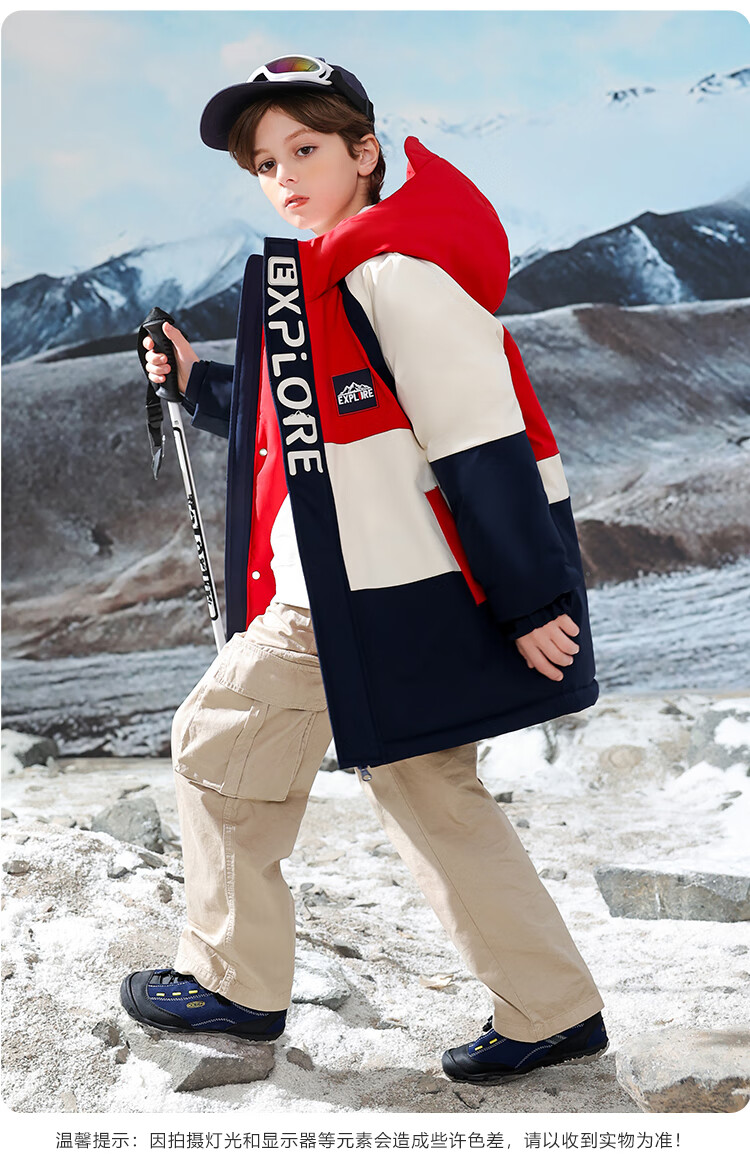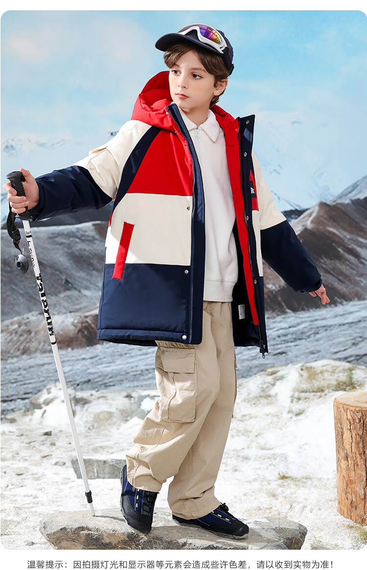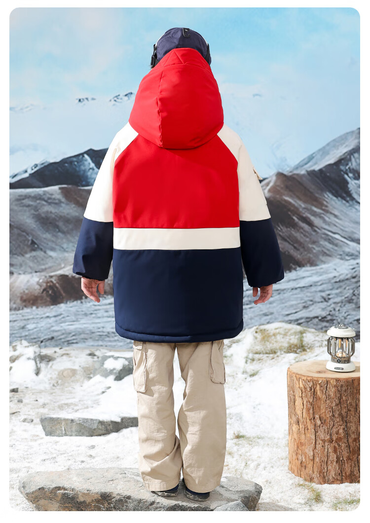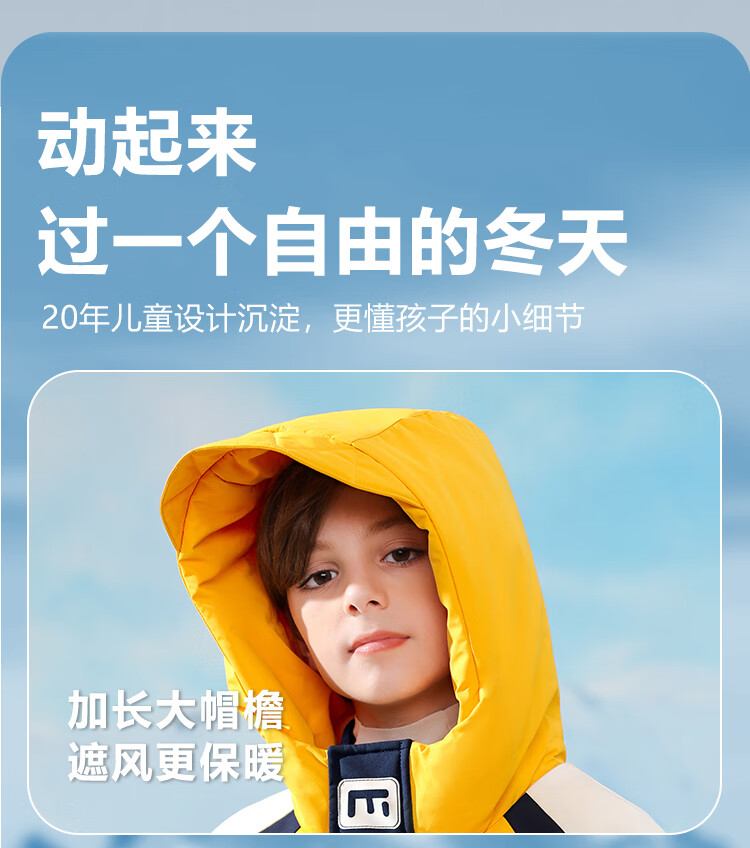 康博儿童羽绒服男童中长款冬季新款中大童青少年工装户外加厚童装外套 黄色 160