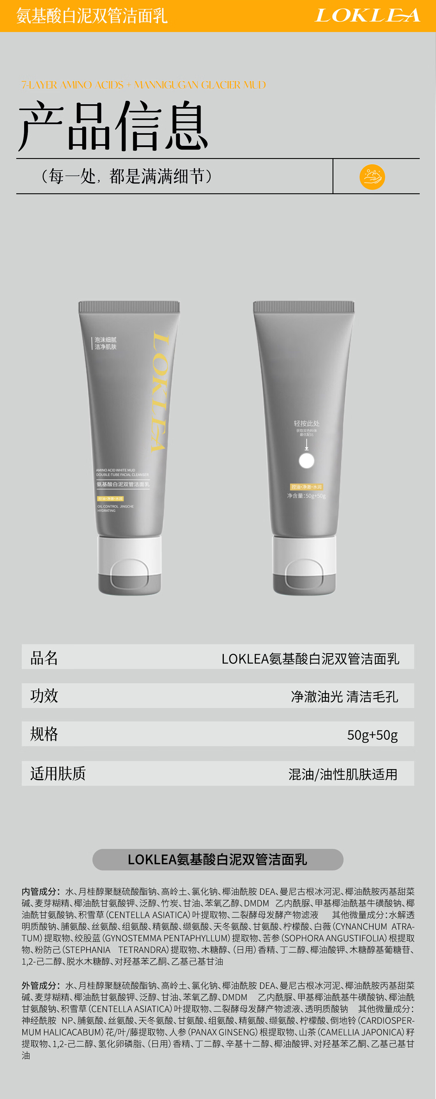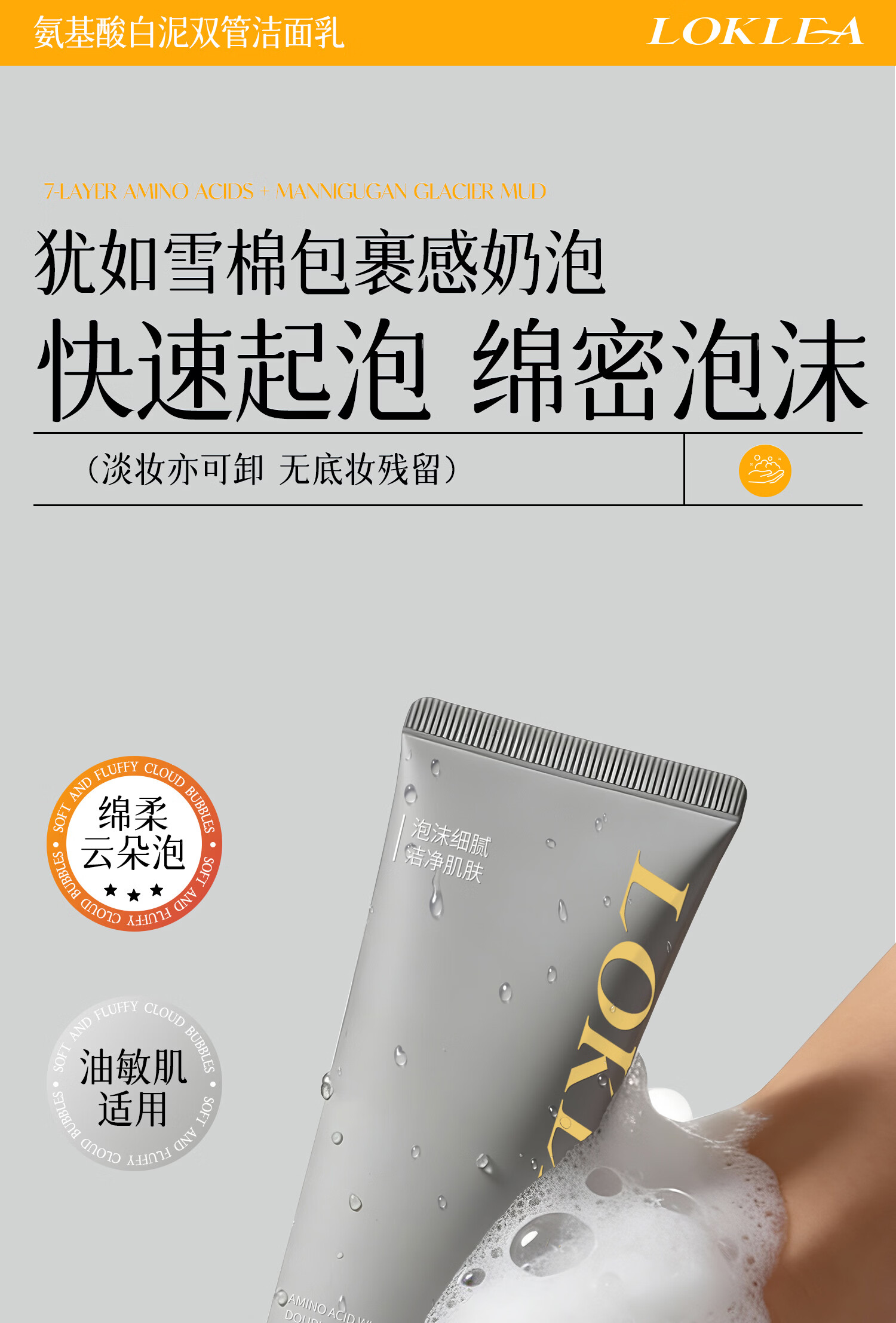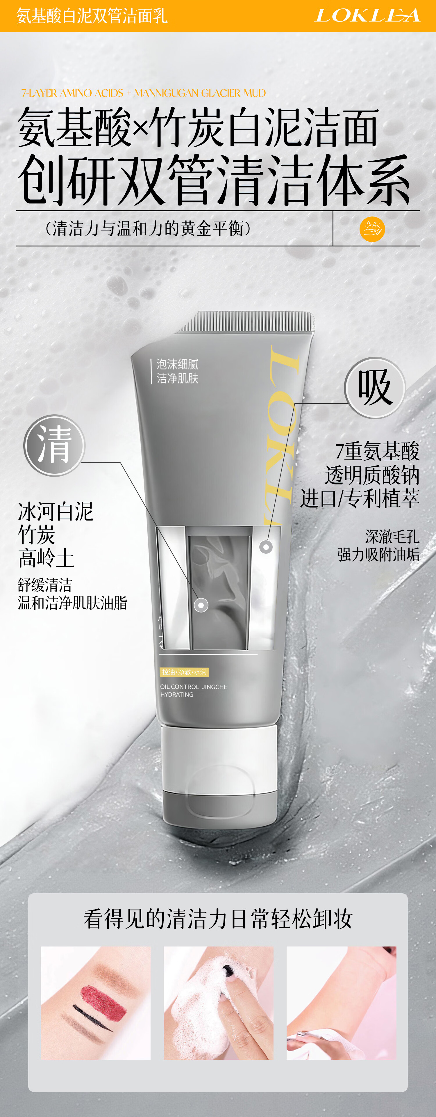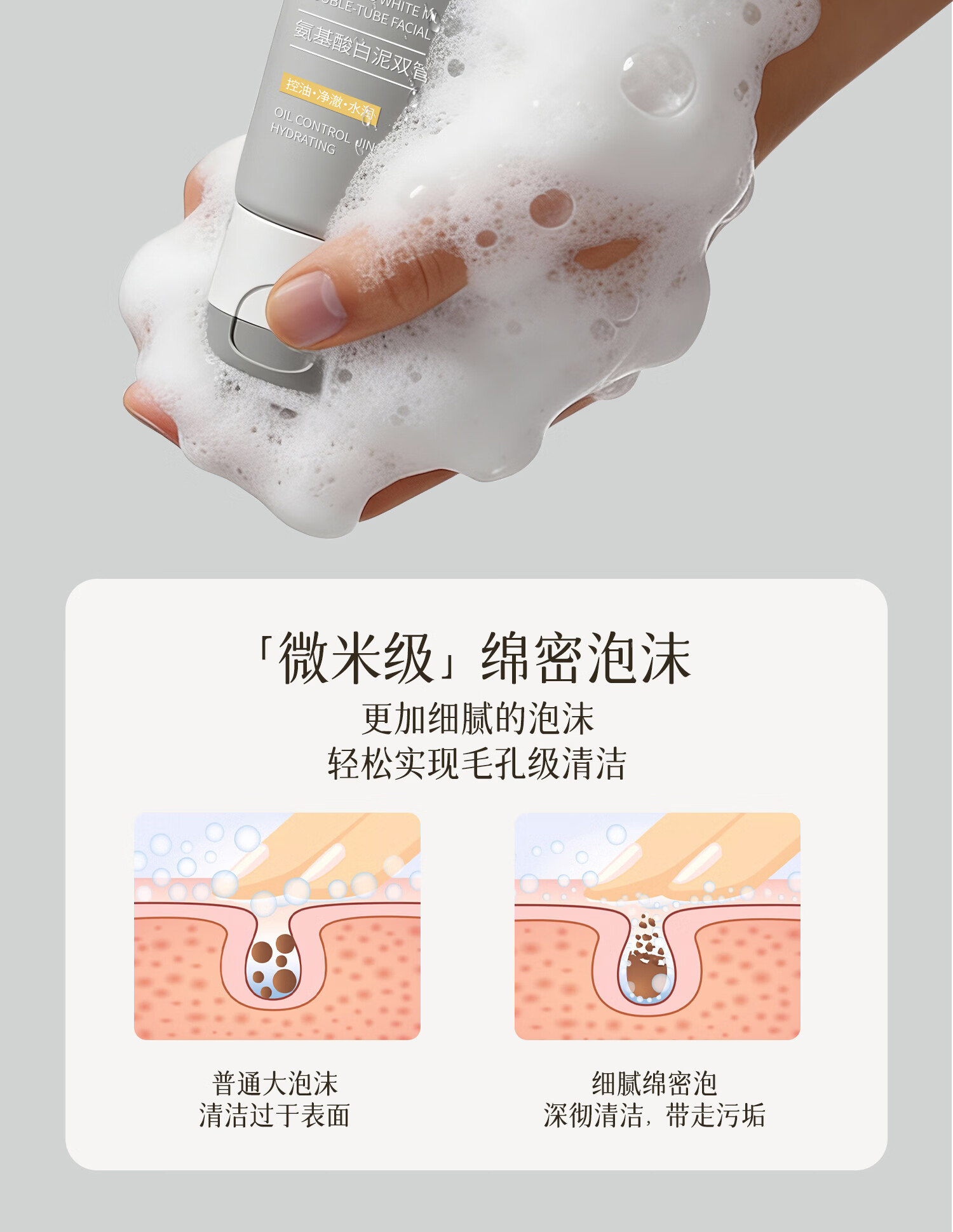 DR.TOUCH氨基酸白泥双管洁面乳50g+50g泡沫控油净肤清洁毛孔 氨基酸50g+白泥50g