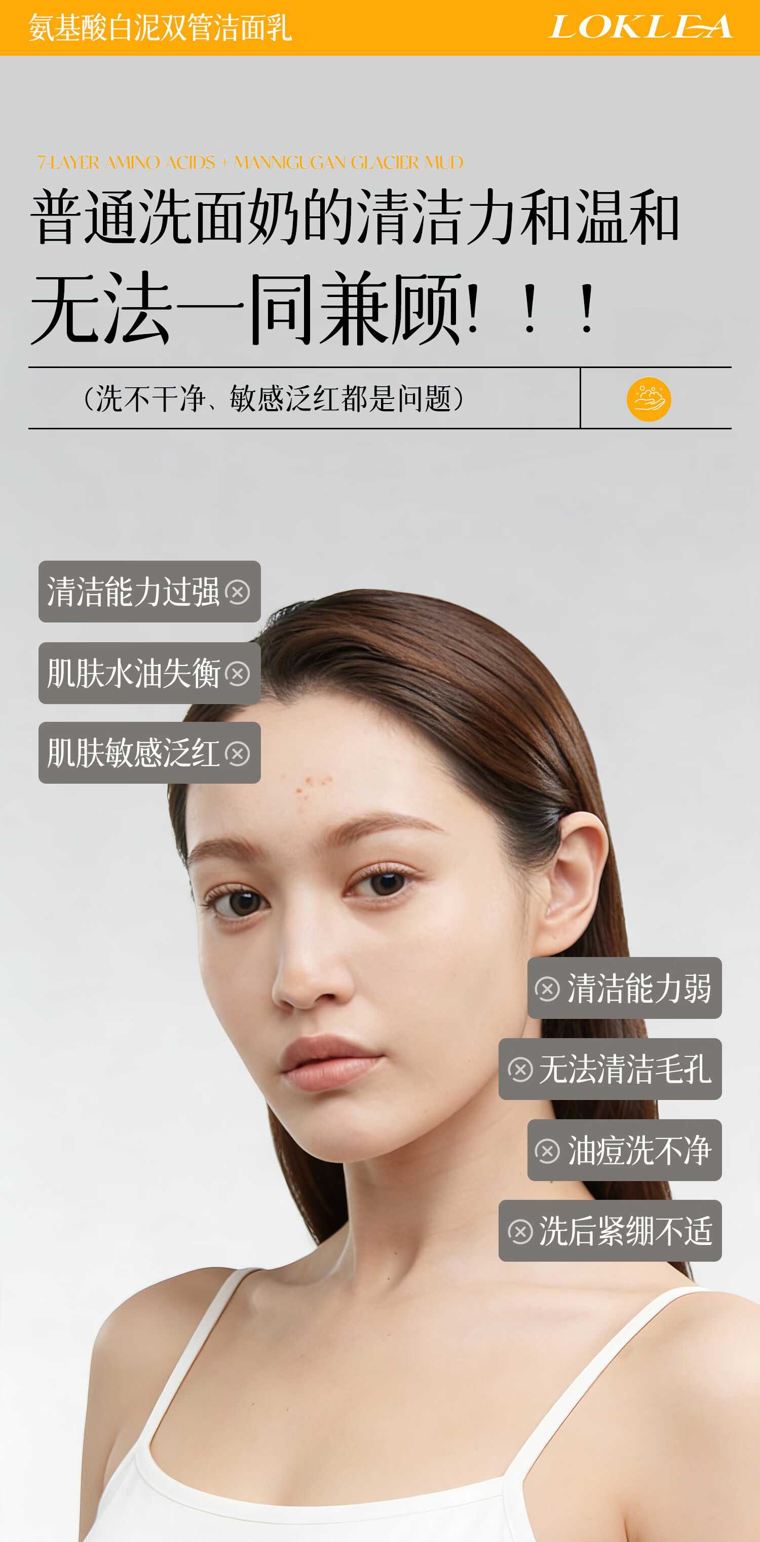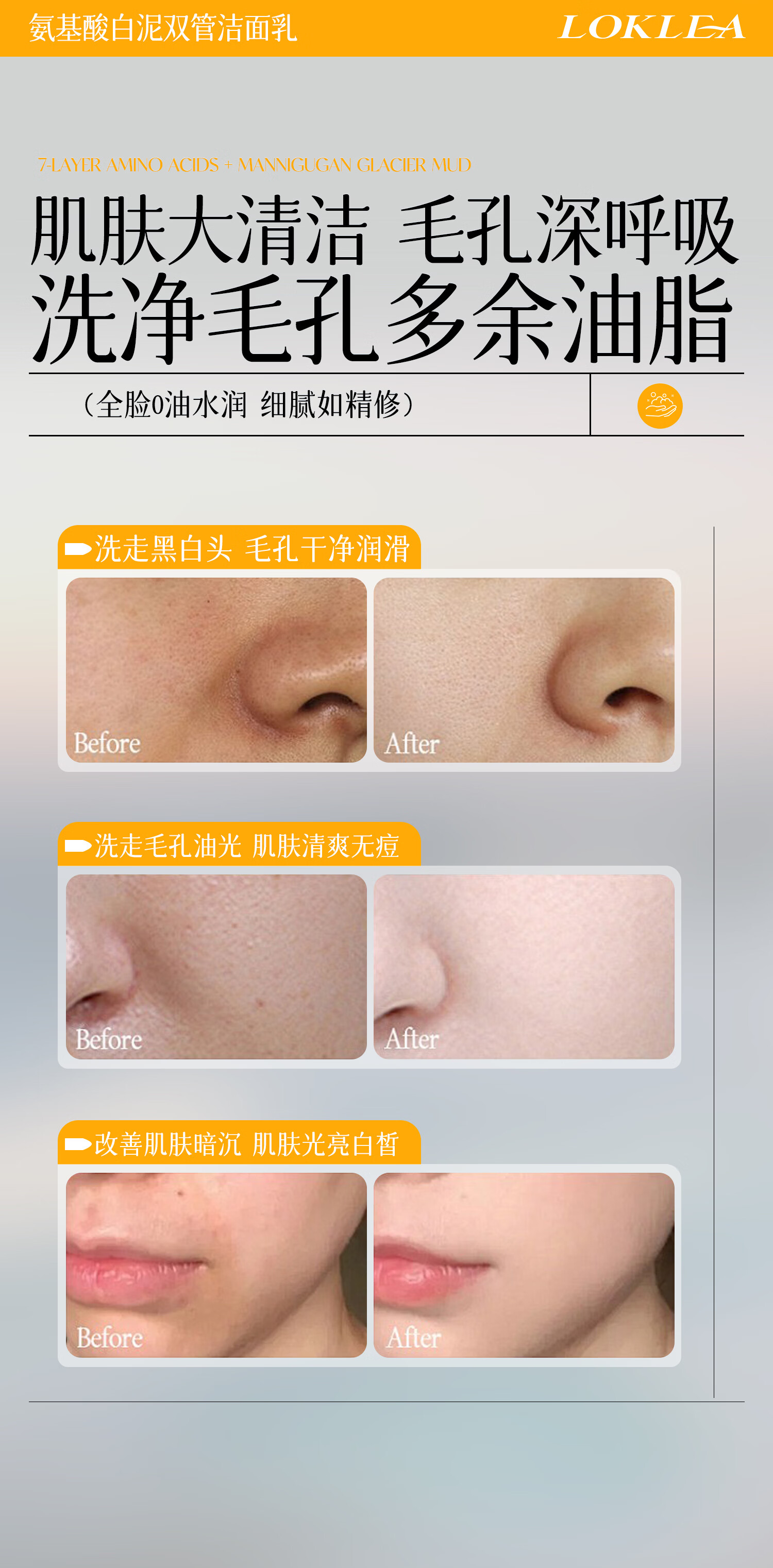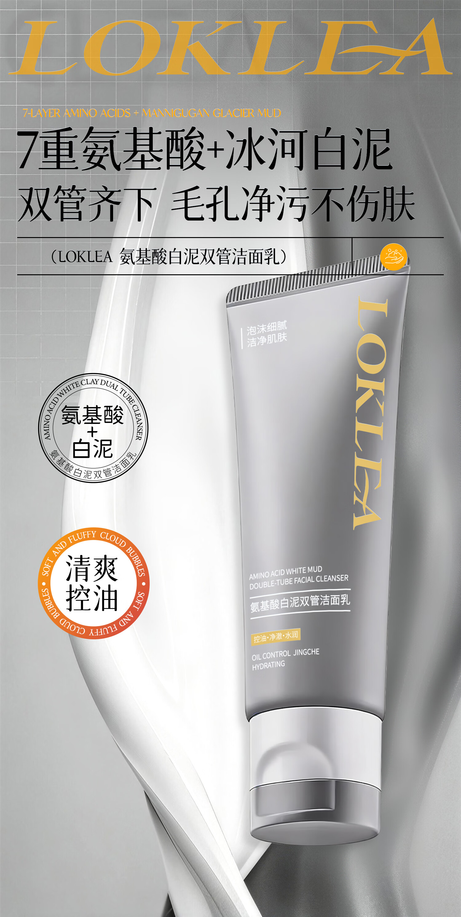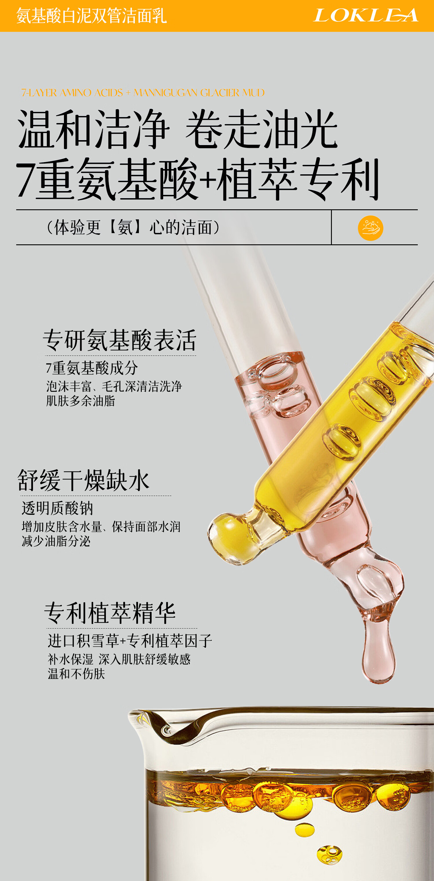 DR.TOUCH氨基酸白泥双管洁面乳50g+50g泡沫控油净肤清洁毛孔 氨基酸50g+白泥50g