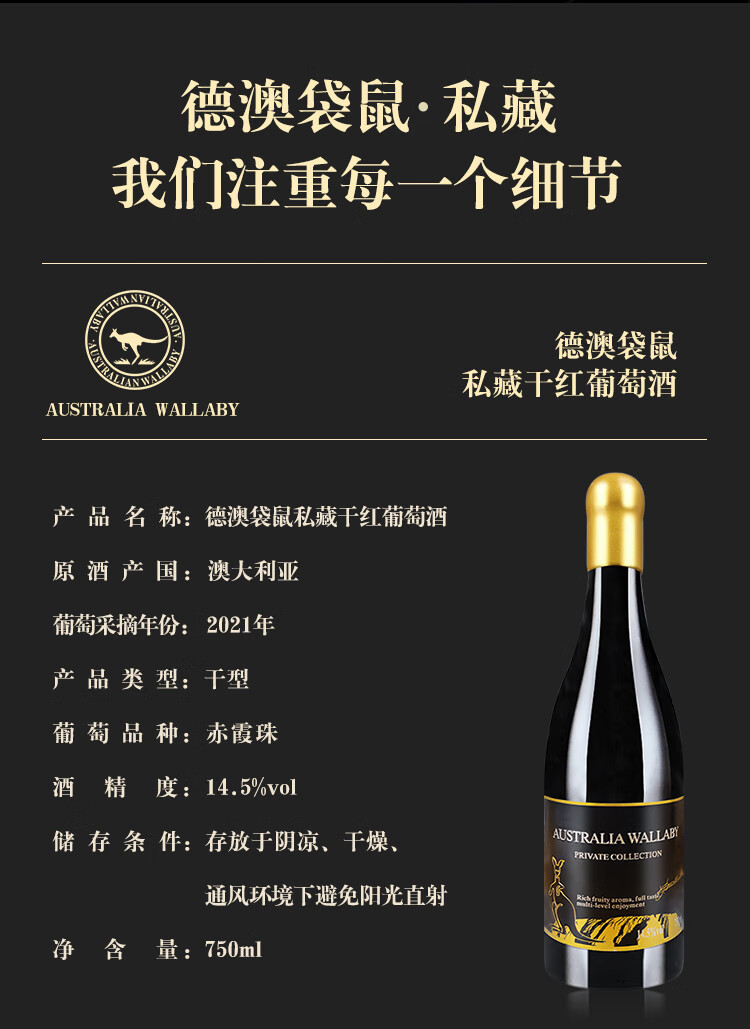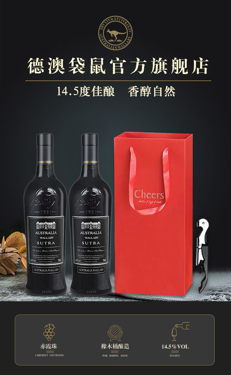 德澳袋鼠澳大利亚原酒进口红酒干红葡萄酒赤霞珠礼袋送礼团购750ml*2 经典14.5度双支礼袋(送海马刀)