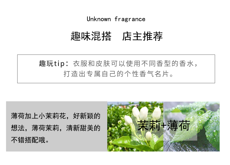 未知香 纯茉莉花香水女士持久淡香学生清新天然小众花香茉莉花茶味 茉莉50毫升香水