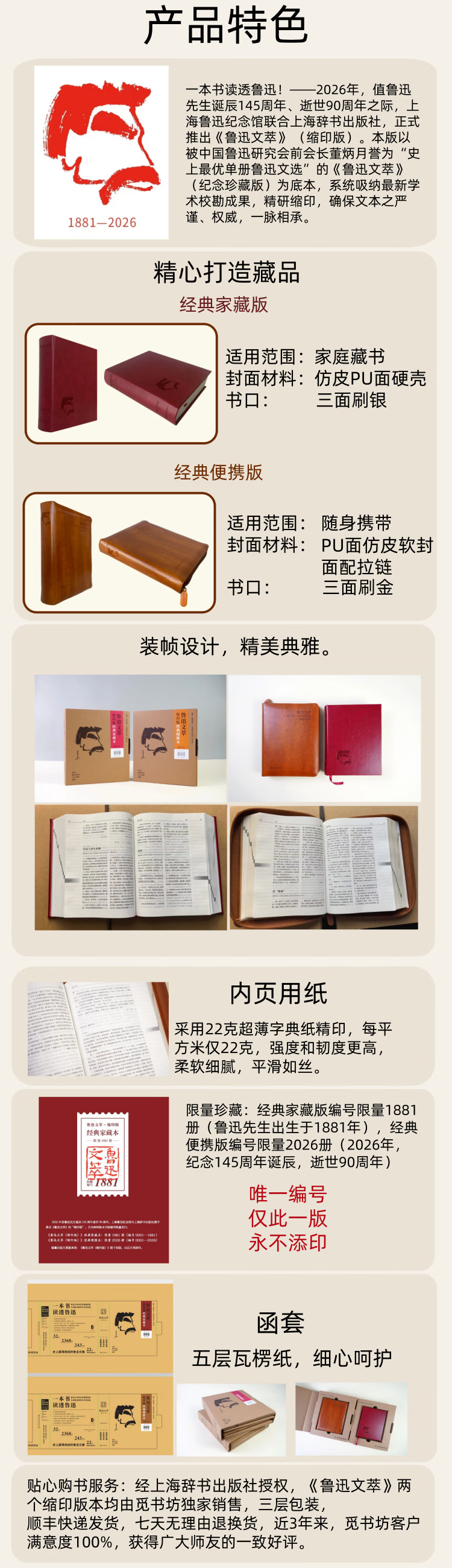 【限定编号·刷边版·一版一印·正版现货·全新】鲁迅文萃 缩印版 经典便携本+鲁迅文萃缩印版经典家藏本 精装 上海辞书出版社