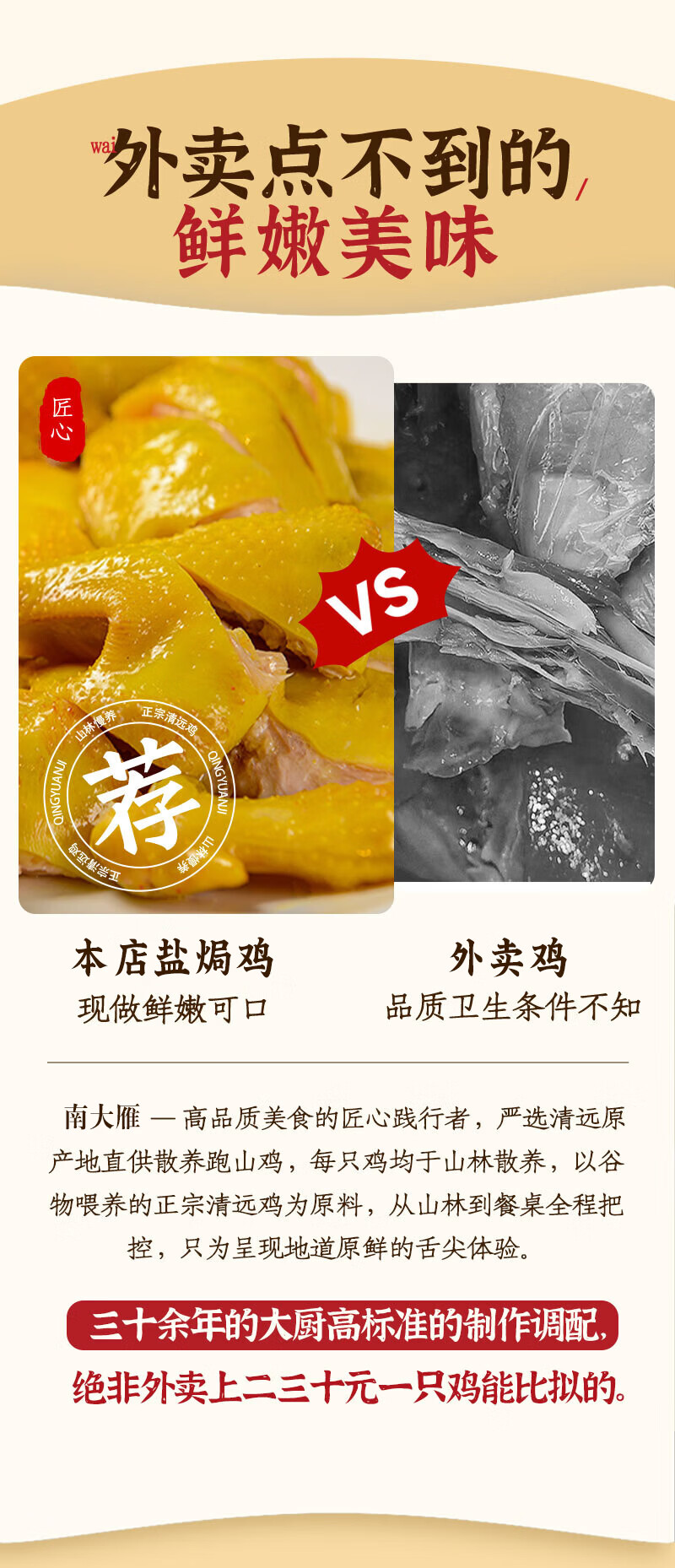 南大雁【广东清远鸡】五指毛桃盐焗鸡 扒鸡 加热即食整只现杀散养土鸡 家庭实惠装【3只5.4-6.6斤净重】赠送3包五指毛桃