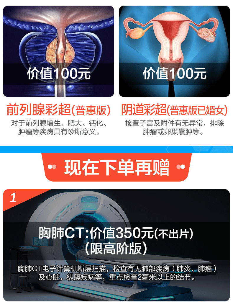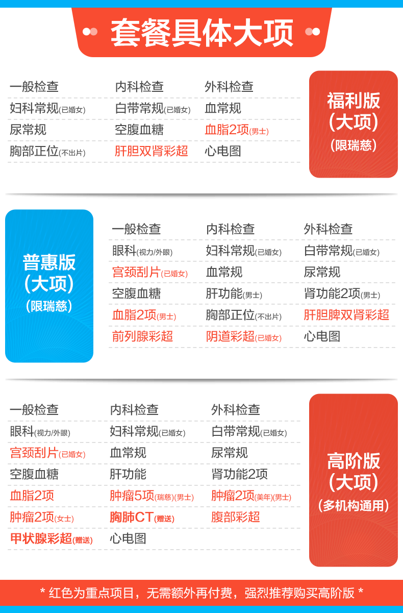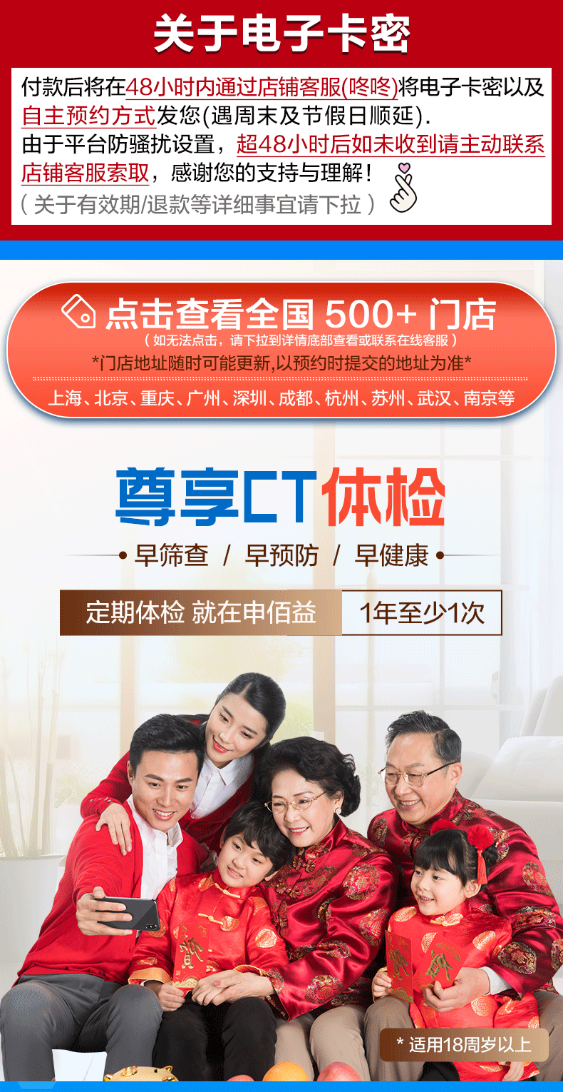 美年大健康瑞慈体检套餐中青老年父母全家通用体检套餐男女士体检卡全国体检中心上海北京成都 CT版体检套餐RY138【美年/瑞慈】