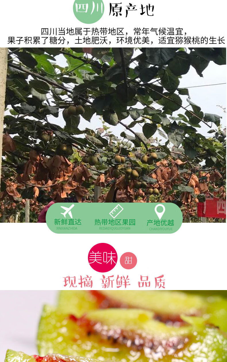 酷果汇四川正红心猕猴桃新鲜奇异果应当季时令孕妇水果整箱生鲜礼物礼盒 10枚大果【单果90-110g】