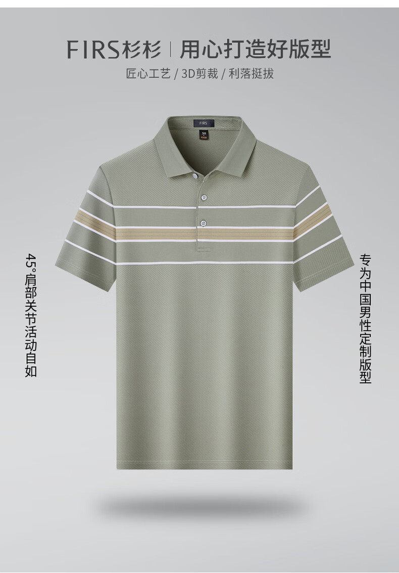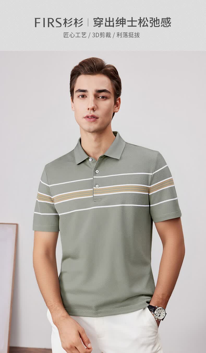 杉杉天丝莱赛尔彩纱男士翻领短袖T恤夏季休闲百搭通勤polo衫上衣男装 军绿 M