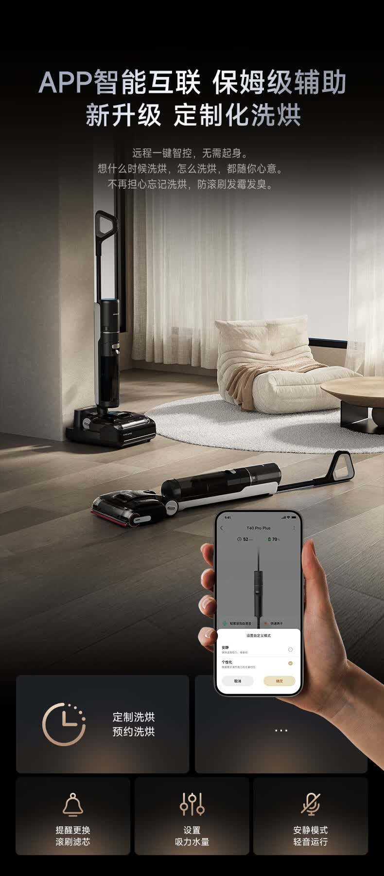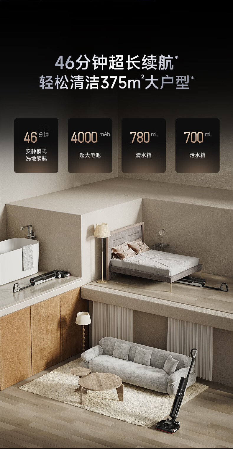 追觅【保价618】T40 ProPlus洗地机无线家用吸洗拖一体自动清洗拖地机【75℃浸洗 机械臂瞬时0水渍】