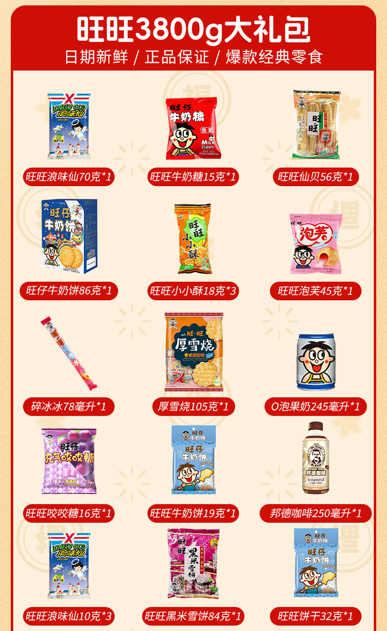 旺旺休闲食品零食大礼包3800g春节过新年货走亲戚送礼品糕点点心礼盒