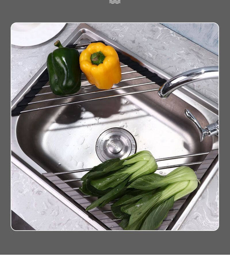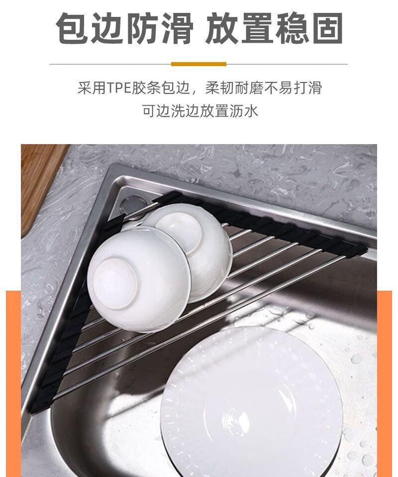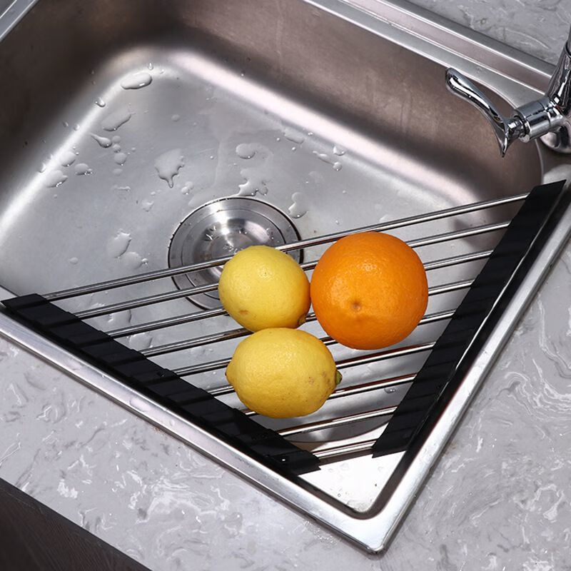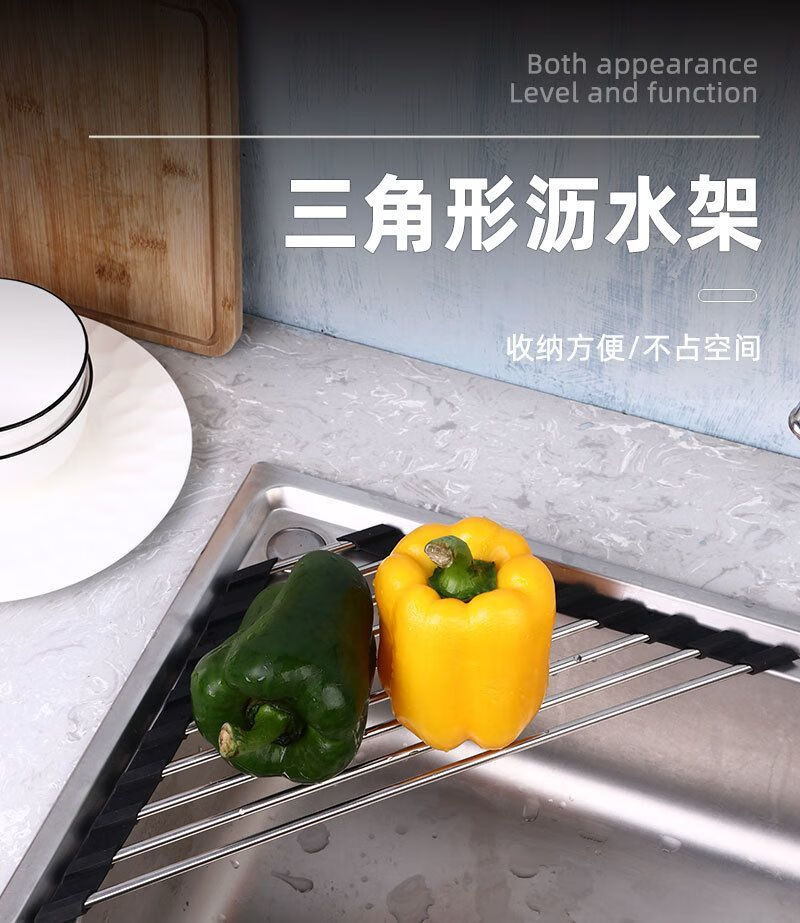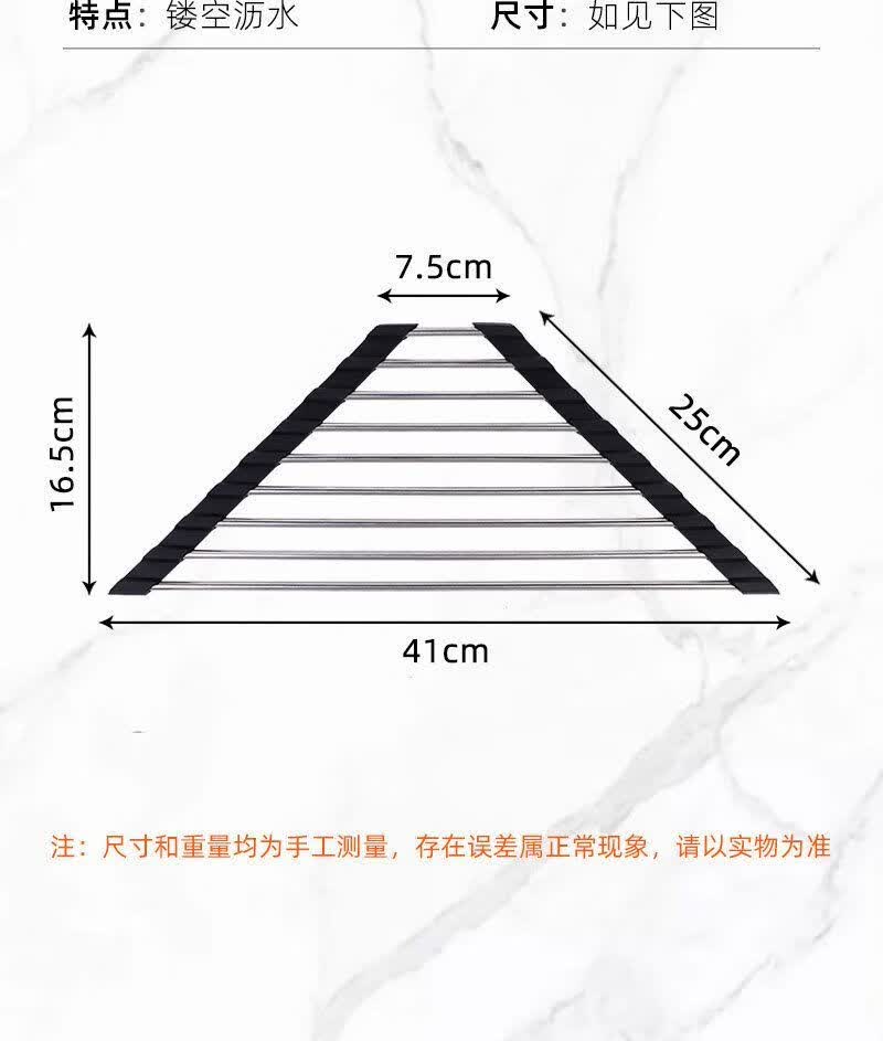 沥水架不锈钢水槽边三角形沥水帘可折叠洗菜碗碟沥水多功能置物架 【灰色】1个装