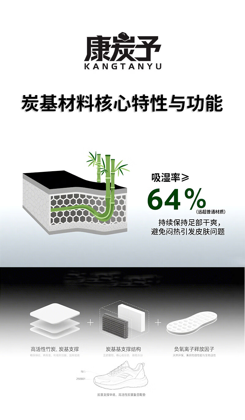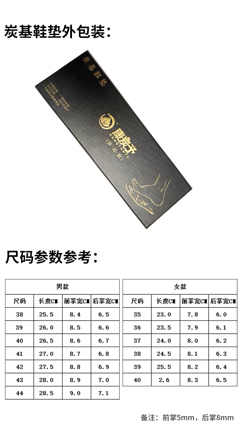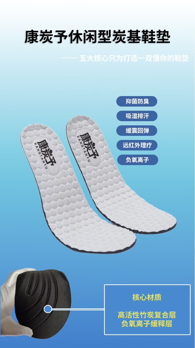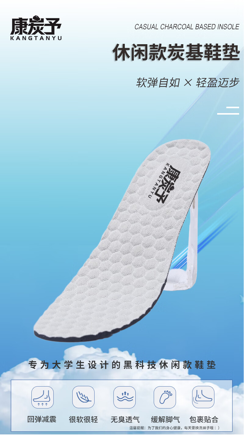 康炭予炭基鞋垫含炭80%男女通用舒适透气吸汗防臭软底防滑运动休闲鞋垫 两双休闲女款 40码