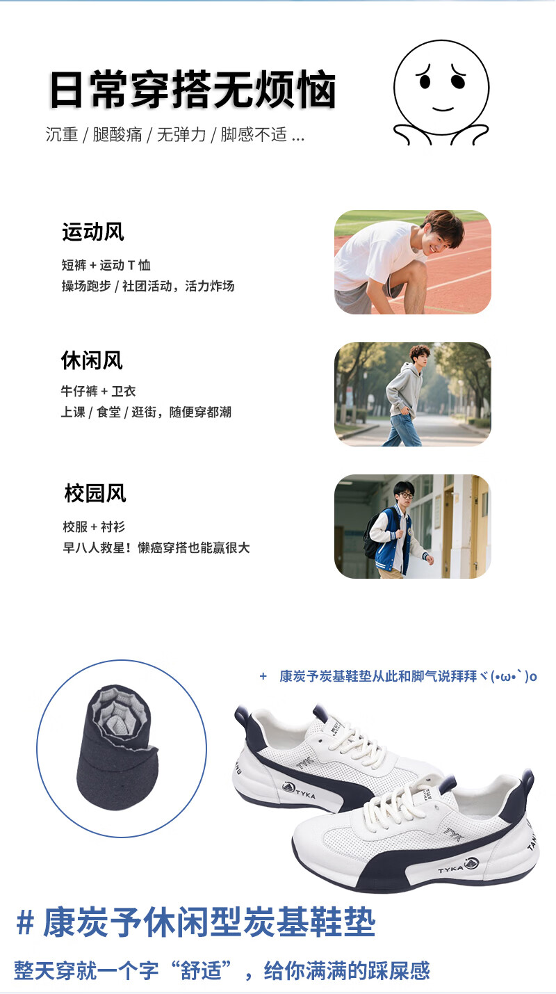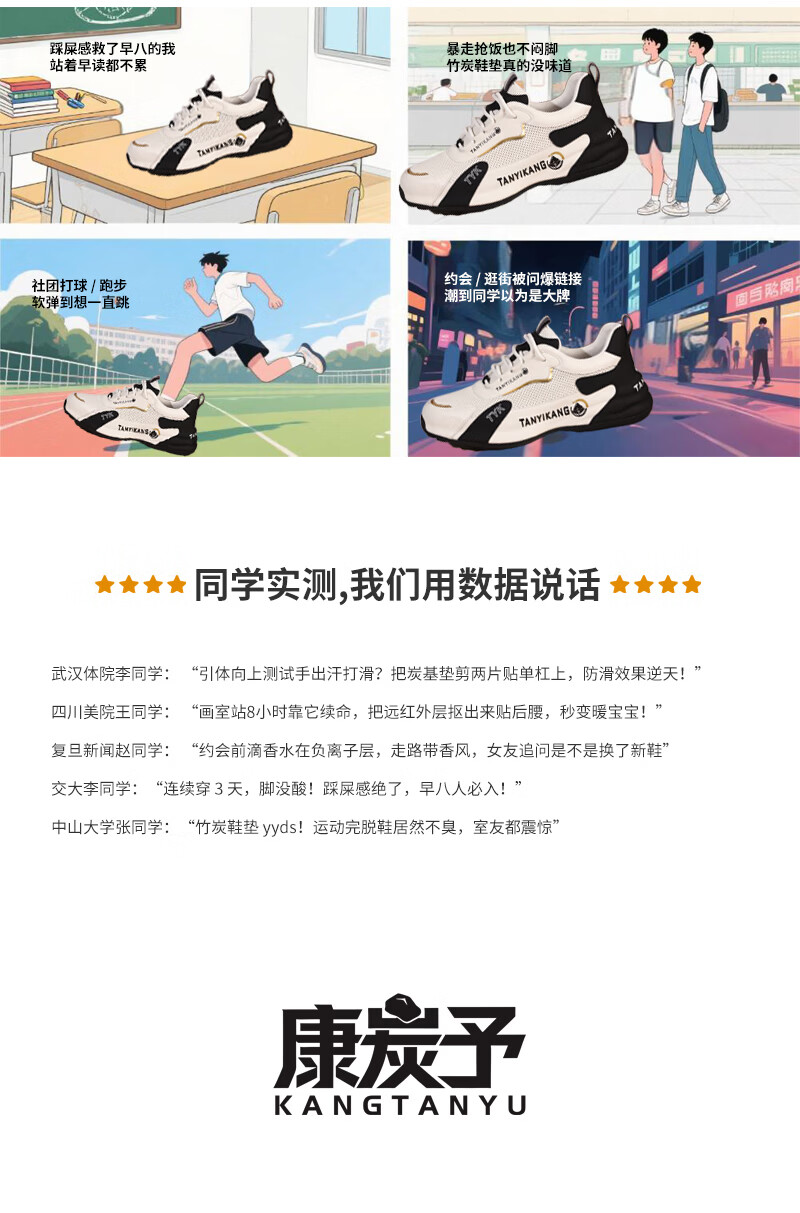 康炭予儿童鞋垫6-16岁除臭吸汗防滑鞋垫男女青少年通用久穿不臭 运动款两双装 34码