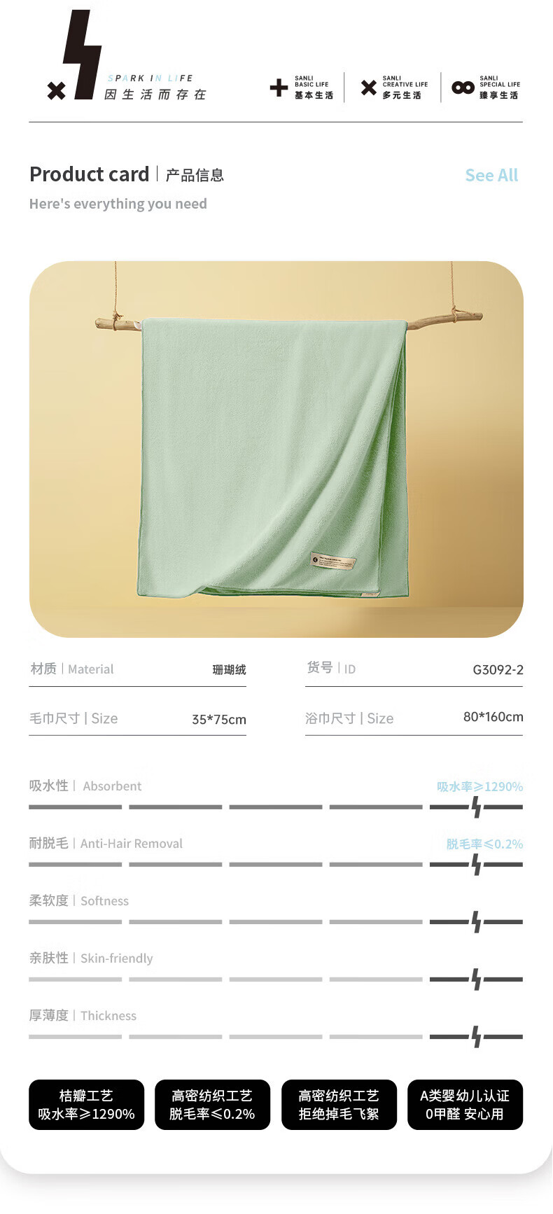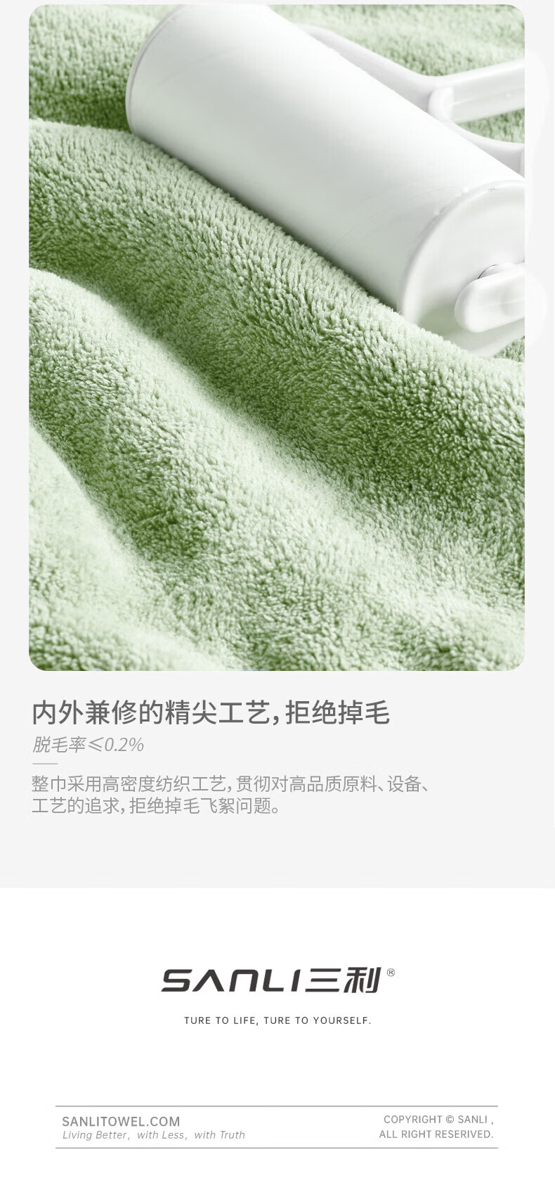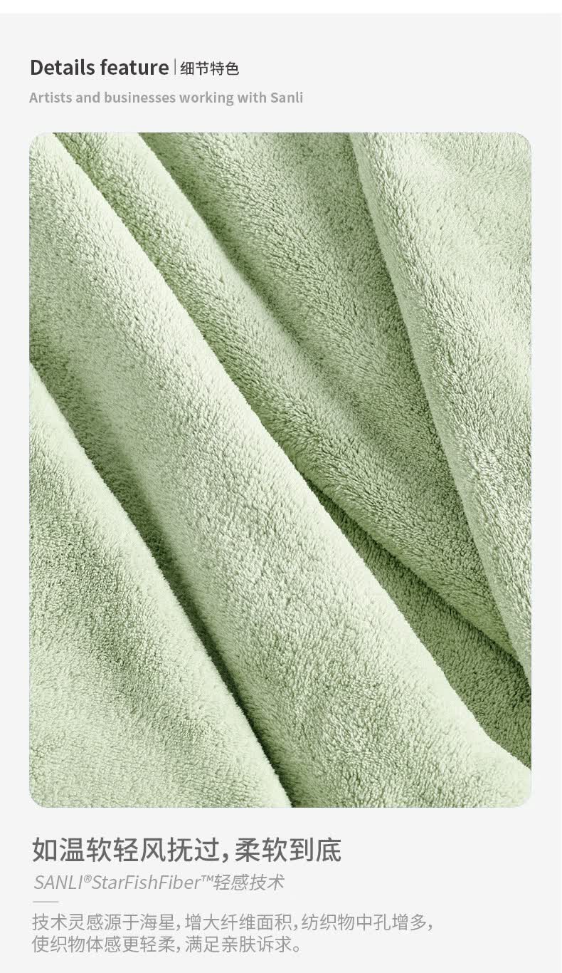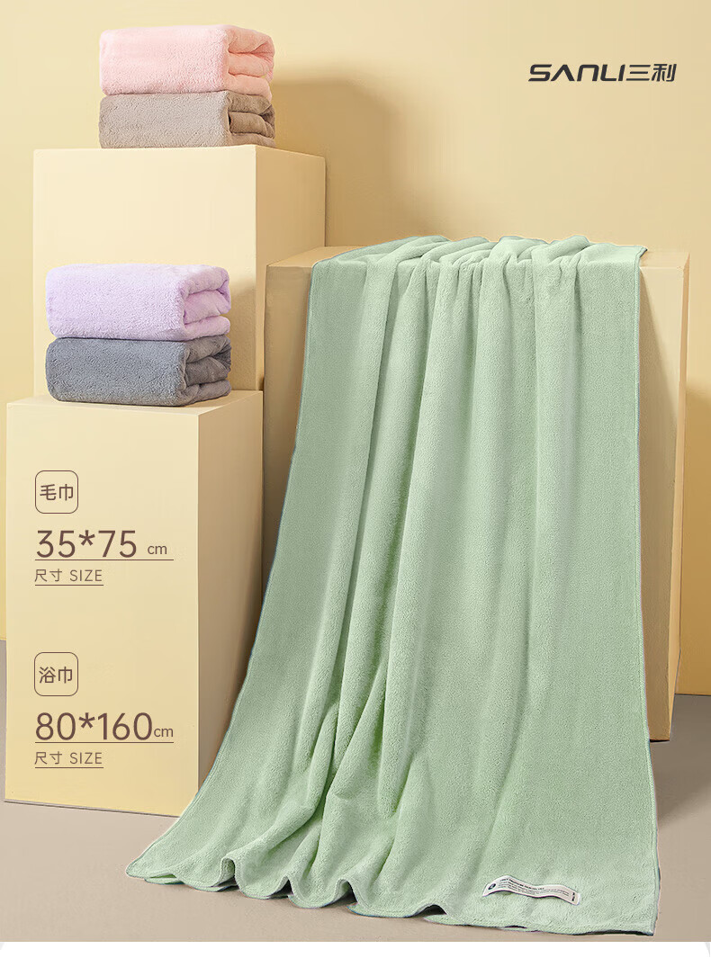 三利加大款毛巾浴巾2件套装A类男夏季速干吸水洗澡不掉毛大成人女绿色