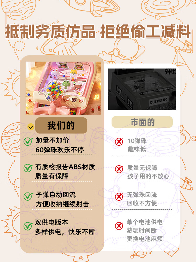 贝初众弹珠游戏机儿童玩具女孩5-8-12岁益智玩具男孩童3-6-10岁生日礼物 萌兔【30弹珠+弹夹+灯光音效】礼盒款 4-7-9岁幼儿园小学初中生十周岁元旦新年圣诞节礼物