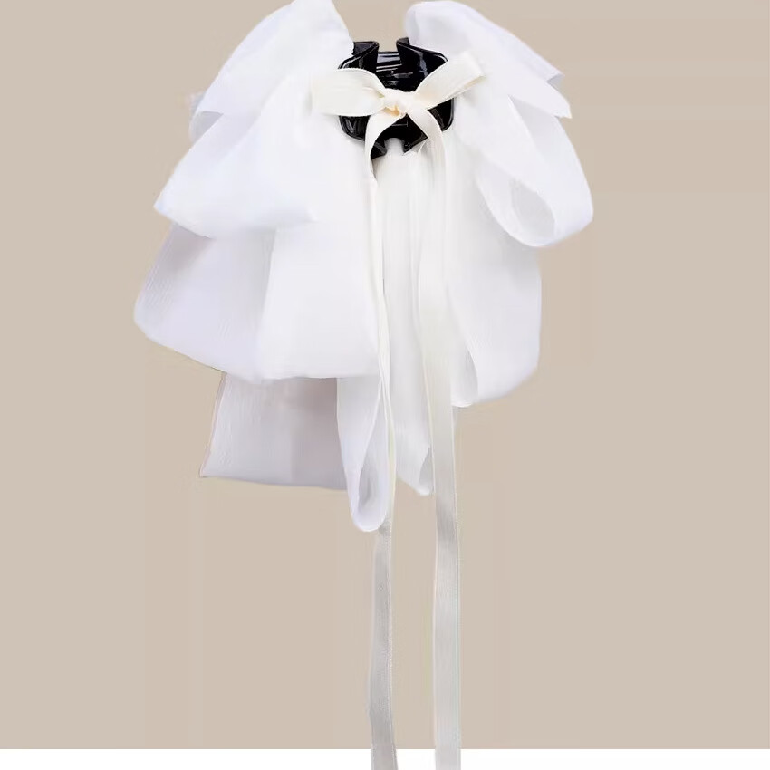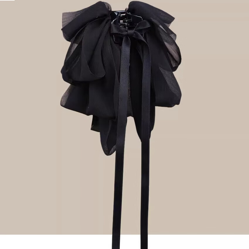 【精选】蝴蝶结飘带抓夹女法式湿柔头花后脑勺盘发夹发抓雪纺发饰 丝带-抓夹(黑