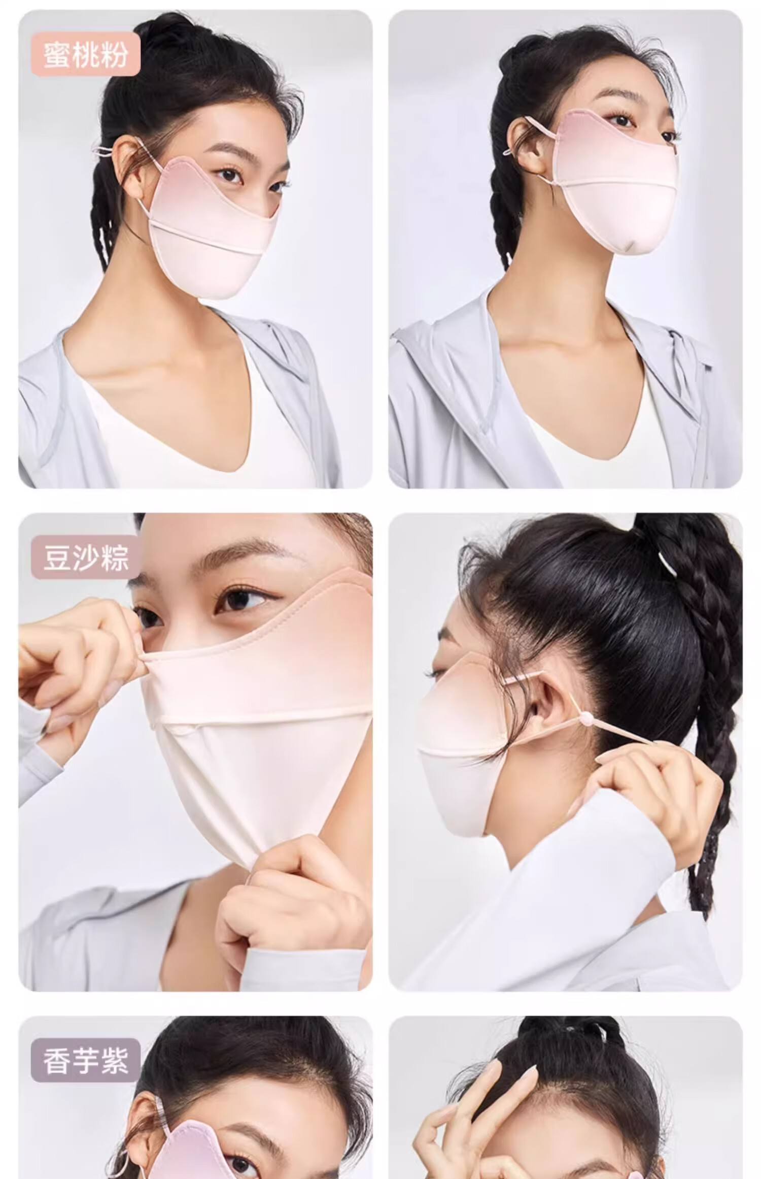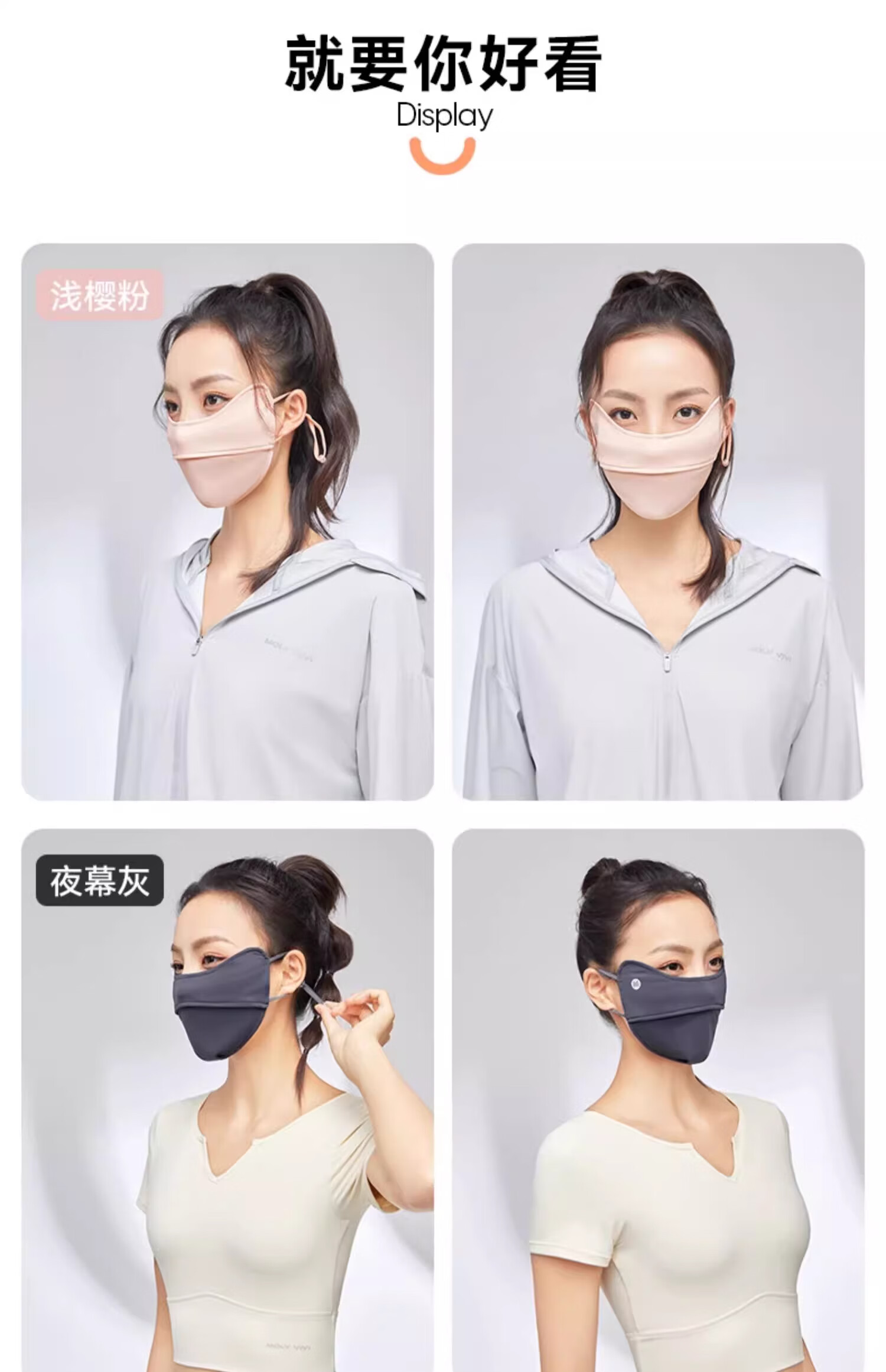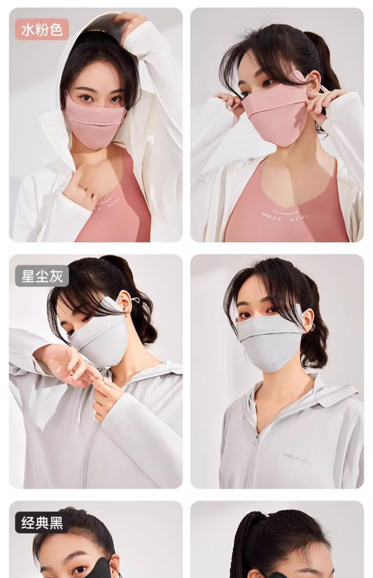 MOLY VIVI防晒口罩夏季新款遮阳透气不勒耳护眼角骑行防晒面罩魔力薇薇 经典黑【纯色款】