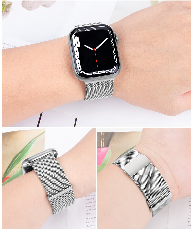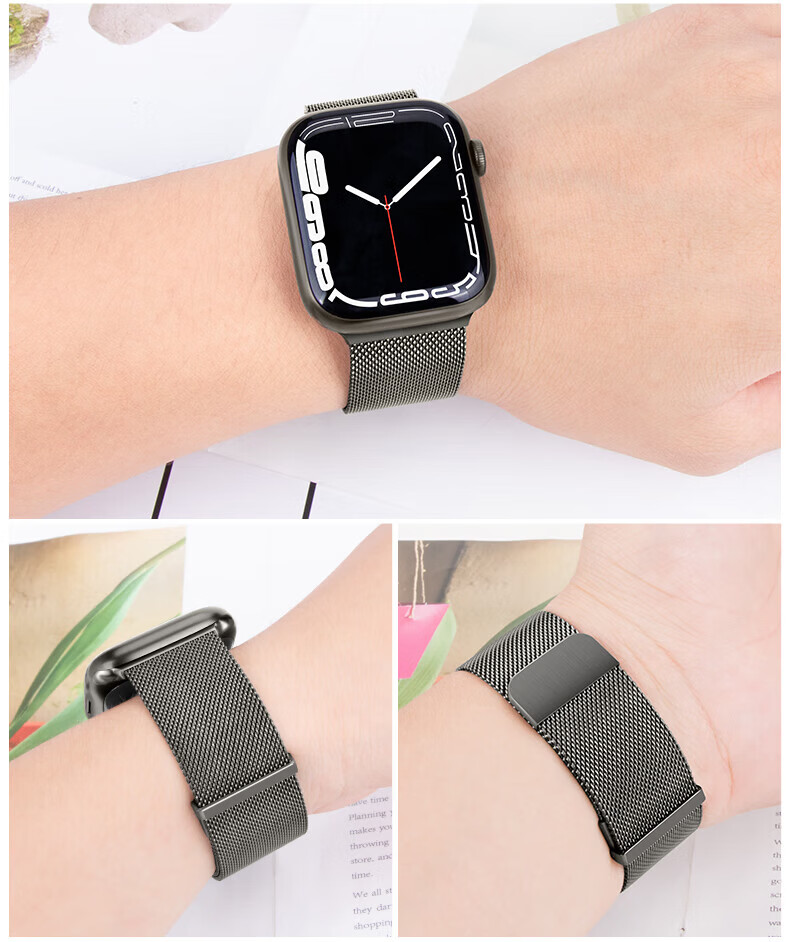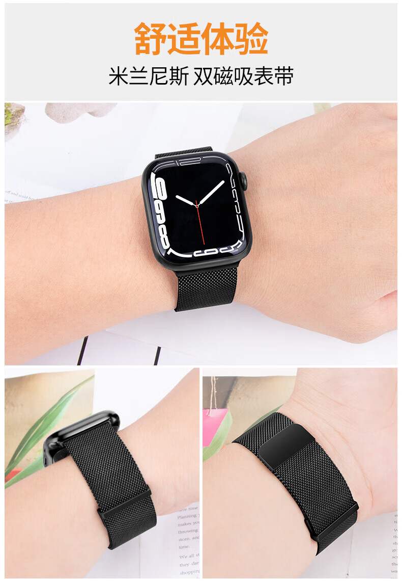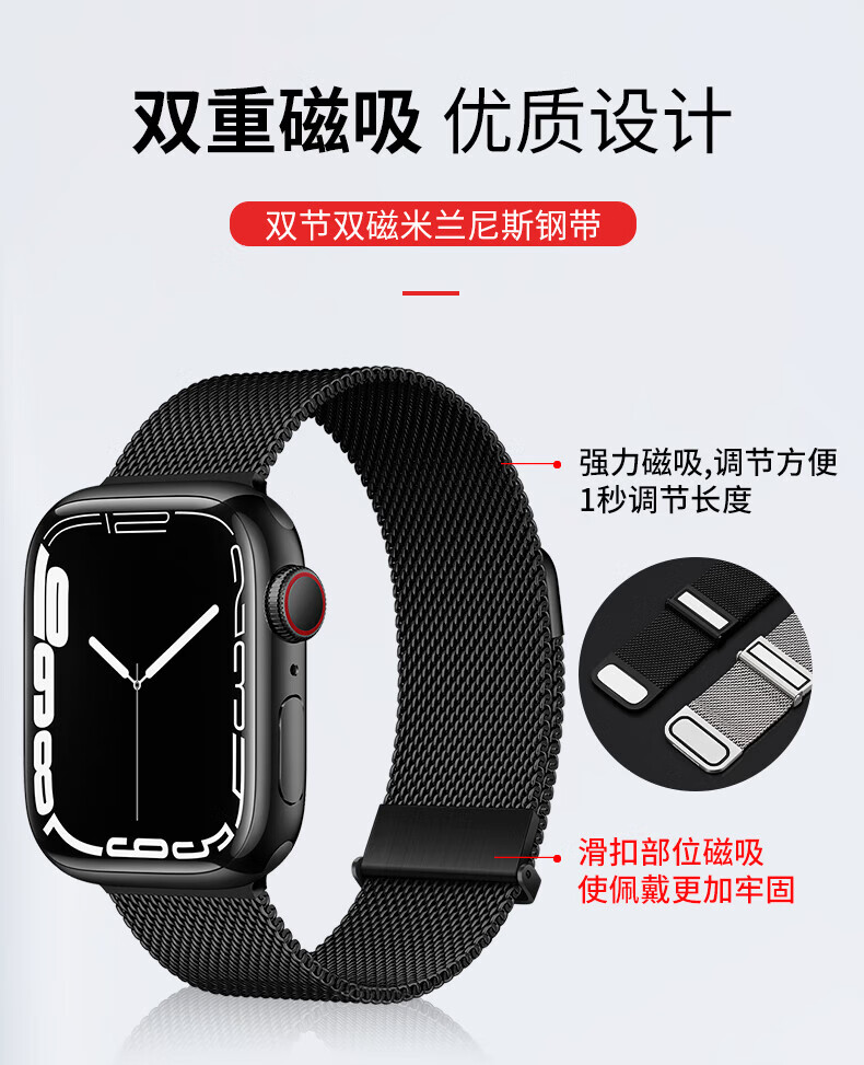 适用苹果applewatchs11新款s10手表SE表带iwatchs9米兰尼斯s8磁吸腕带智能表带运动男女替换配件 【双磁吸米兰尼斯】玫瑰粉 iwatch10/11代【46MM表盘】