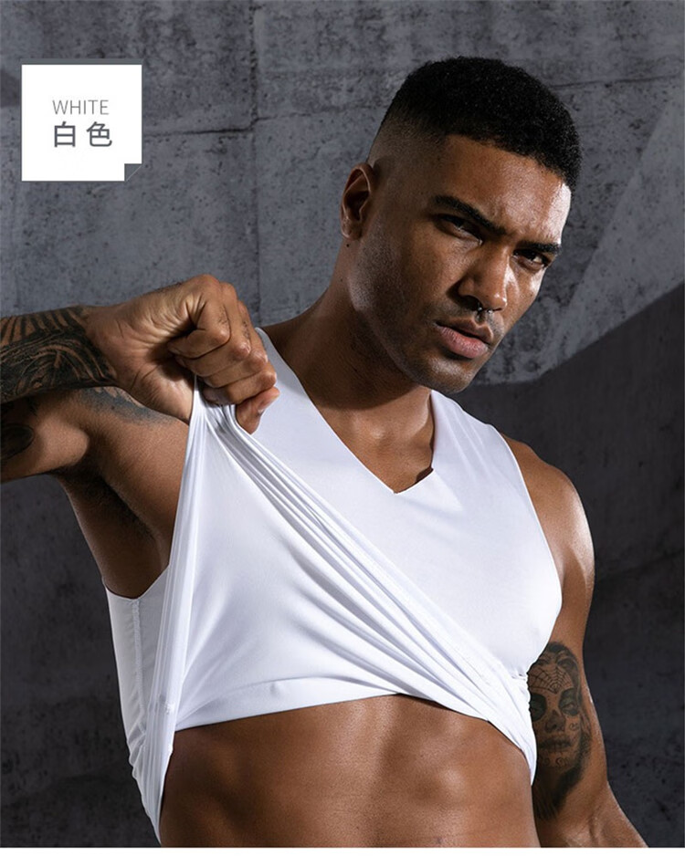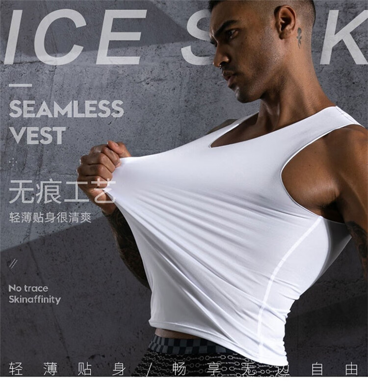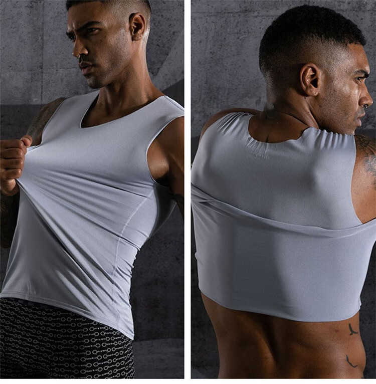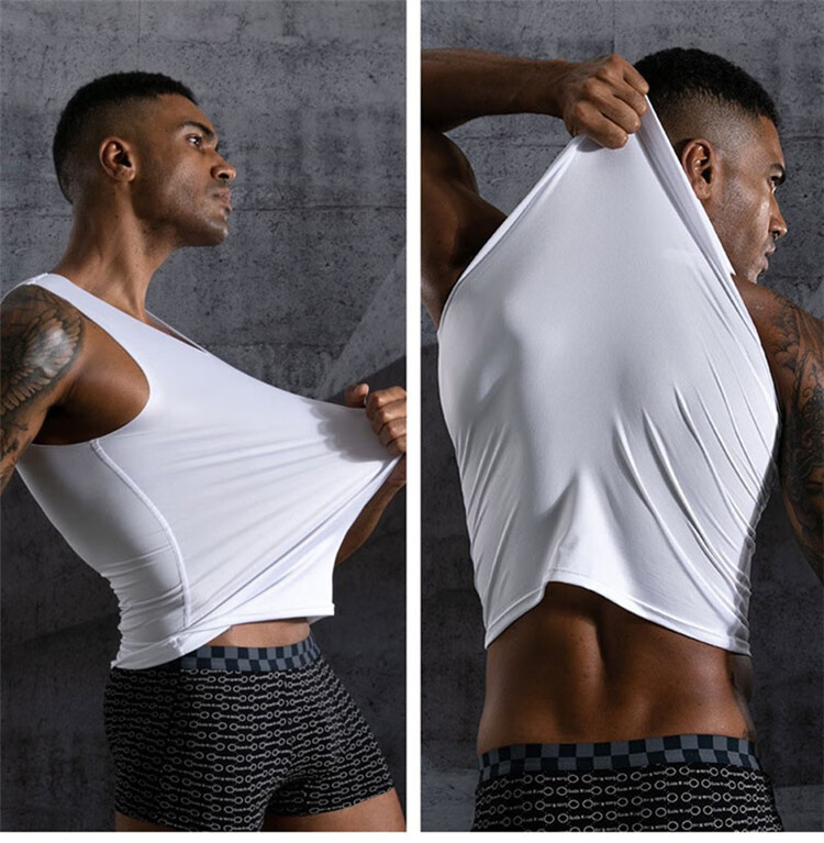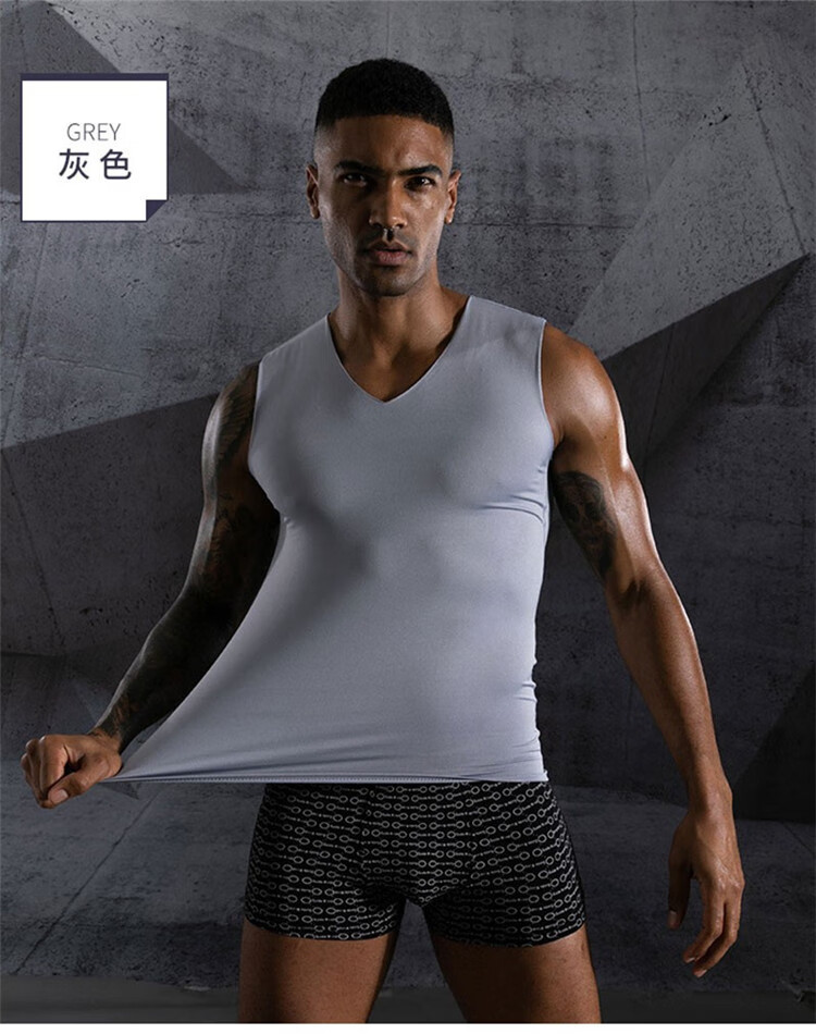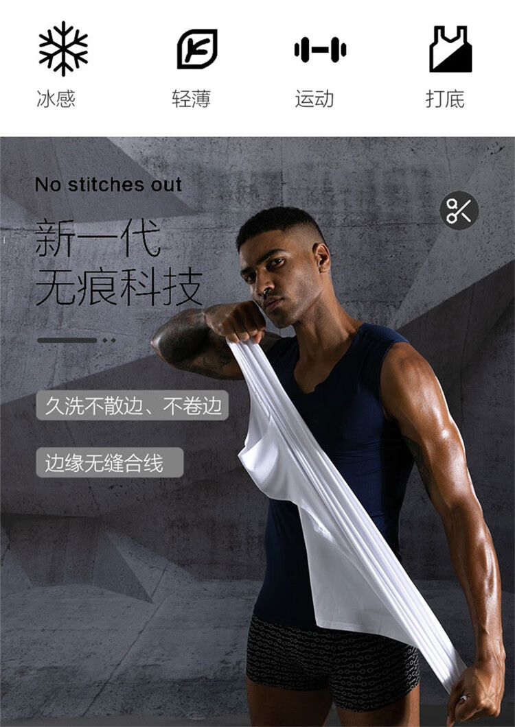 莫代尔男士冰丝背心v领无痕无袖宽肩运动弹力薄款背心2件装 男士冰丝背心:藏青+麻灰色 4XL (160-180斤)