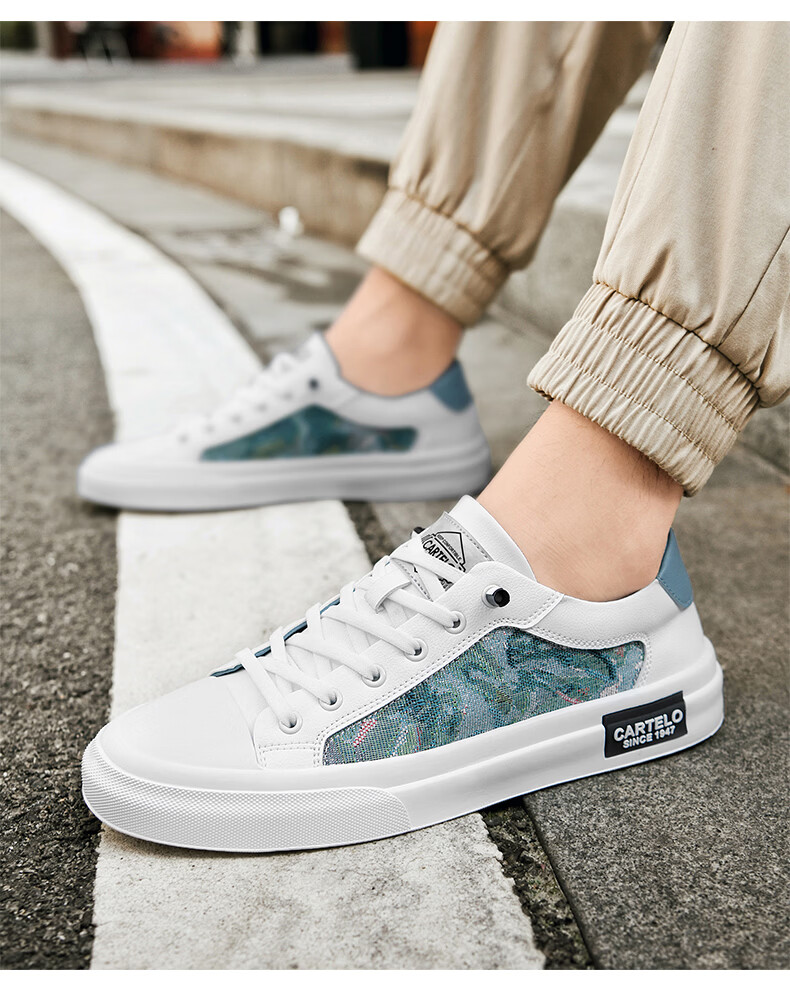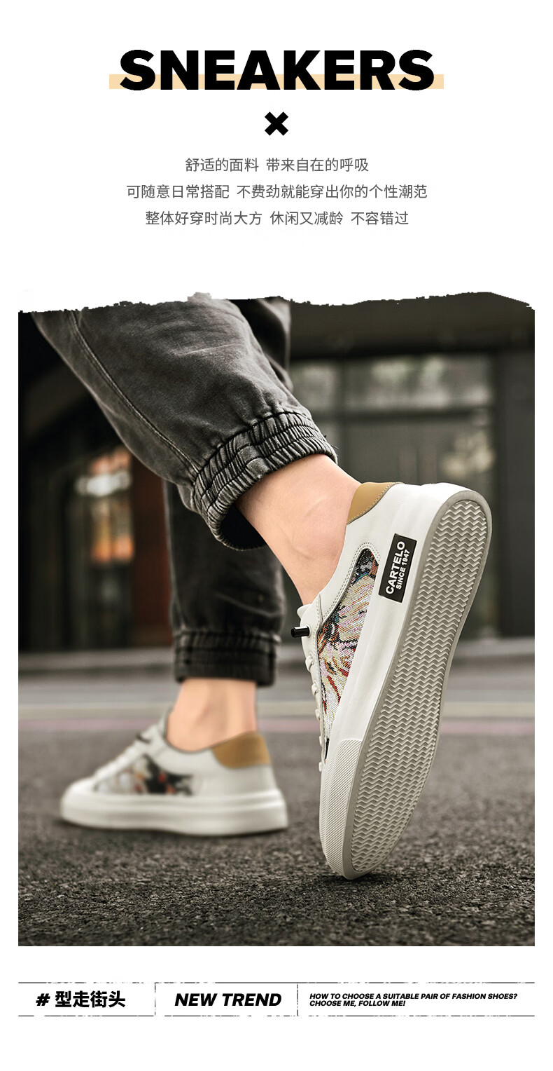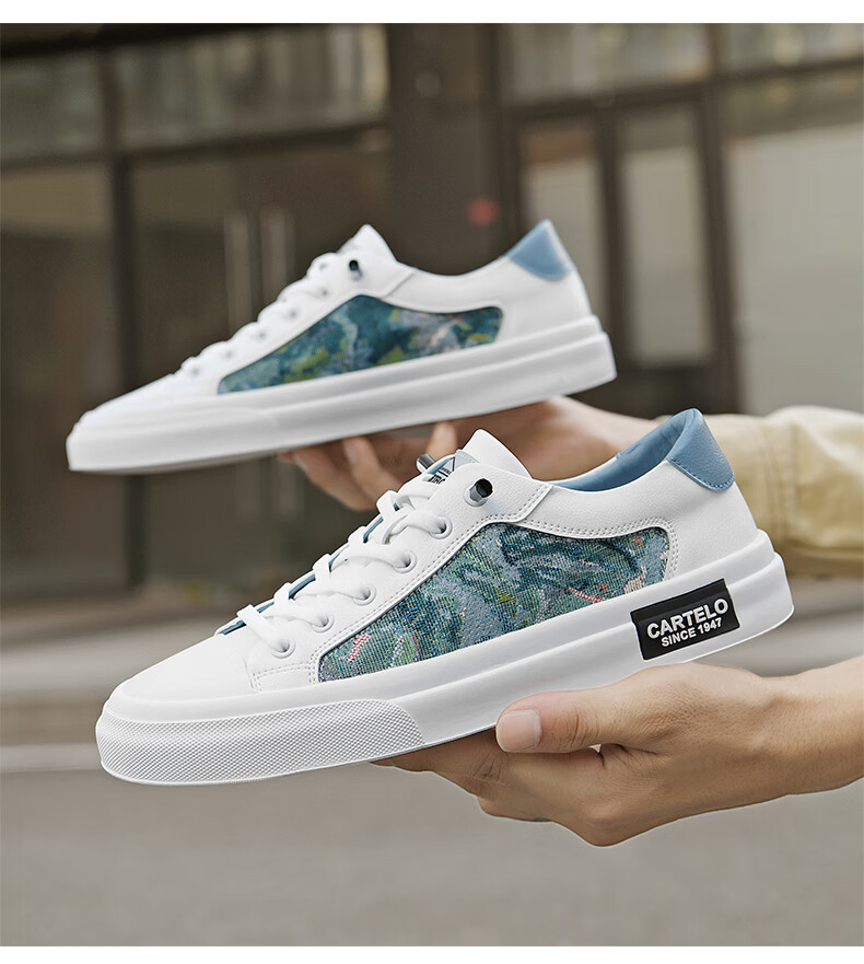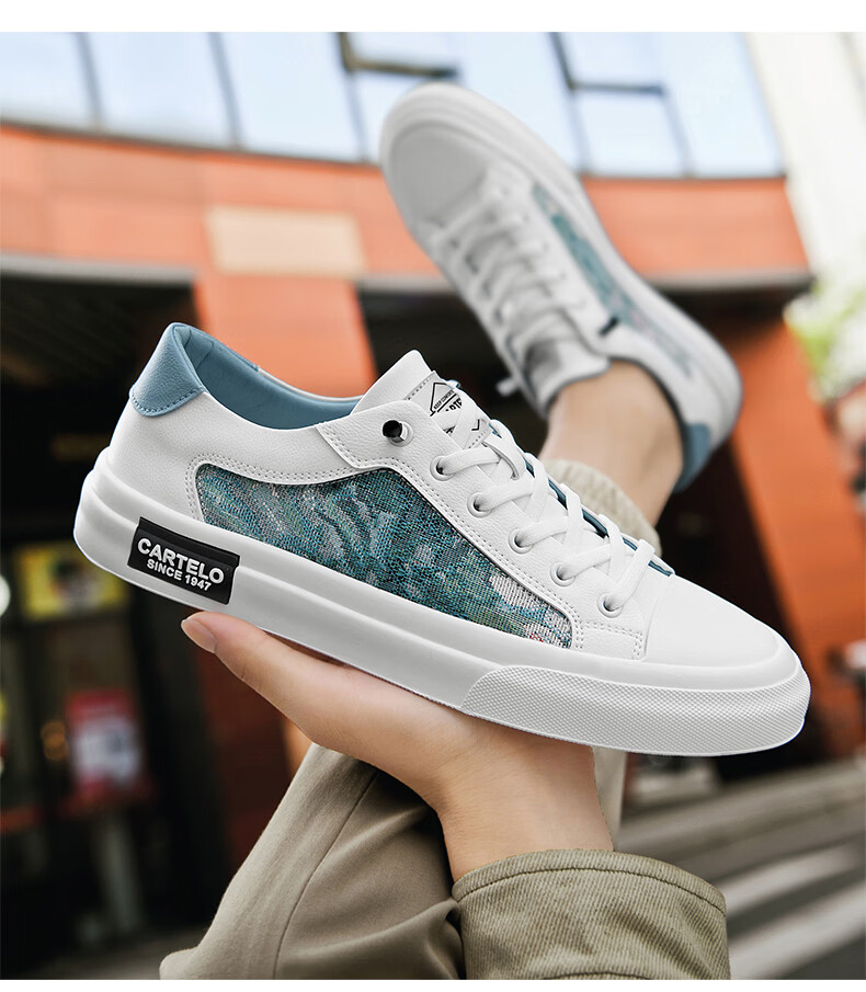 卡帝乐鳄鱼(CARTELO)时尚男鞋夏季潮流透气休闲板鞋男韩版上班学生户外一脚蹬运动鞋男 冰蓝色 44 (270mm) 标准运动鞋尺码