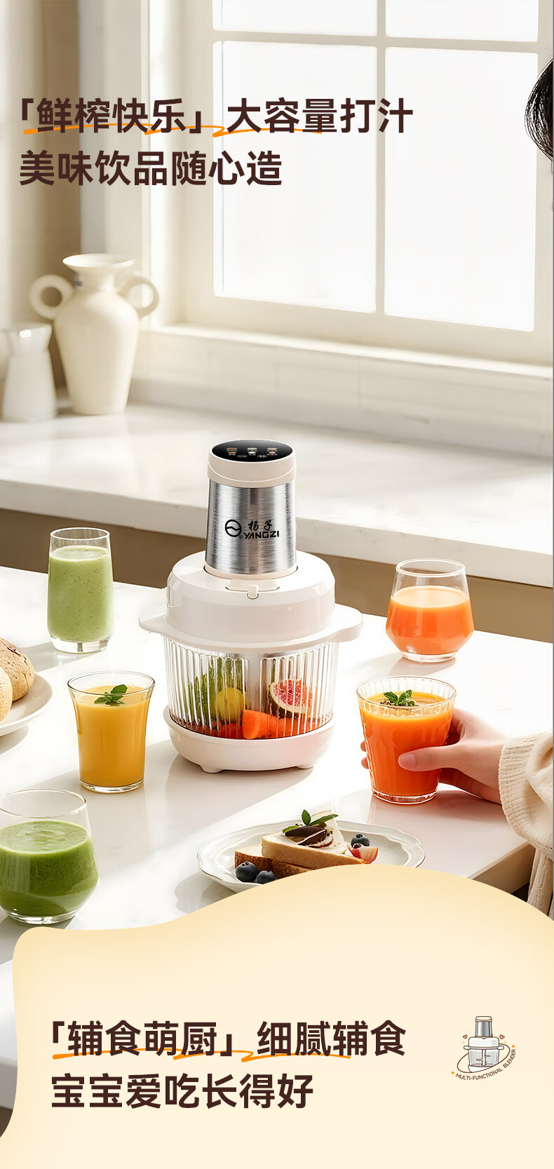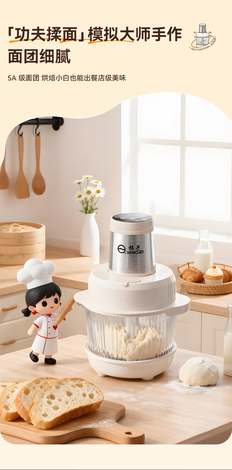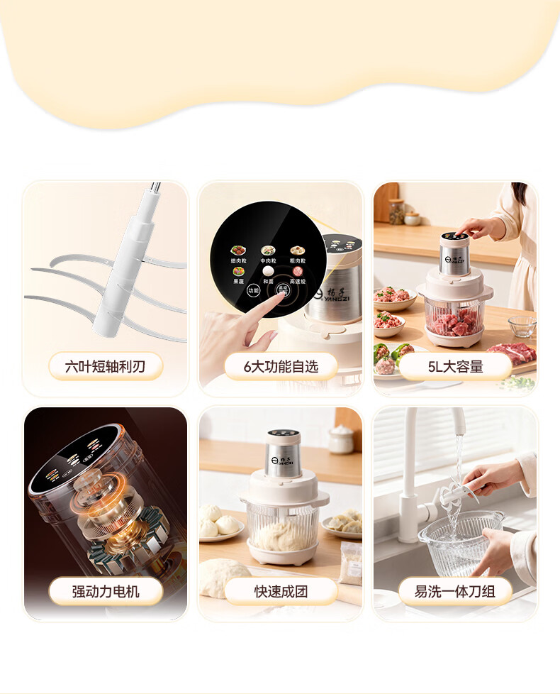 扬子(YANGZI)绞肉机料理机多功能家用绞肉和面机家用全自动和面揉面一体机家商用全自动电动纯铜电机揉面搅面机 直播同款 【和面机+绞肉机】 6叶精钢刀 5L