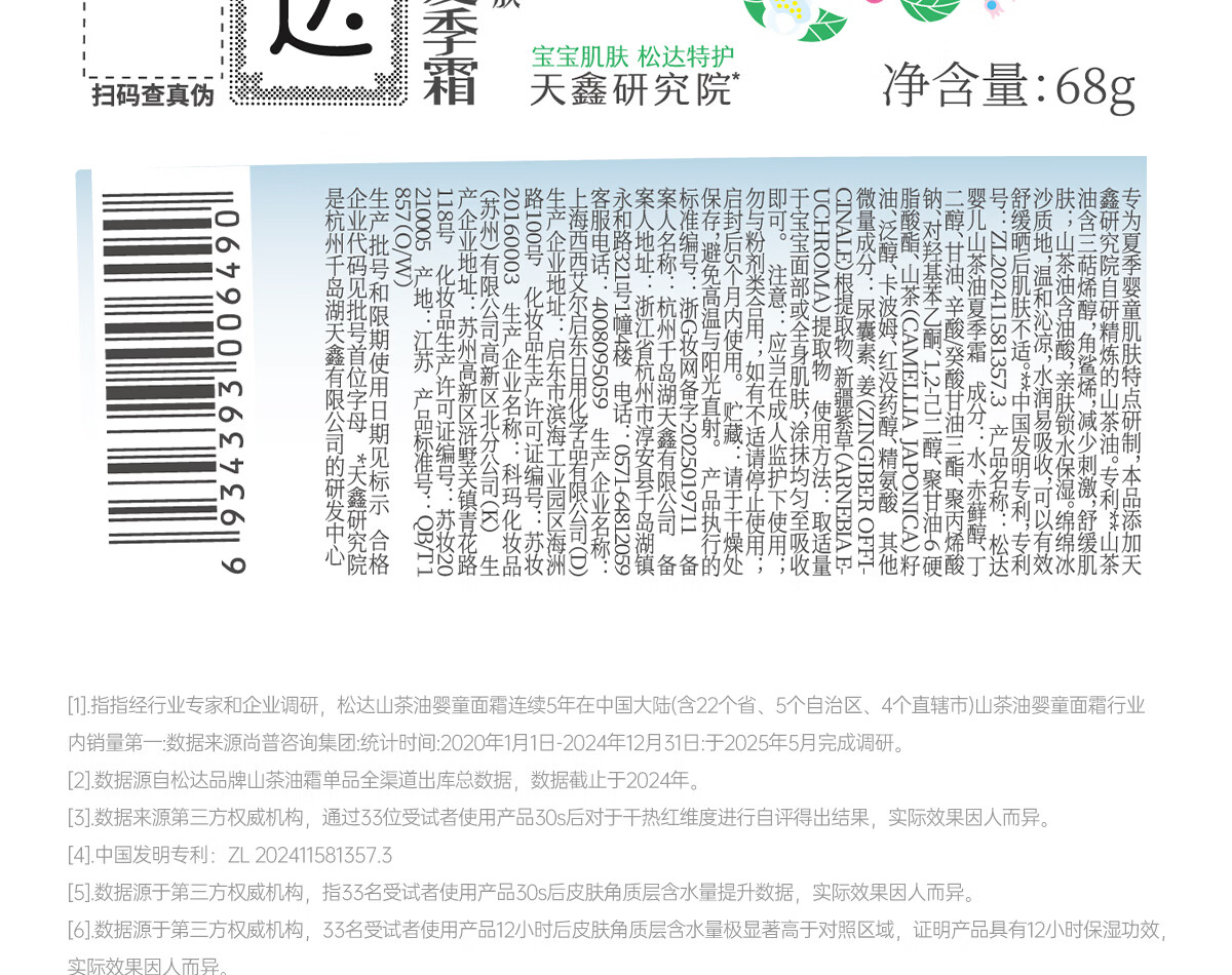 松达婴儿面霜干痒红山茶油宝宝夏季面霜儿童保湿霜补水滋润肌肤护肤品 【重磅新品】夏季霜18g