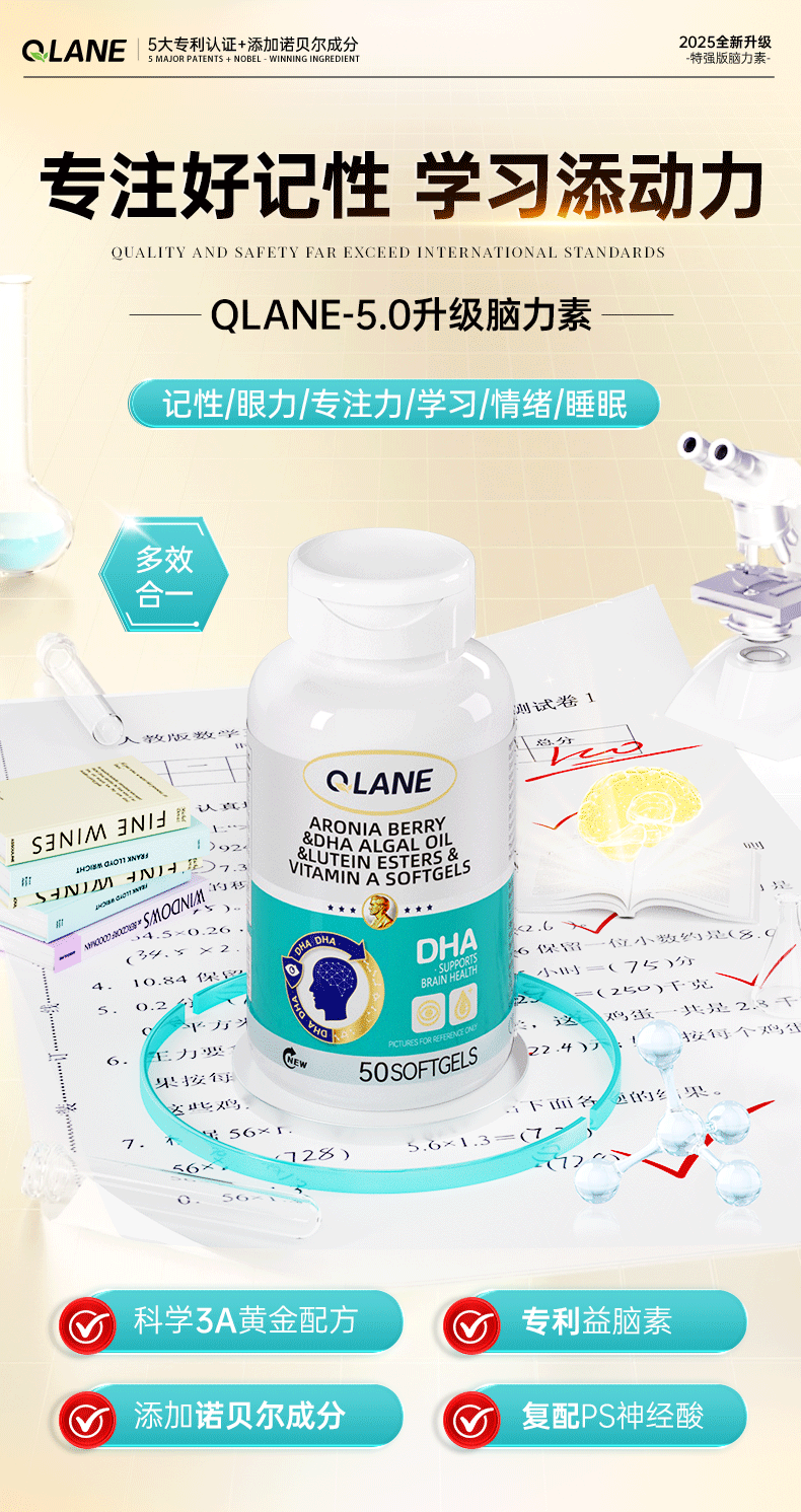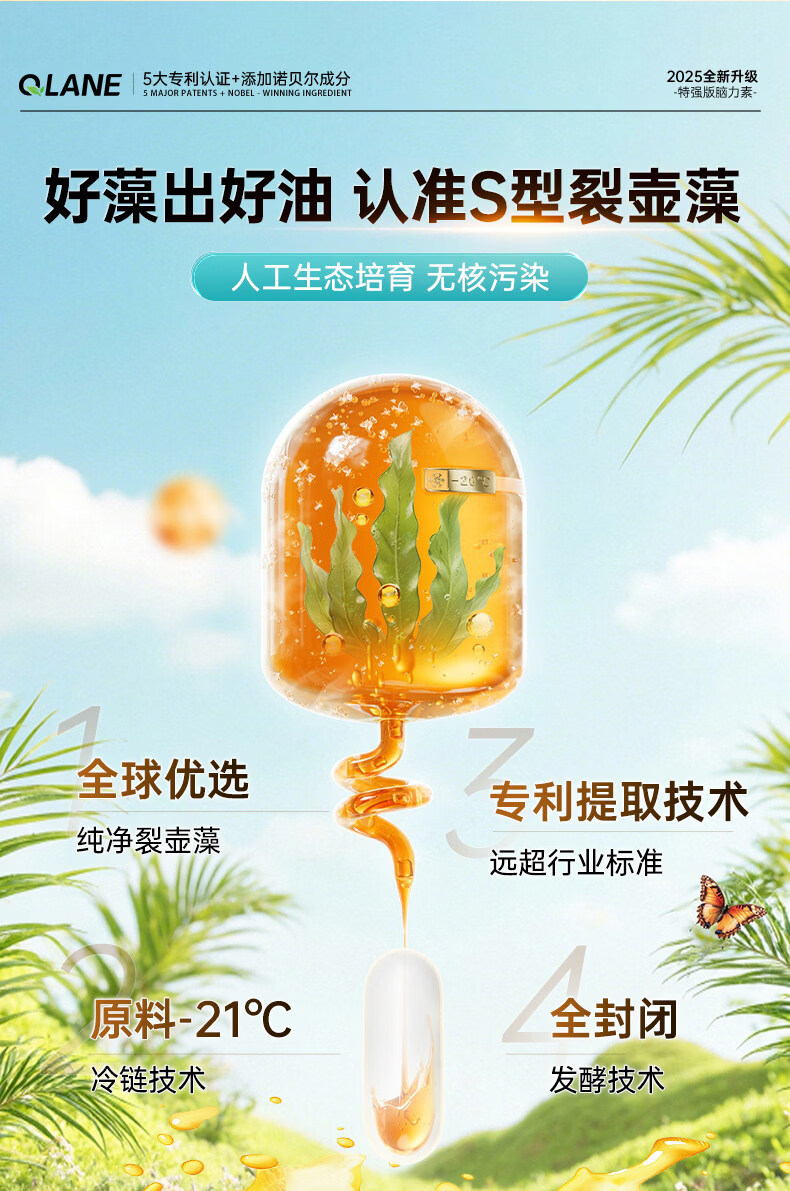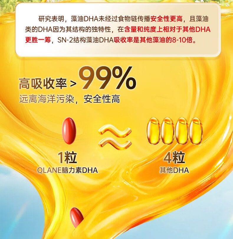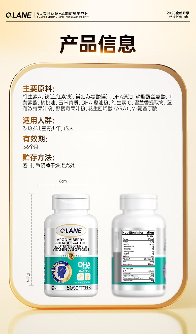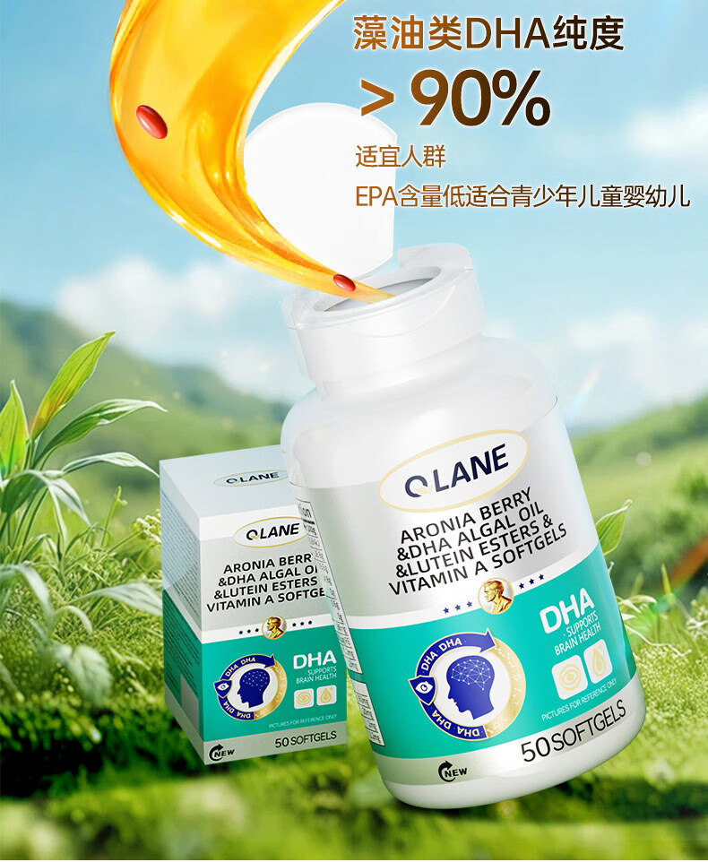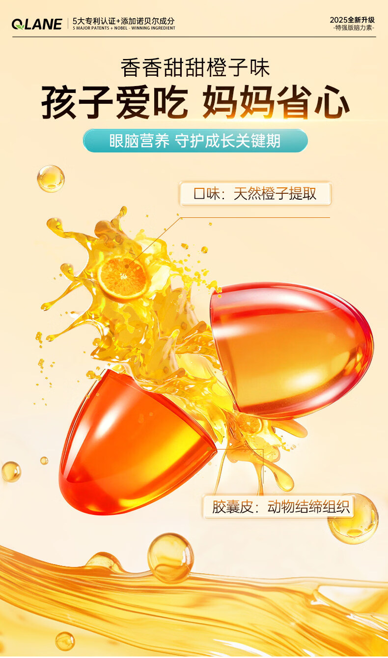 qlane官方旗舰脑力素DHA学生儿童神经酸增强青少年成人鱼油叶黄素藻油 【1瓶】新客体验装