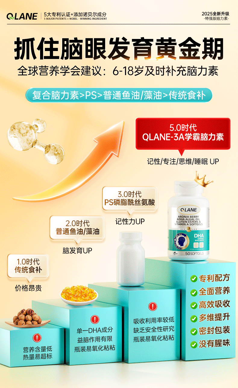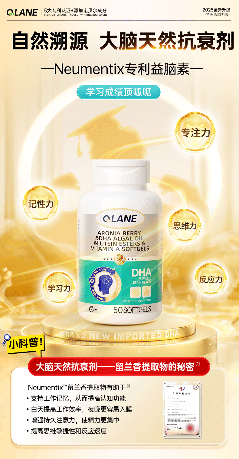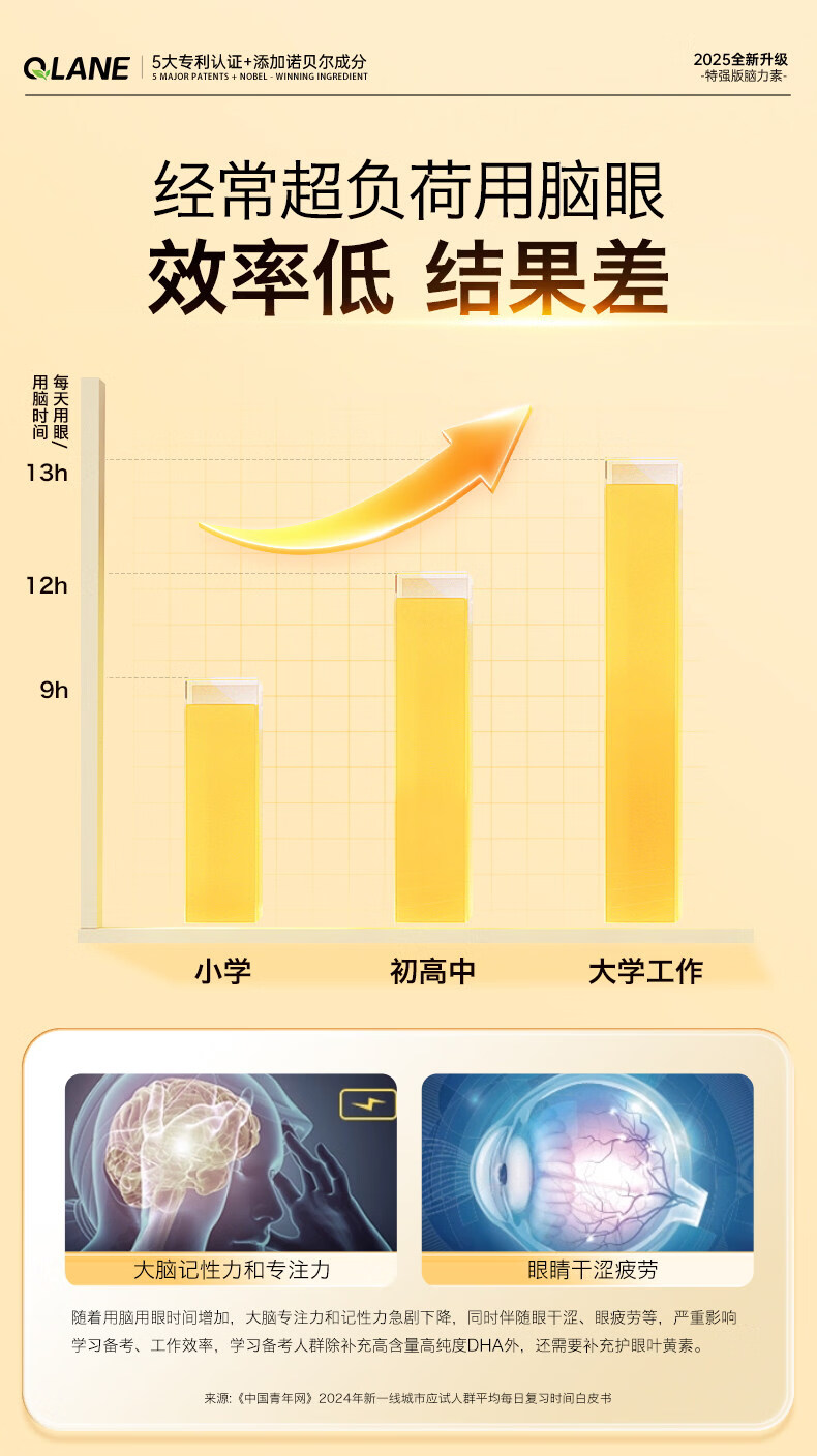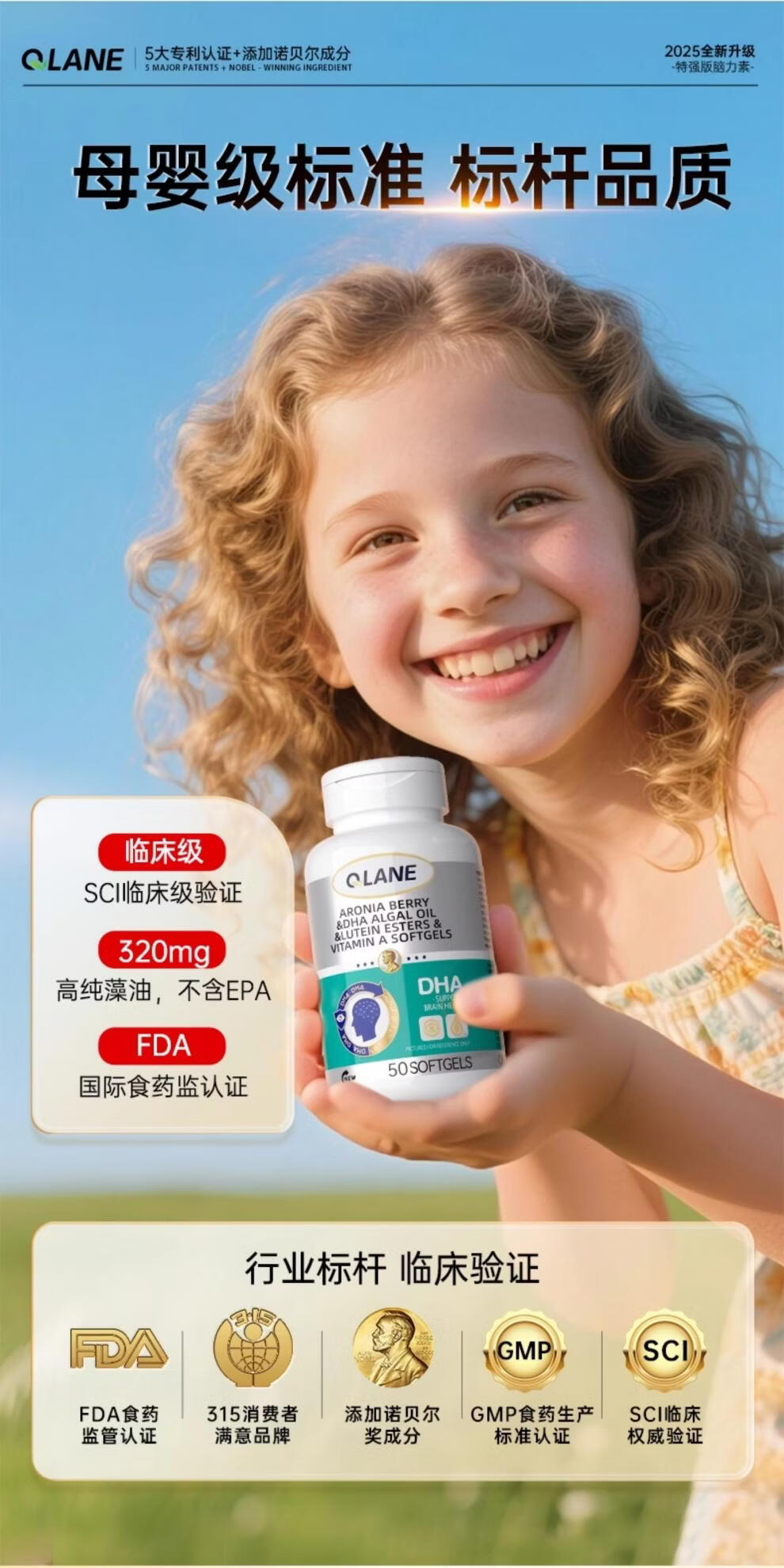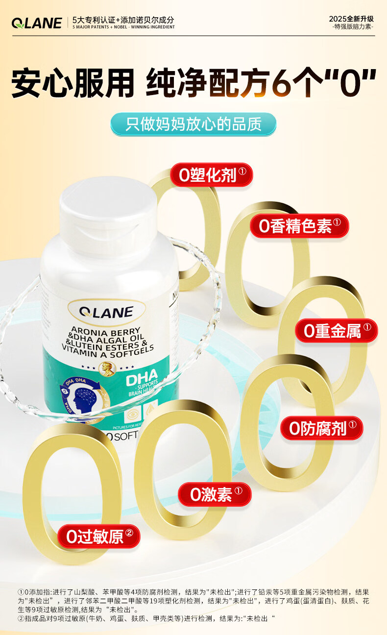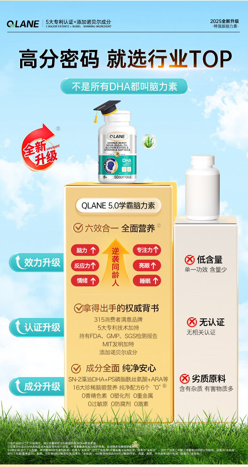 qlane官方旗舰脑力素DHA学生儿童神经酸增强青少年成人鱼油叶黄素藻油 【1瓶】新客体验装