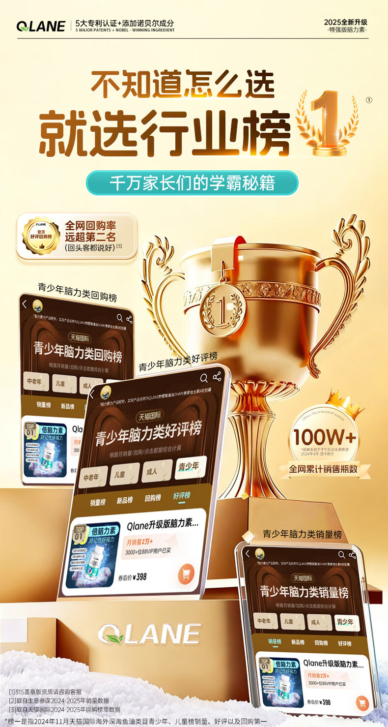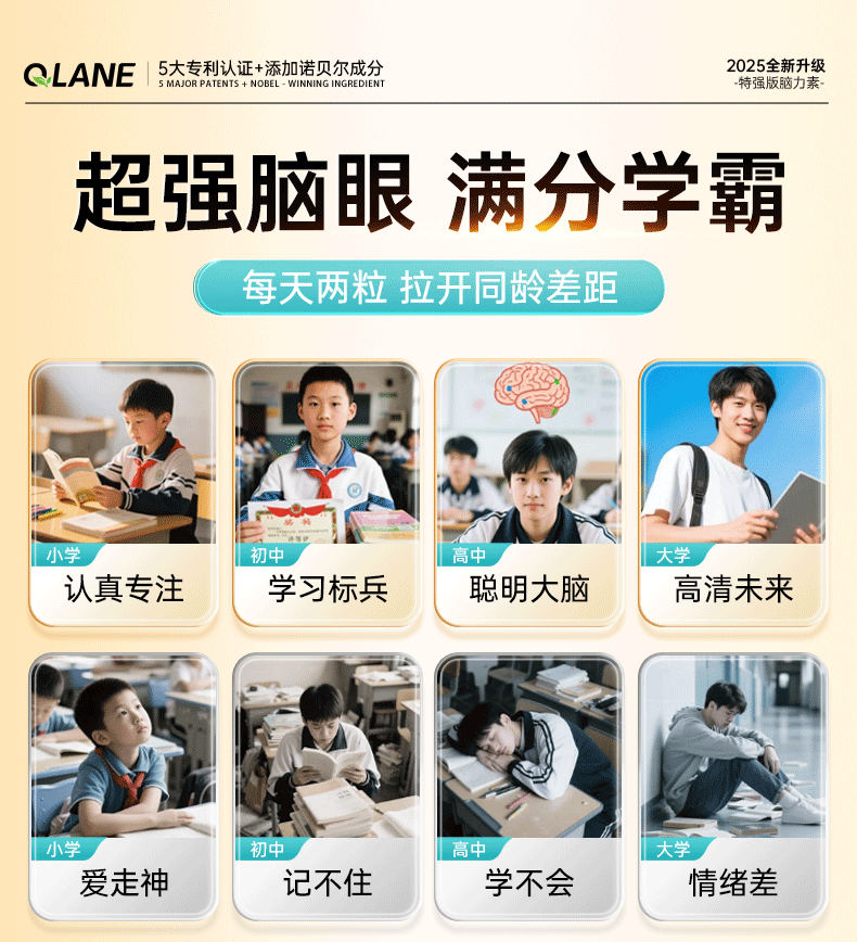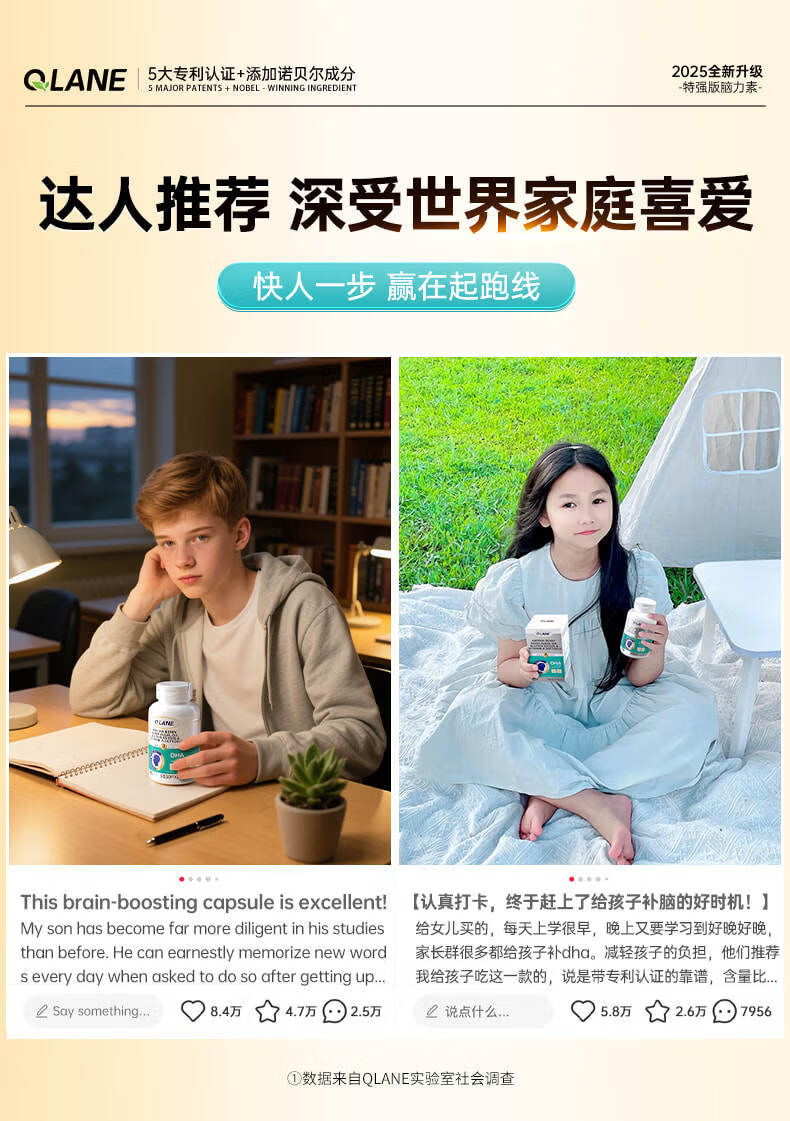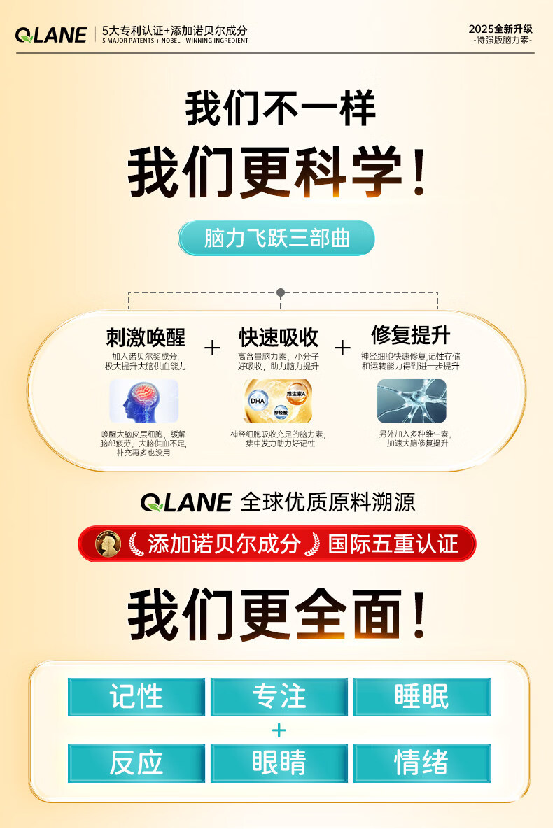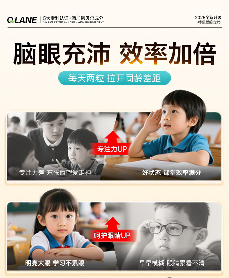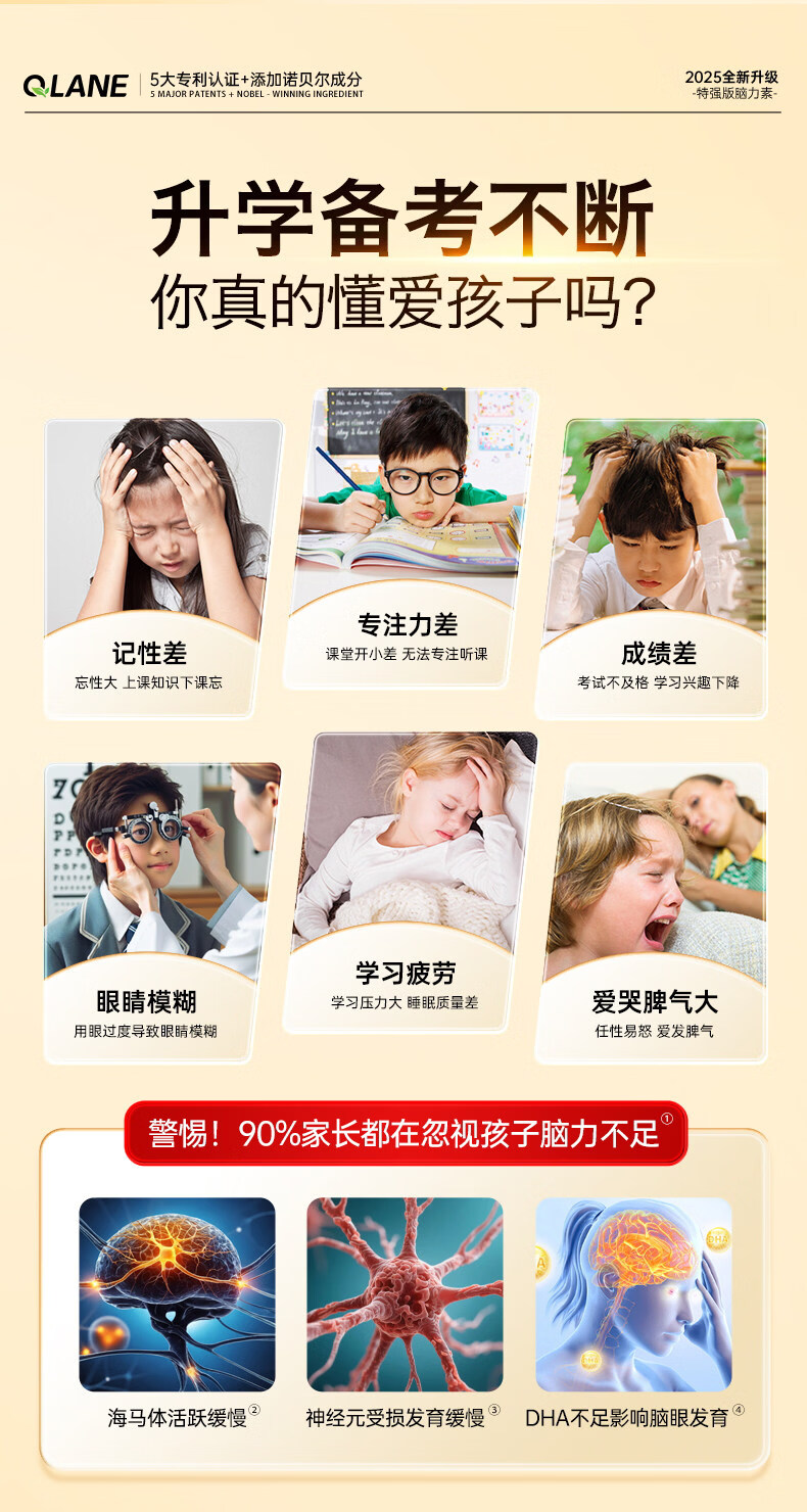qlane官方旗舰脑力素DHA学生儿童神经酸增强青少年成人鱼油叶黄素藻油 【1瓶】新客体验装