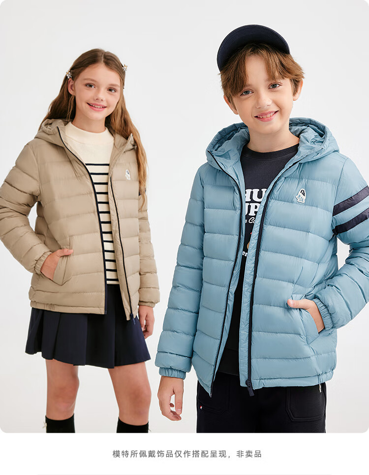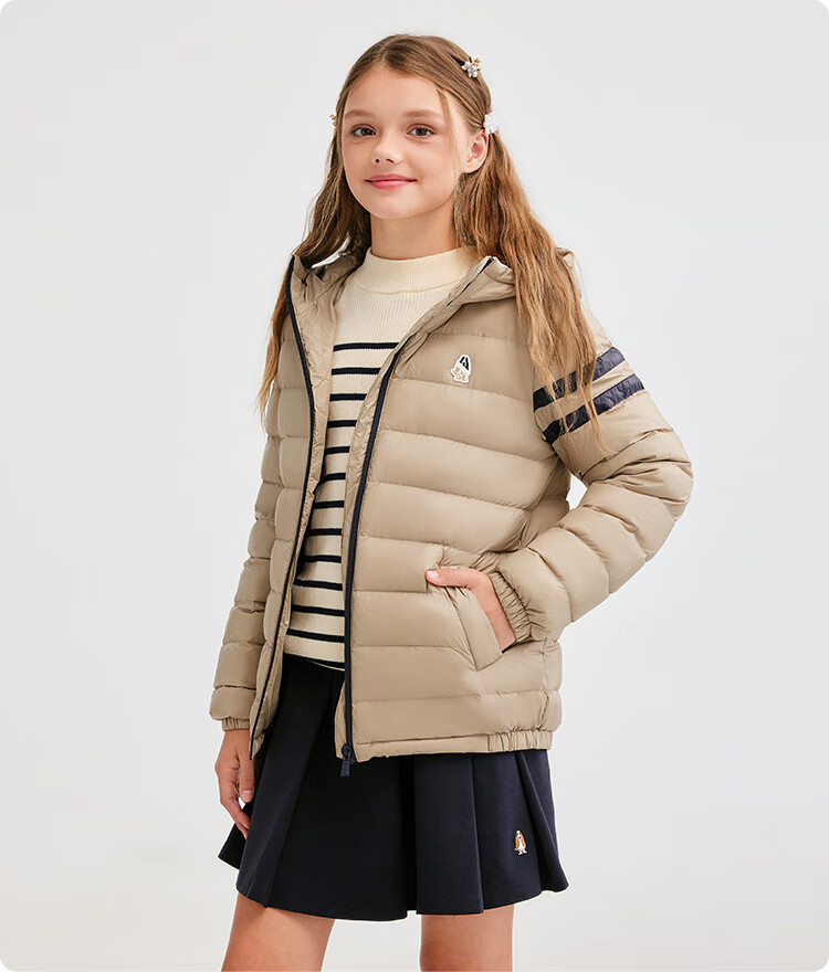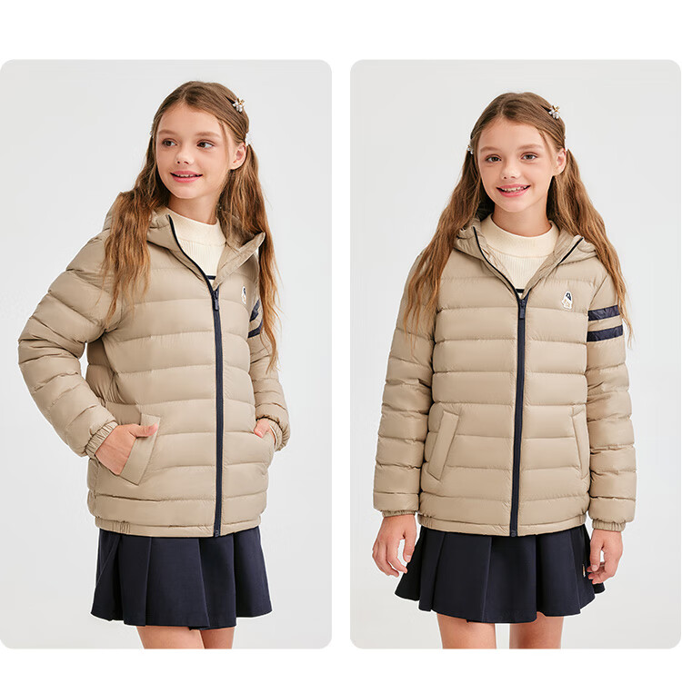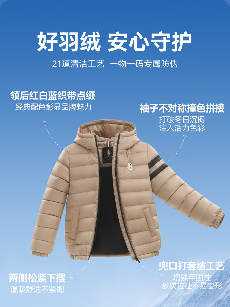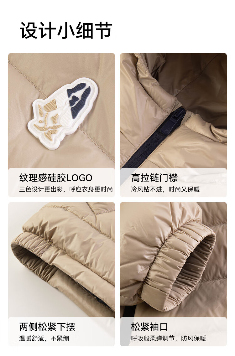 暇步士(Hush Puppies)童装儿童男女大童2025冬季新款儿童舒适百搭运动连帽羽绒服 燕麦卡其 140 cm
