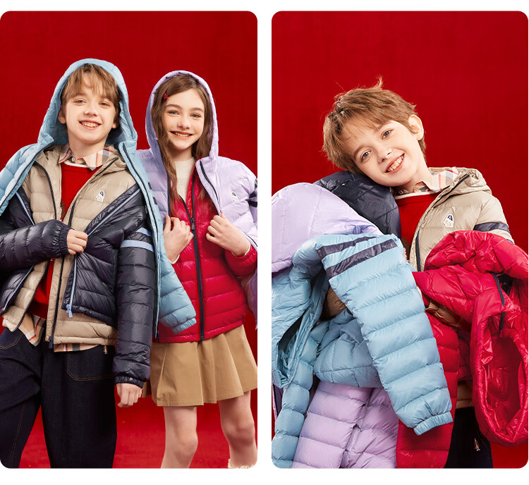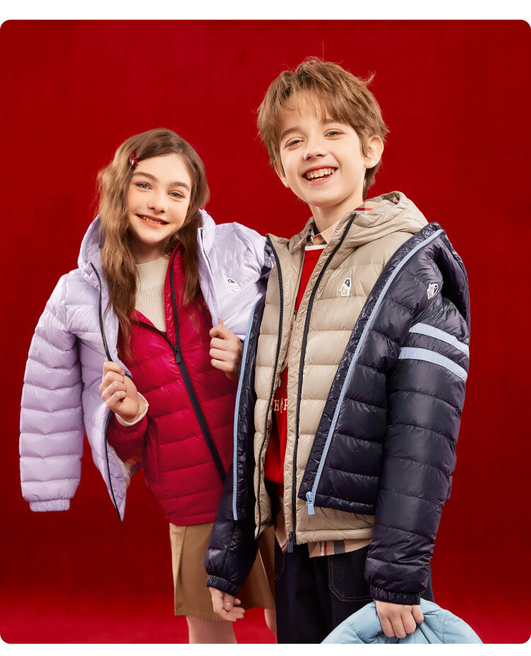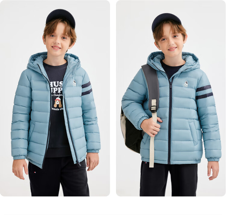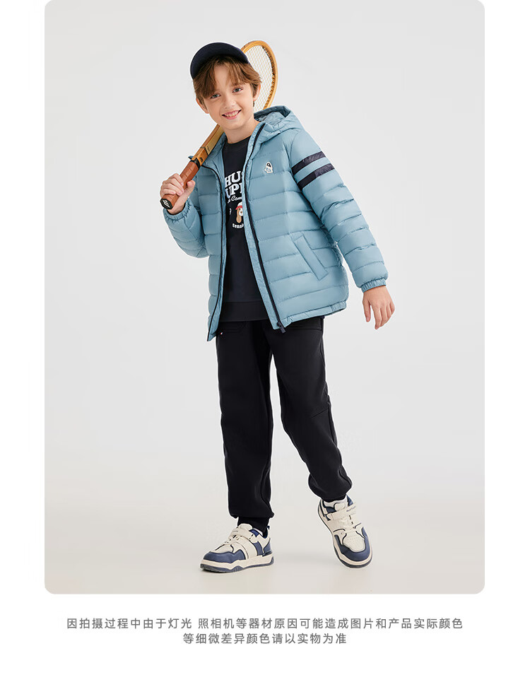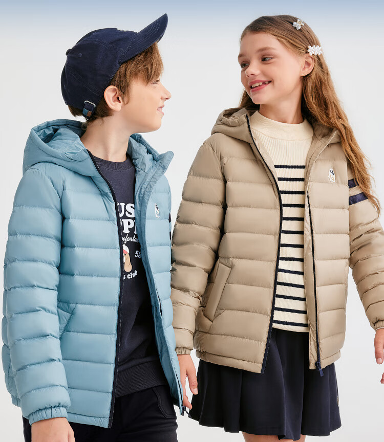暇步士(Hush Puppies)童装儿童男女大童2025冬季新款儿童舒适百搭运动连帽羽绒服 燕麦卡其 140 cm