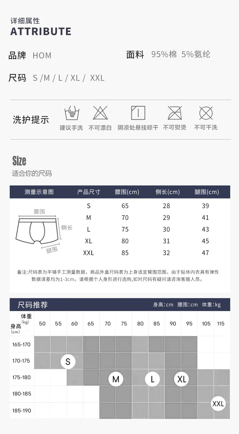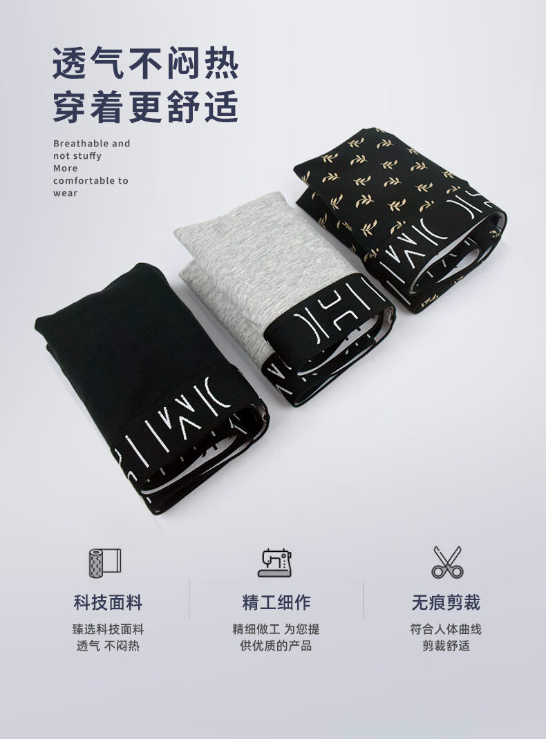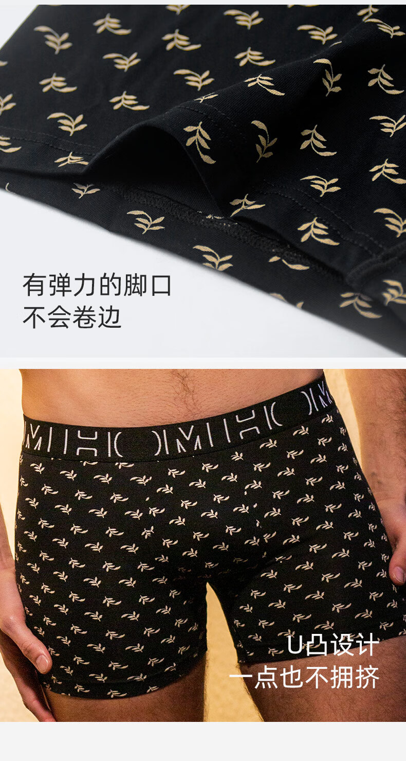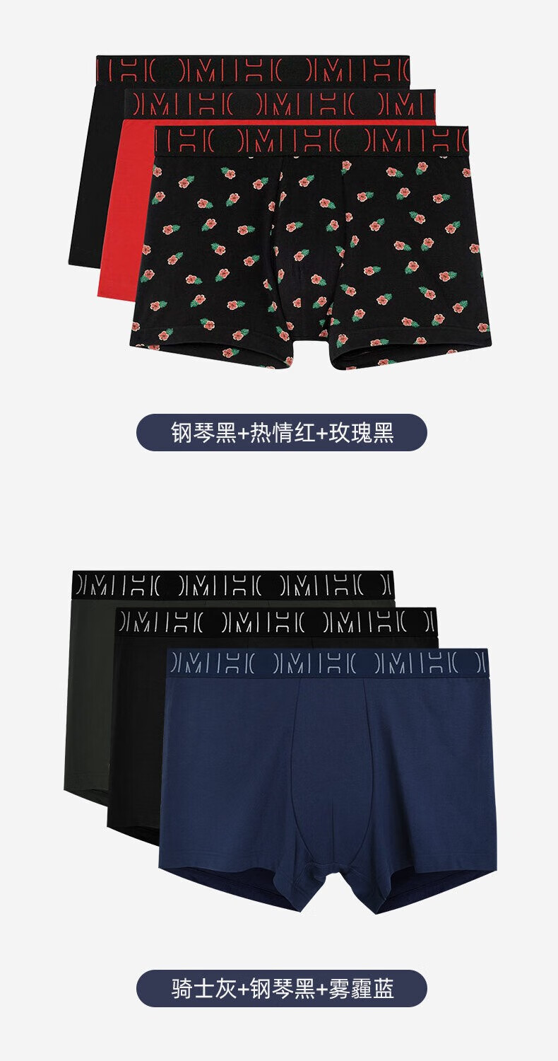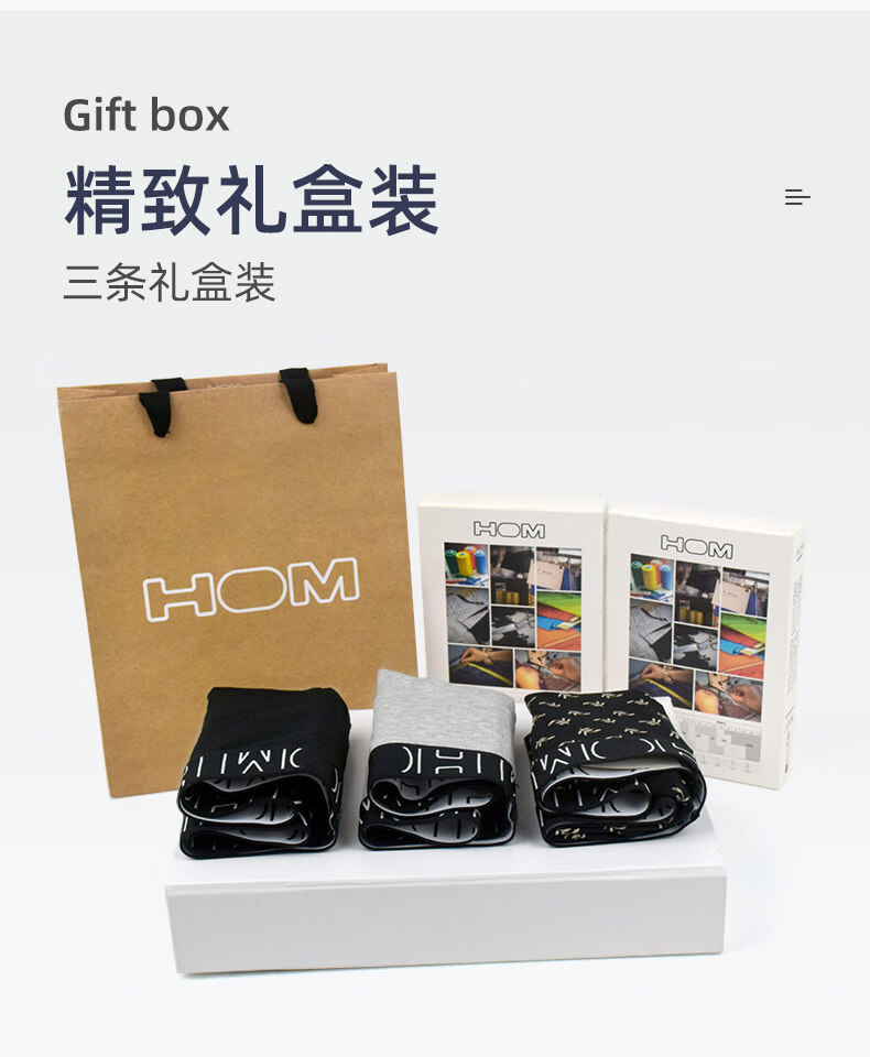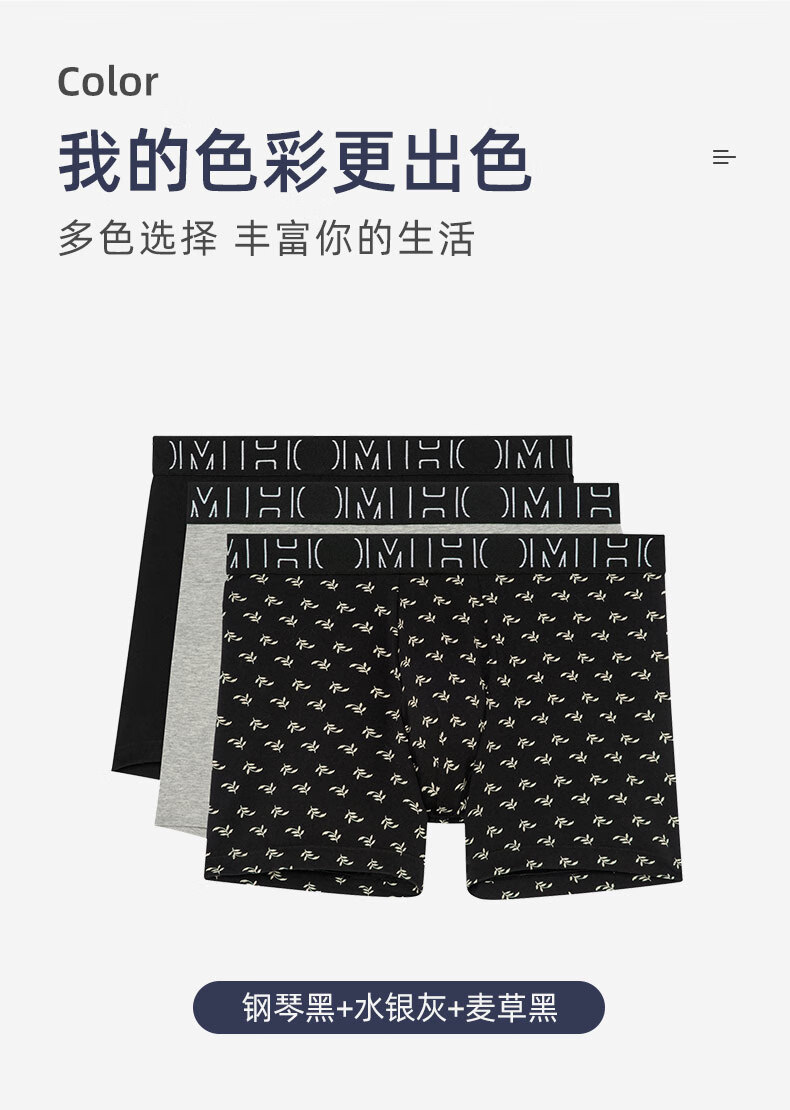 HOM【三条装】法国男士平角内裤男生四角裤柔软纯棉平角裤 钢琴黑+水银灰+麦草黑 XL