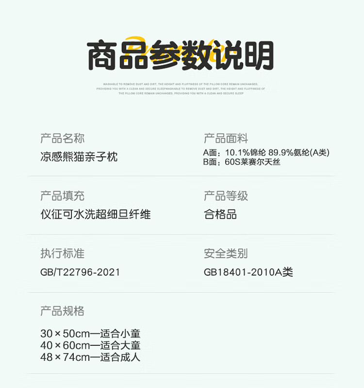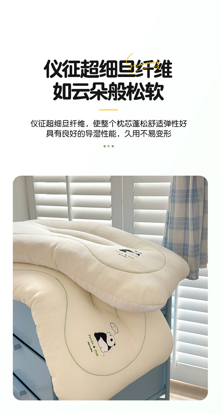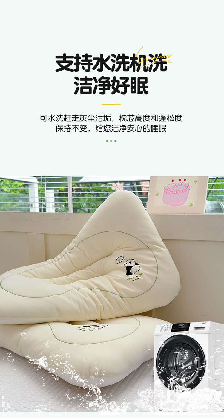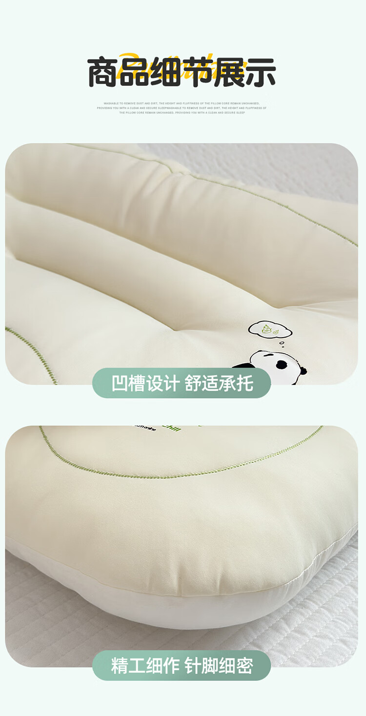 樵纪枕头40支全棉水洗棉A类无添加儿童枕Panda国朝躺平枕纯棉回弹枕芯 Panda Chil 单只 30x50x5cm/小童枕