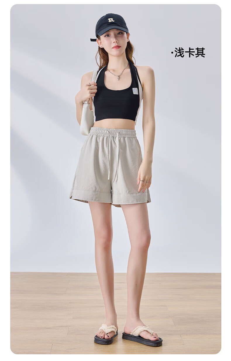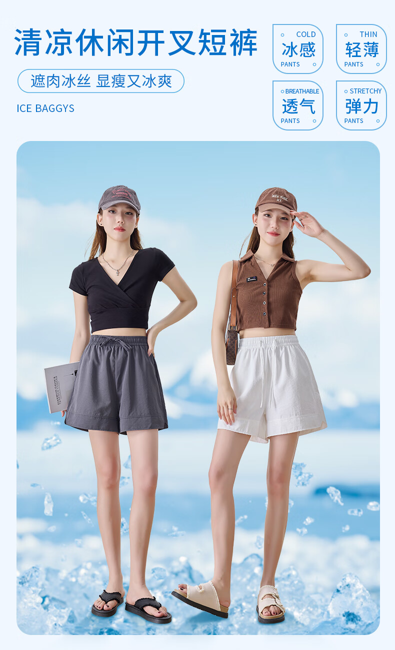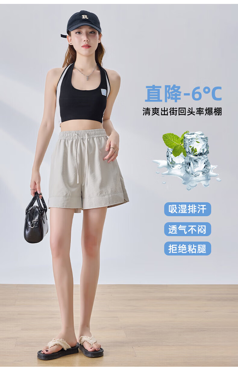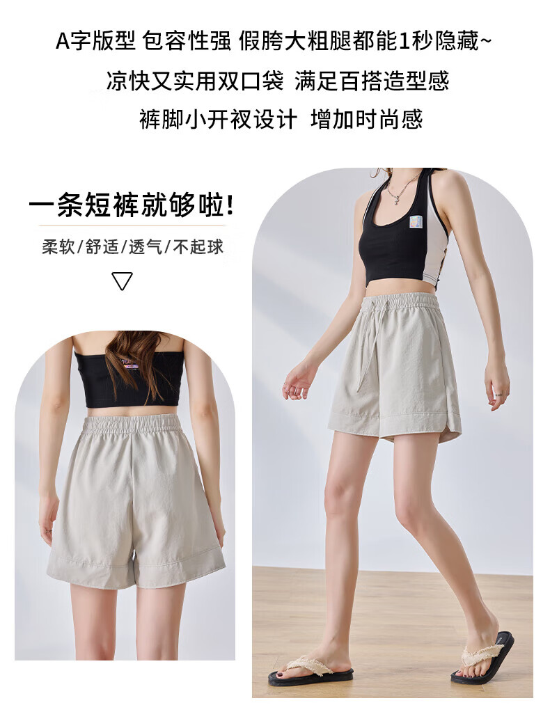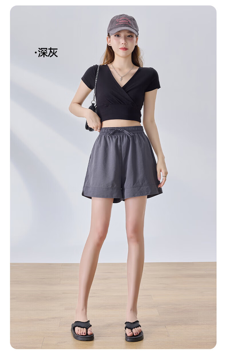 浪莎冰丝短裤女夏季2025新款外穿运动休闲高腰宽松凉感显瘦百搭三分裤 深灰色 XL 【推荐130-145斤】