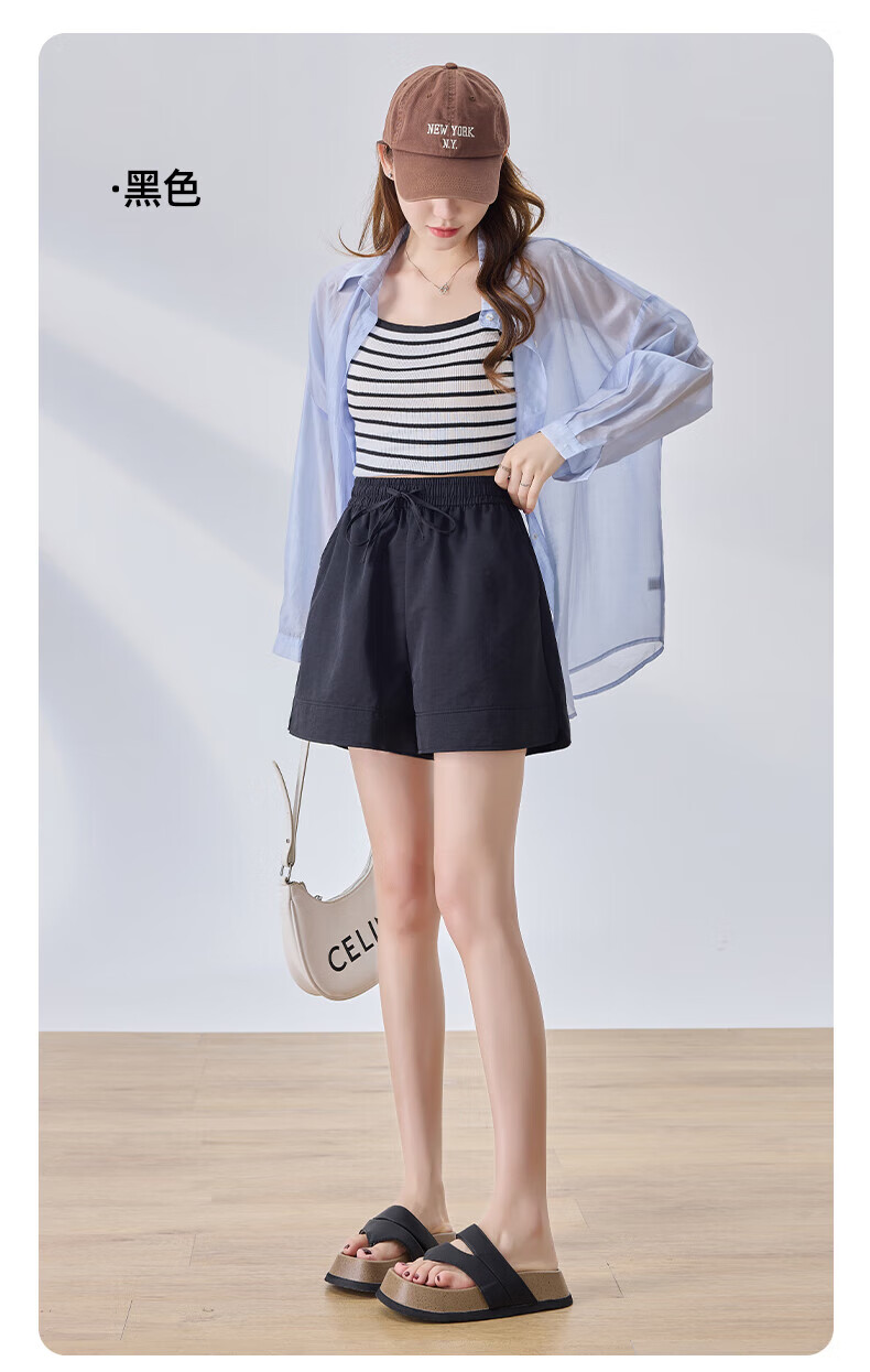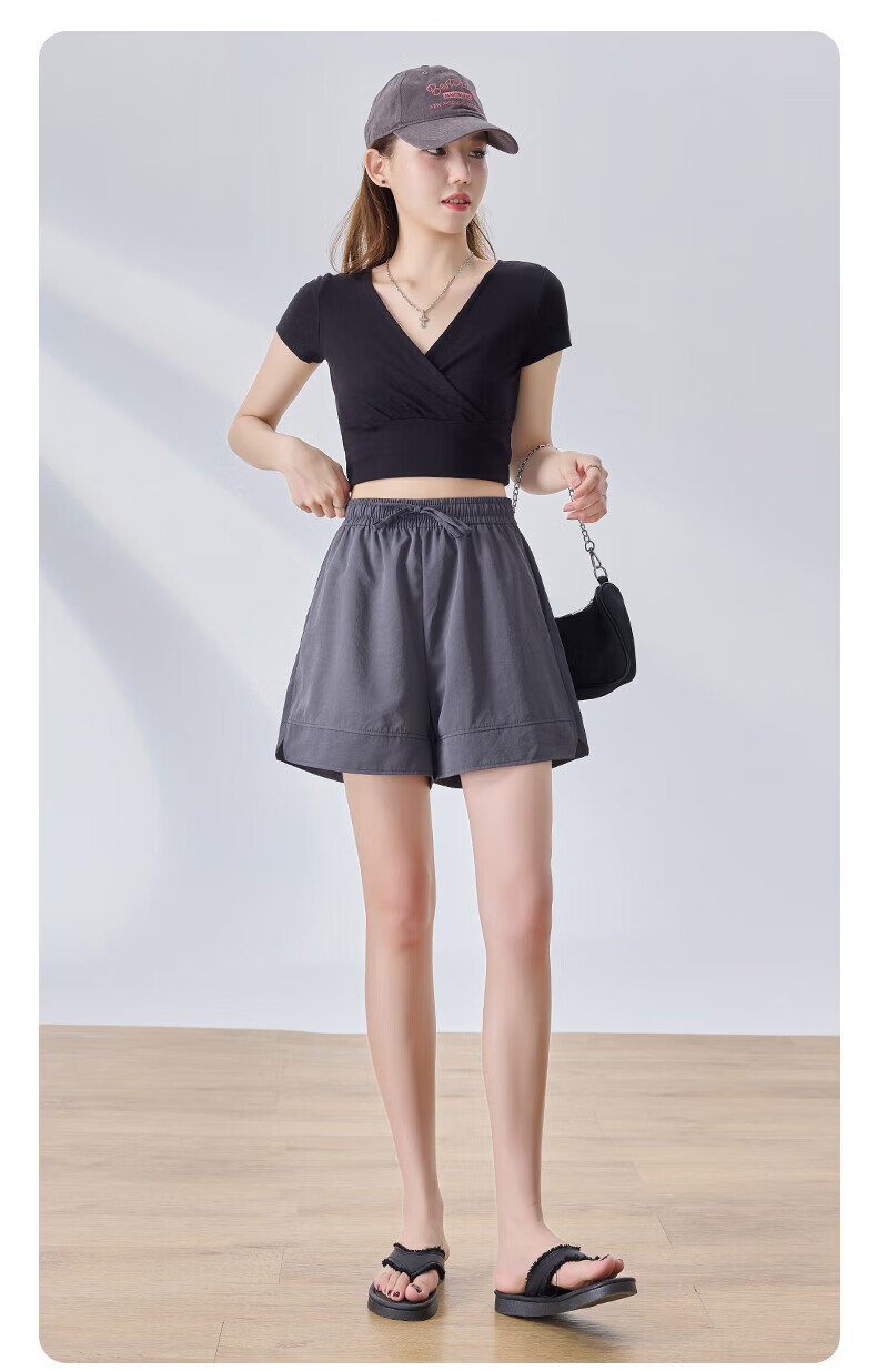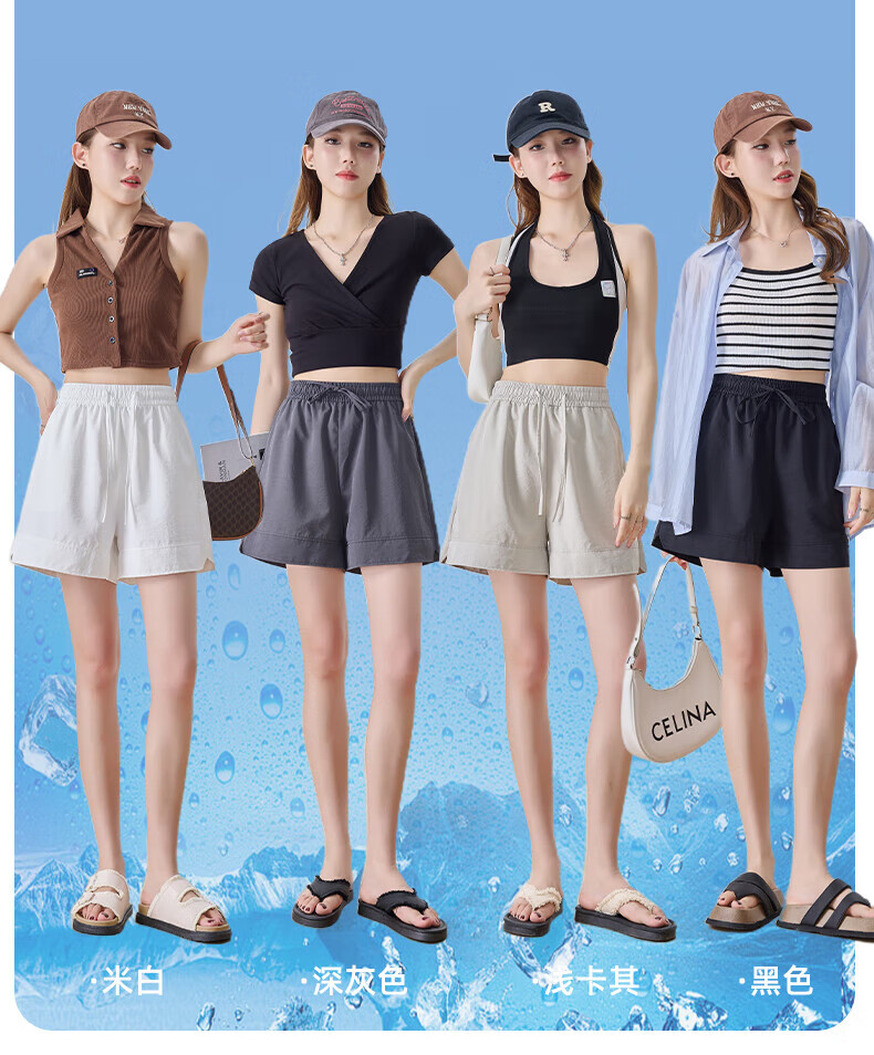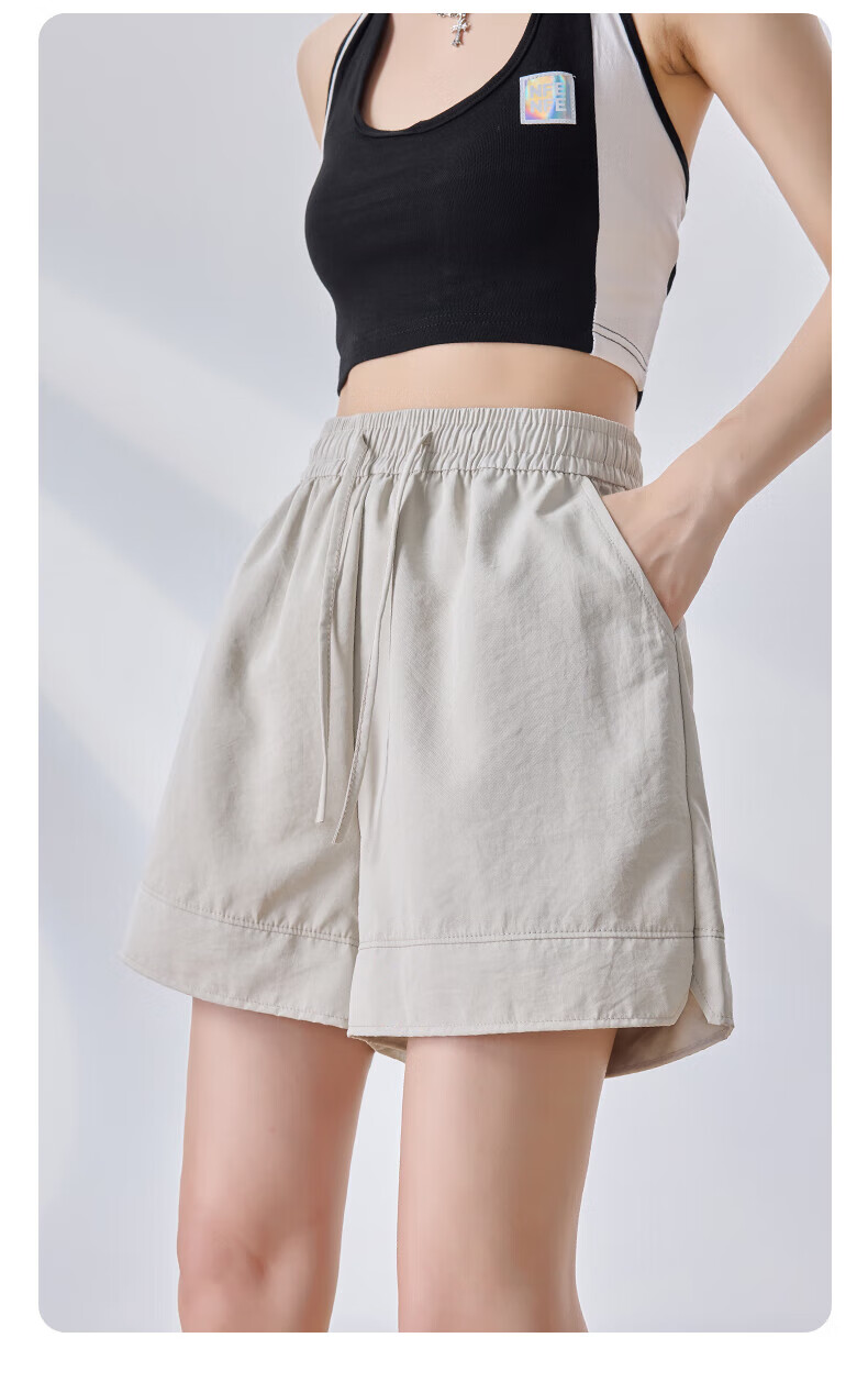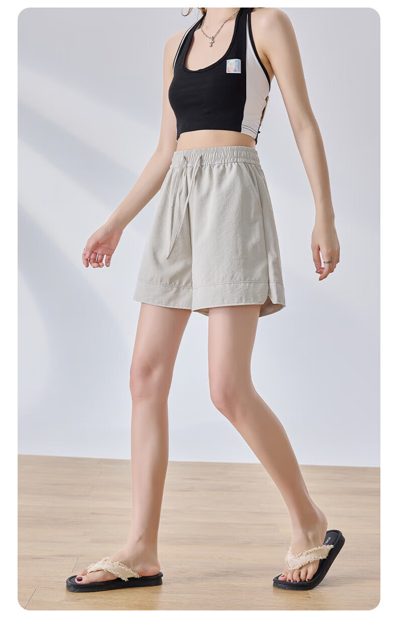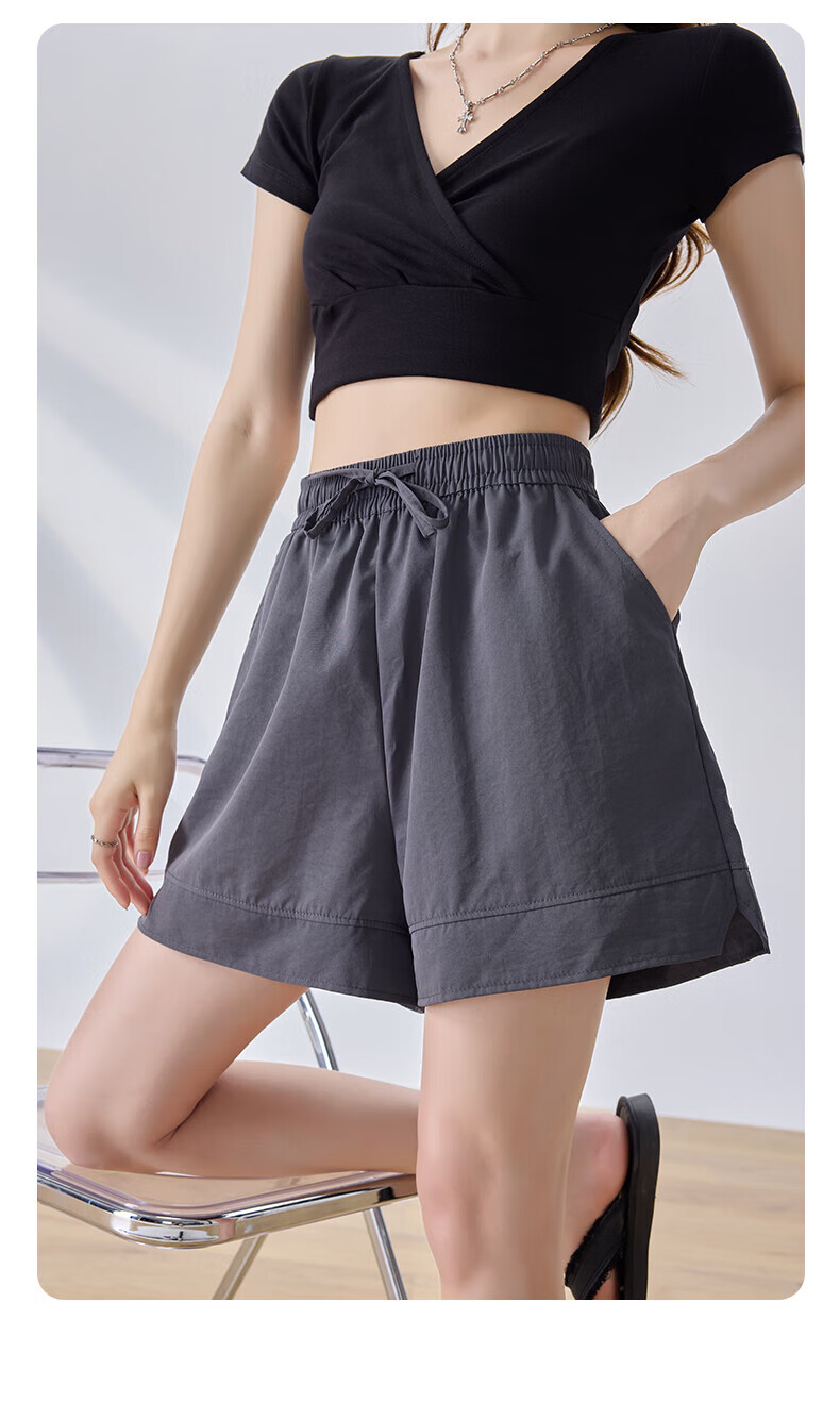 浪莎冰丝短裤女夏季2025新款外穿运动休闲高腰宽松凉感显瘦百搭三分裤 深灰色 XL 【推荐130-145斤】