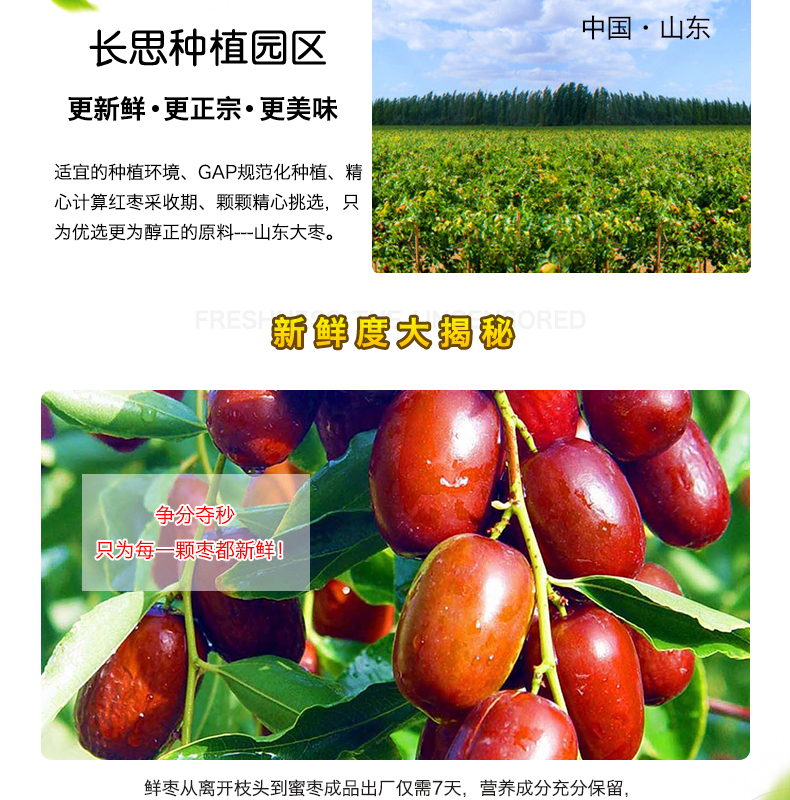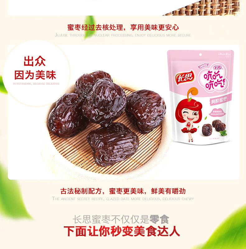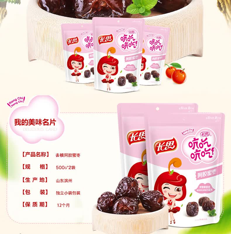 长思阿胶枣500g*2袋蜜枣去核大红枣山东特产小包装端午节粽子金丝蜜枣